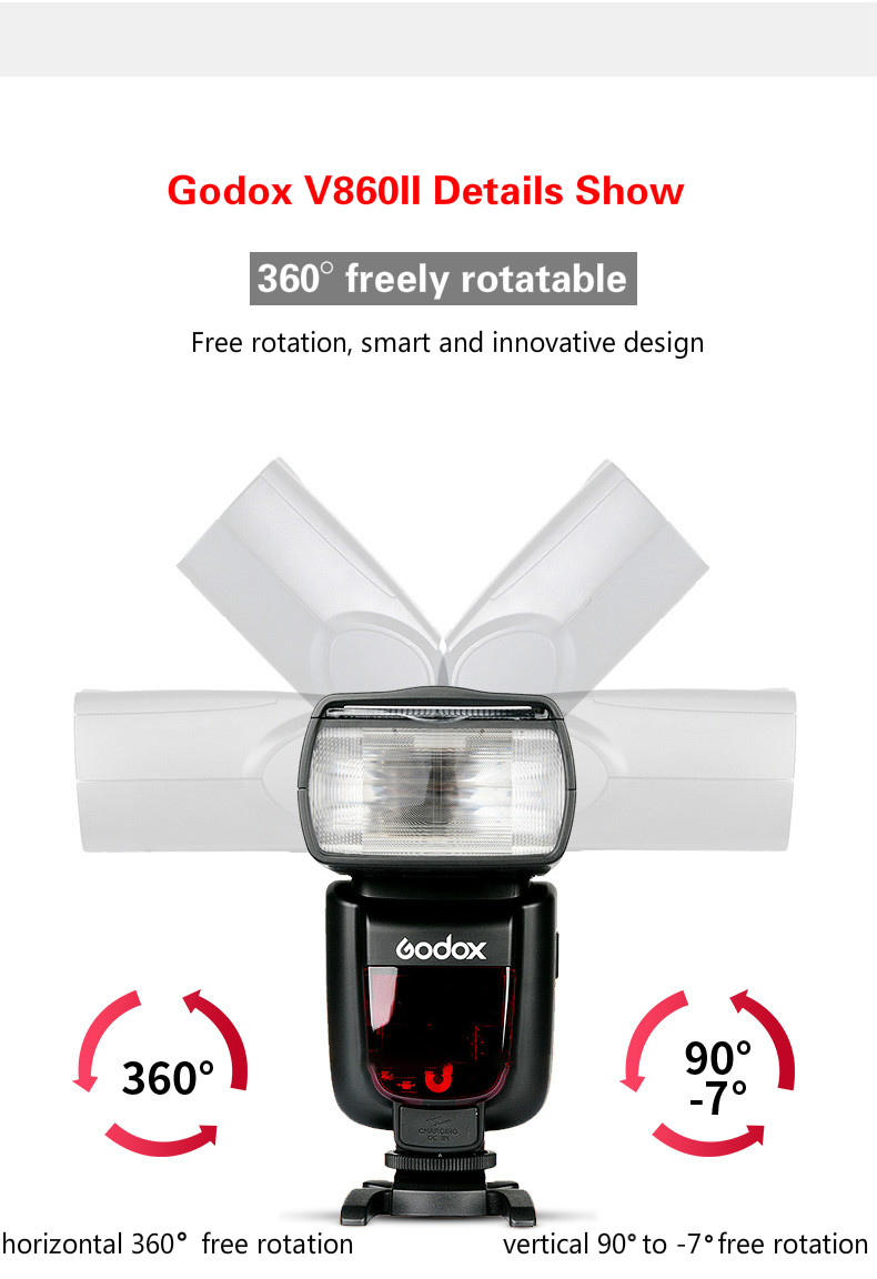 Поворотная/наклонная головка вспышки (Вспышка ускорения): 0 ~ 360 ° по горизонтали и-7 ° ~ 90 ° по вертикали