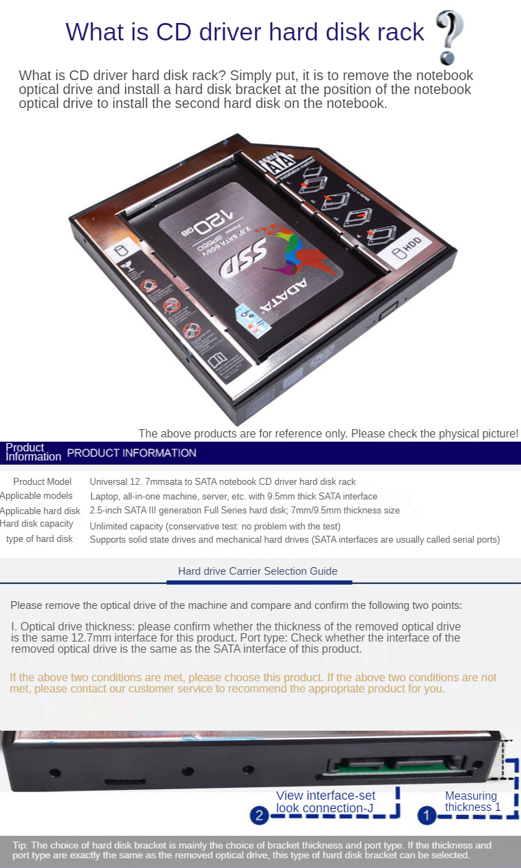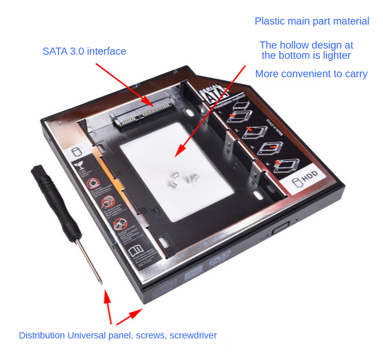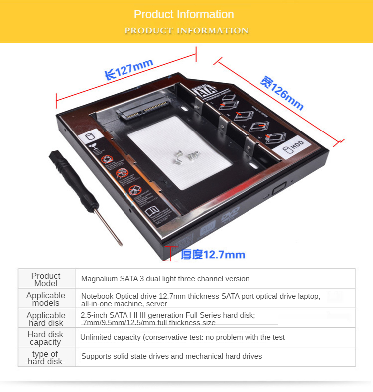 Новый 12,7 мм оптический привод ноутбука бит жесткий диск шпинделя 9.5 Алюминиевый сплав твердотельный накопитель (ssd) Механические SATA Сменные панели