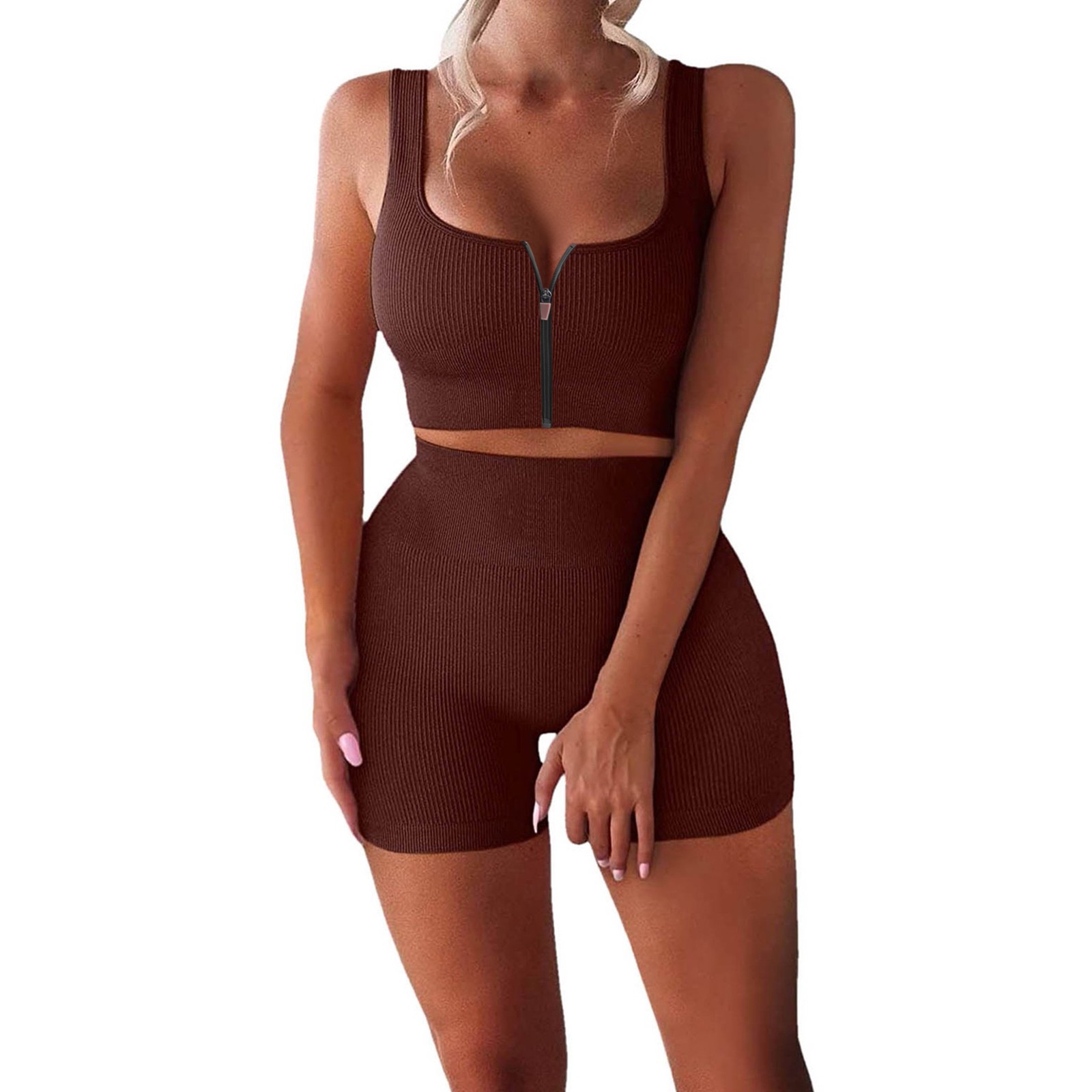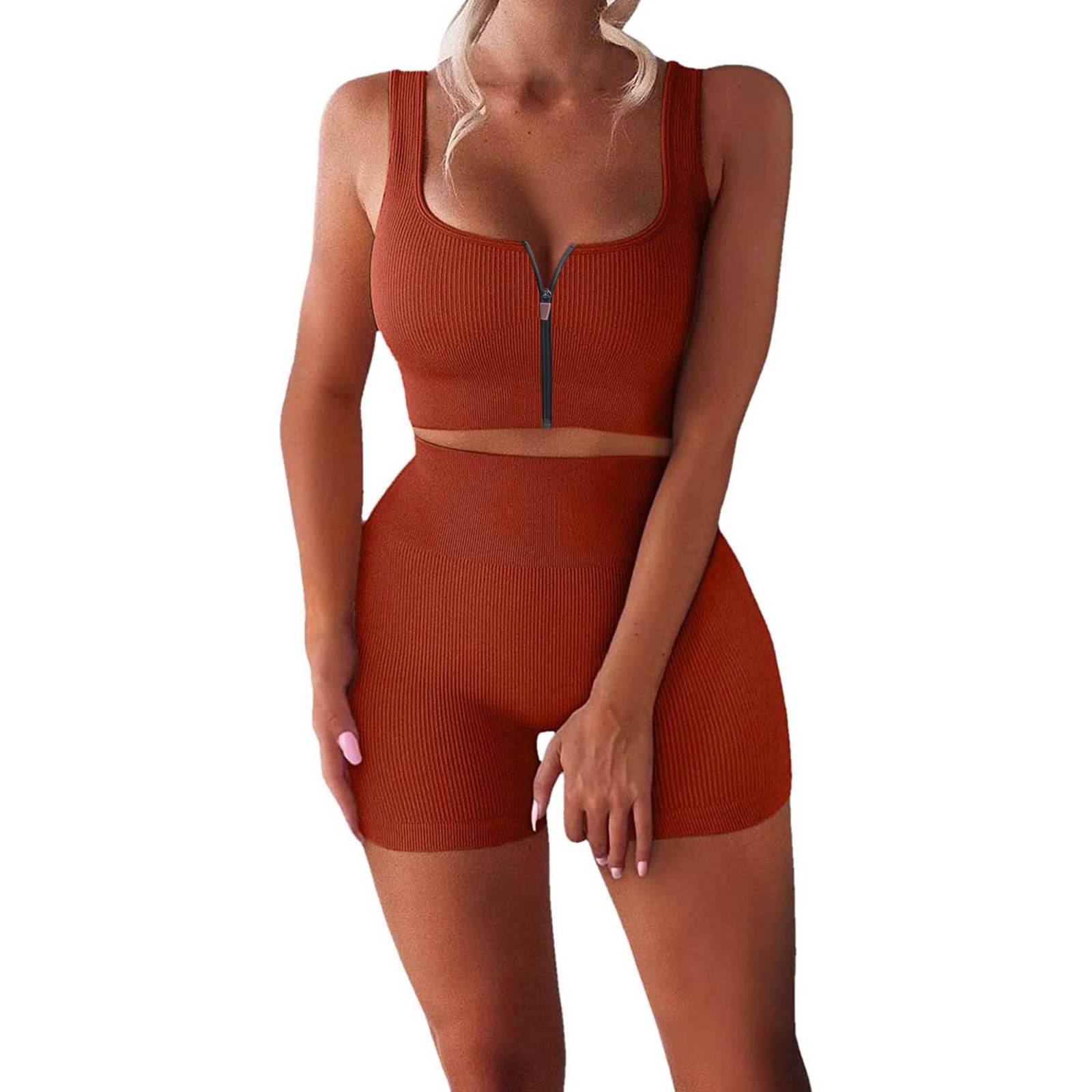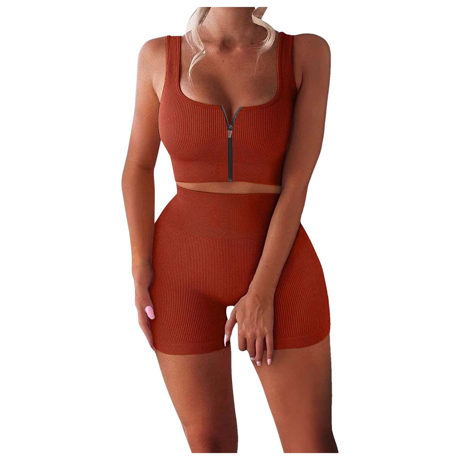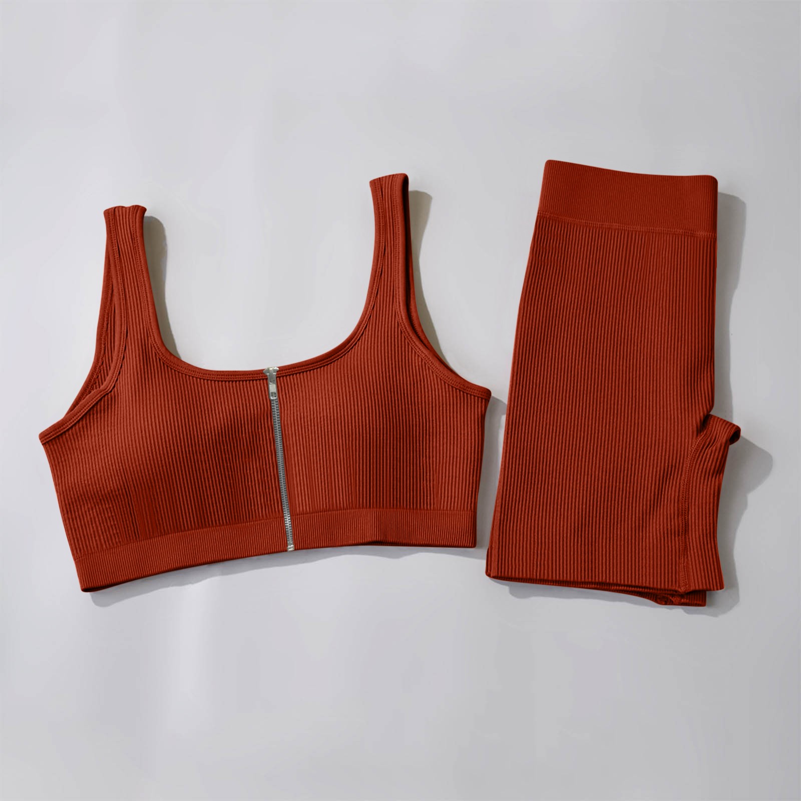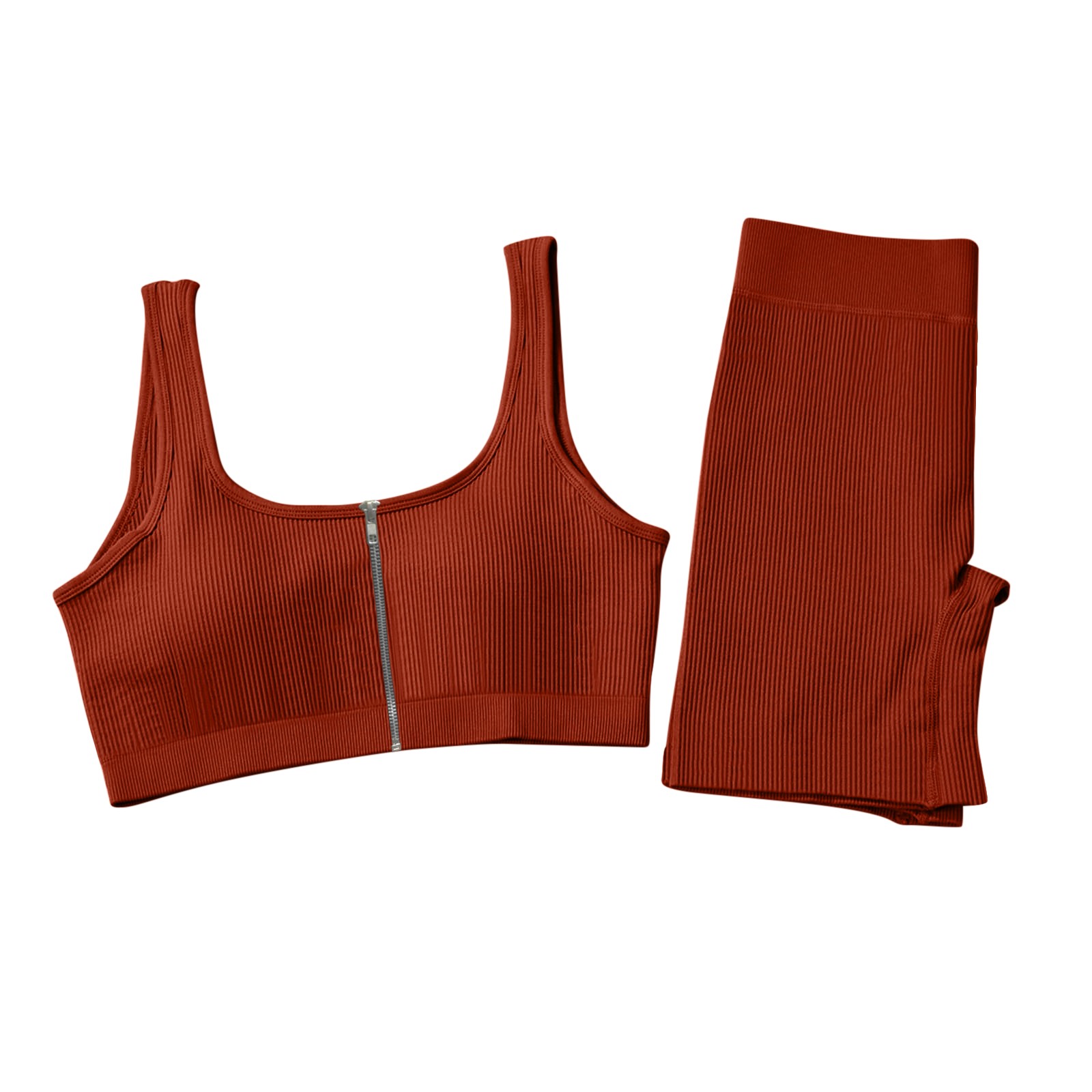 Женские комплекты для тренировок, 2 шт., на молнии, ребристый танк с высокой талией, шорты, одежды для йоги