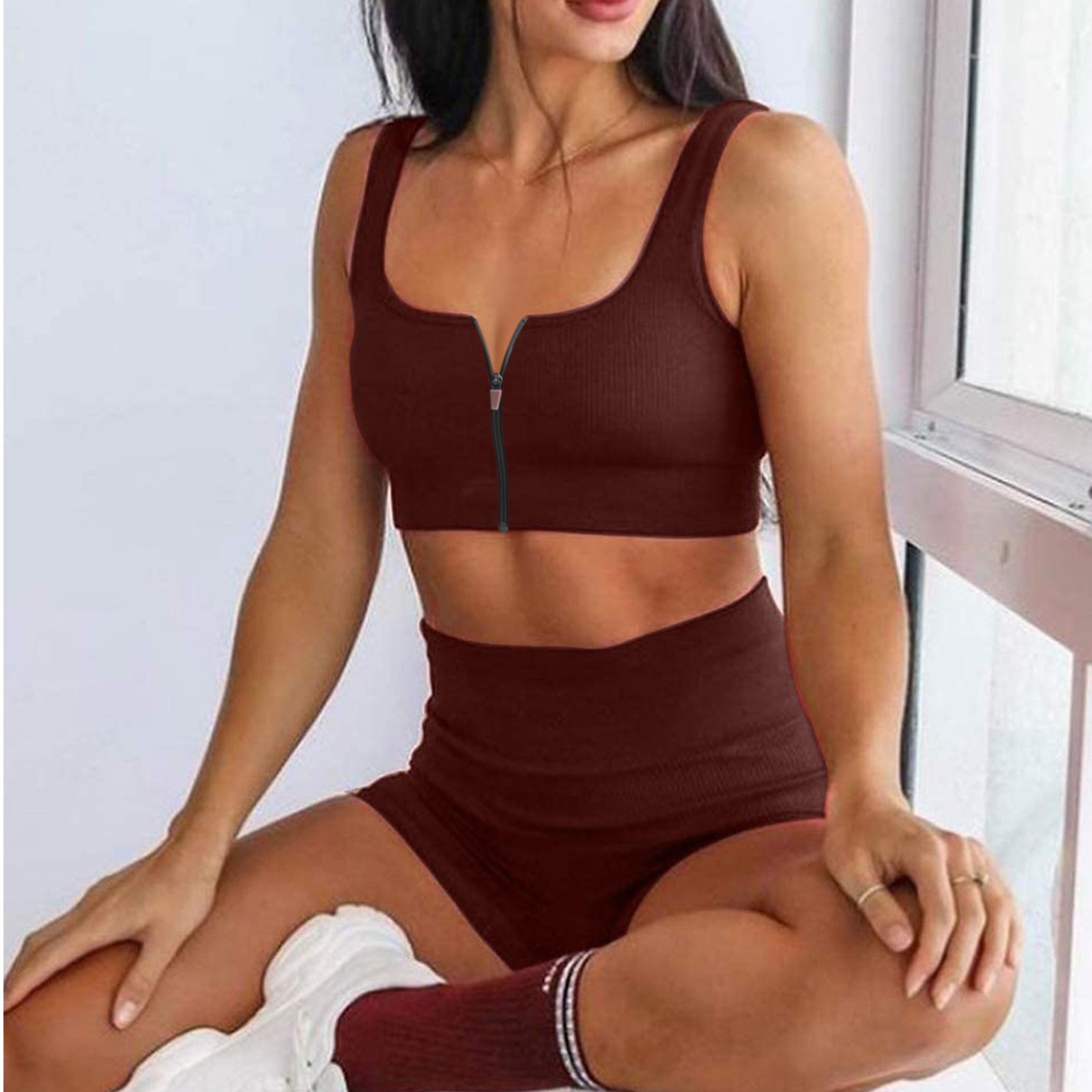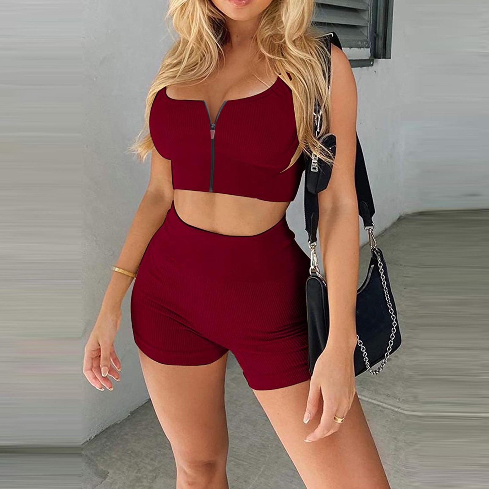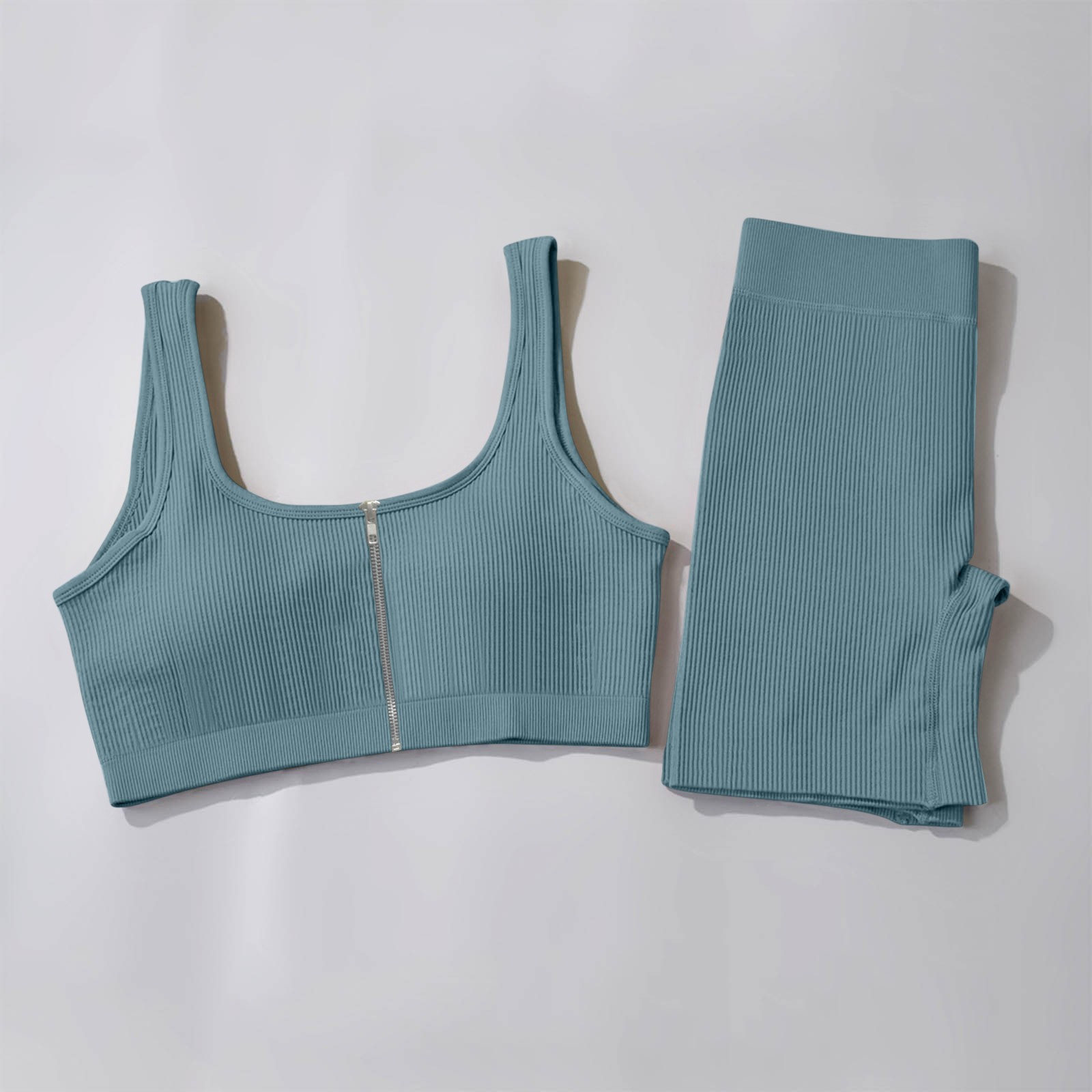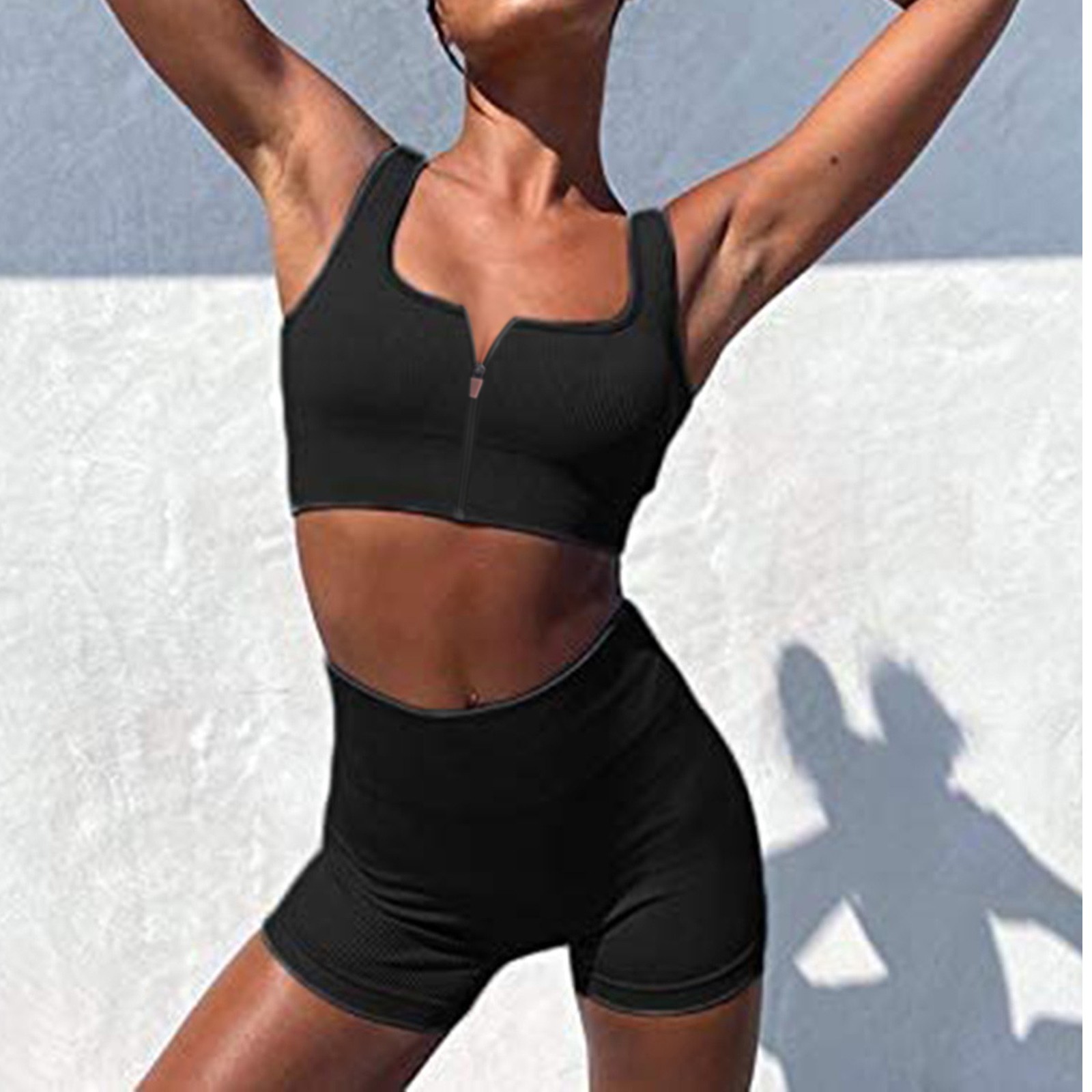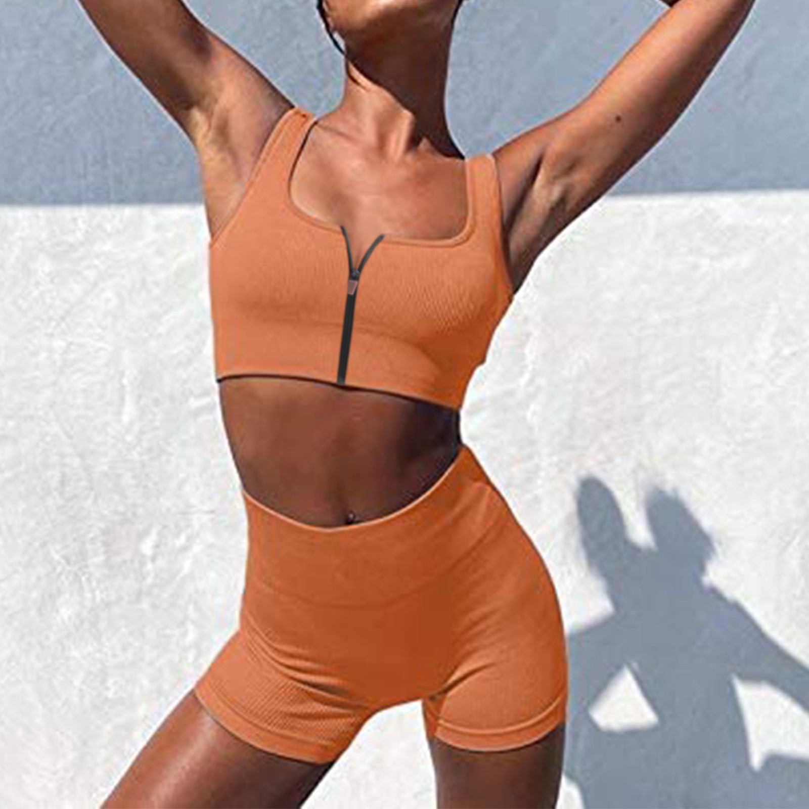 Женские комплекты для тренировок, 2 шт., на молнии, ребристый танк с высокой талией, шорты, одежды для йоги