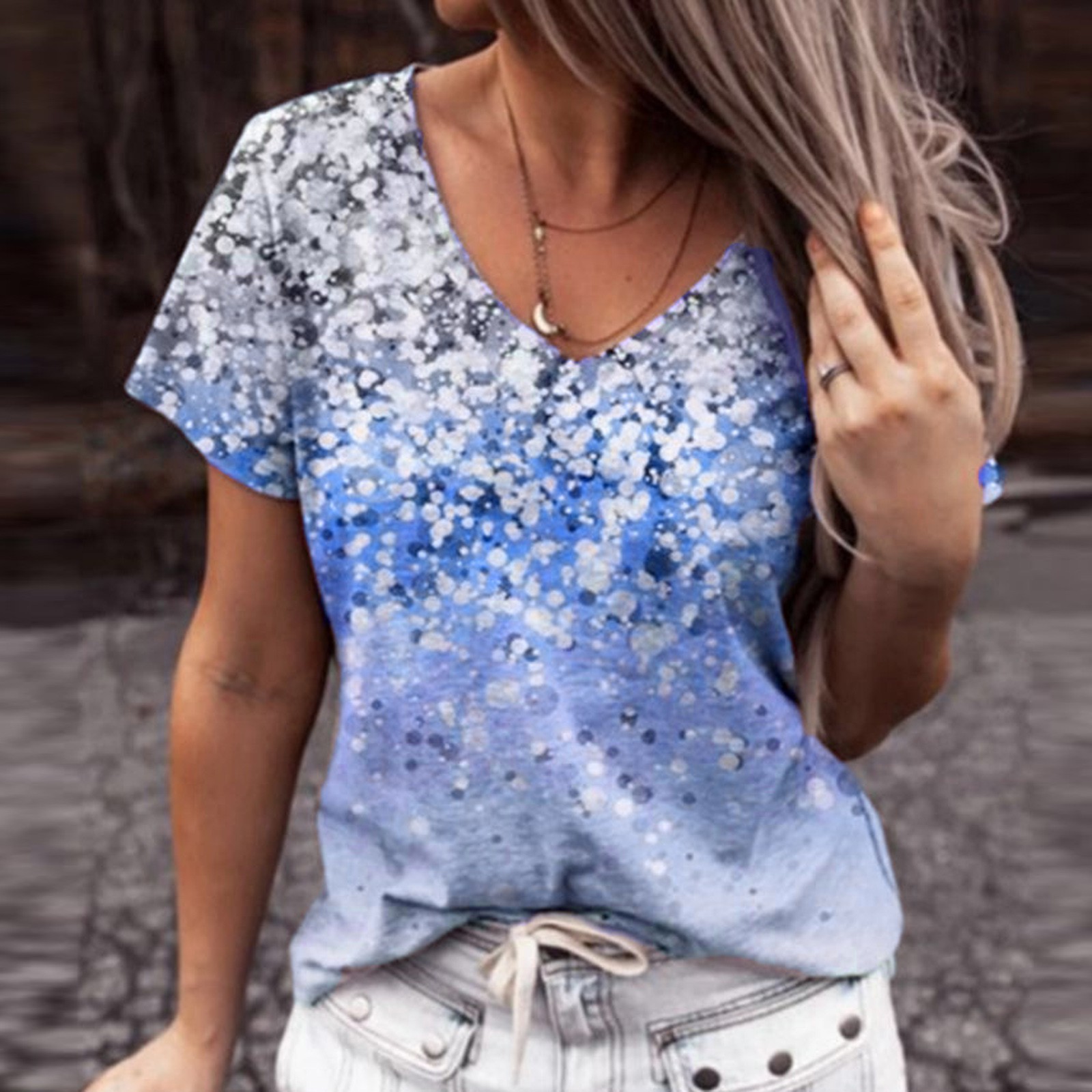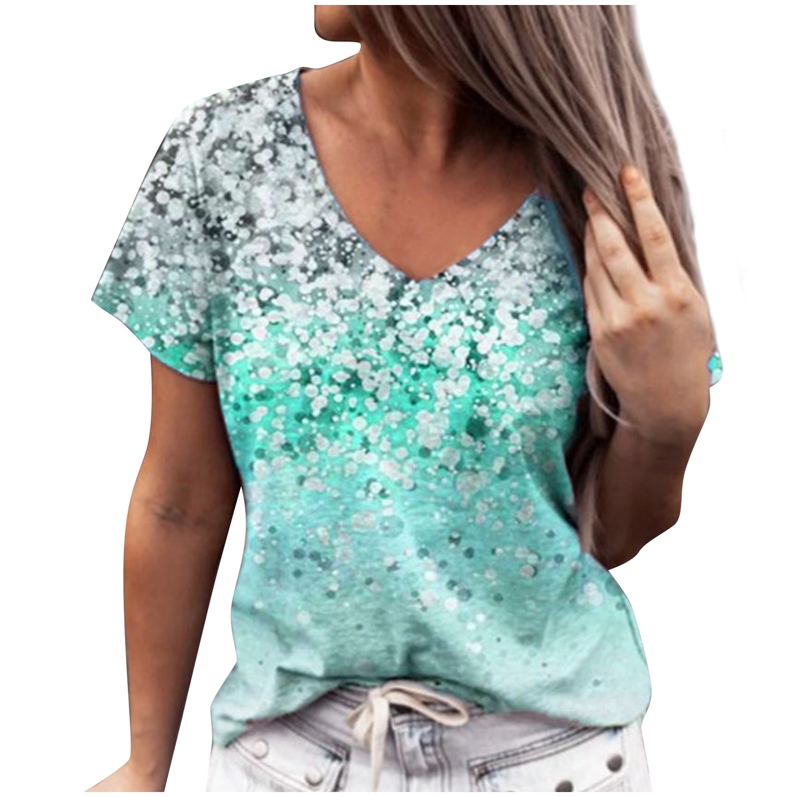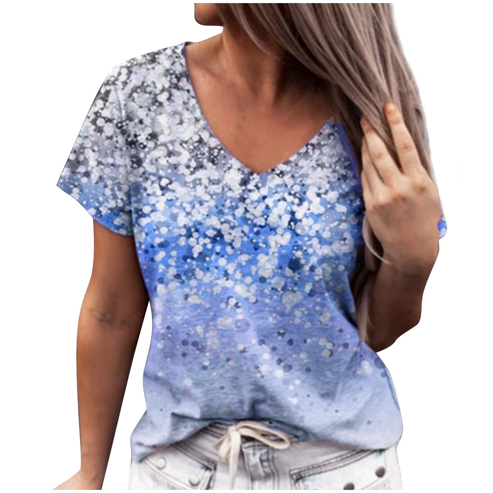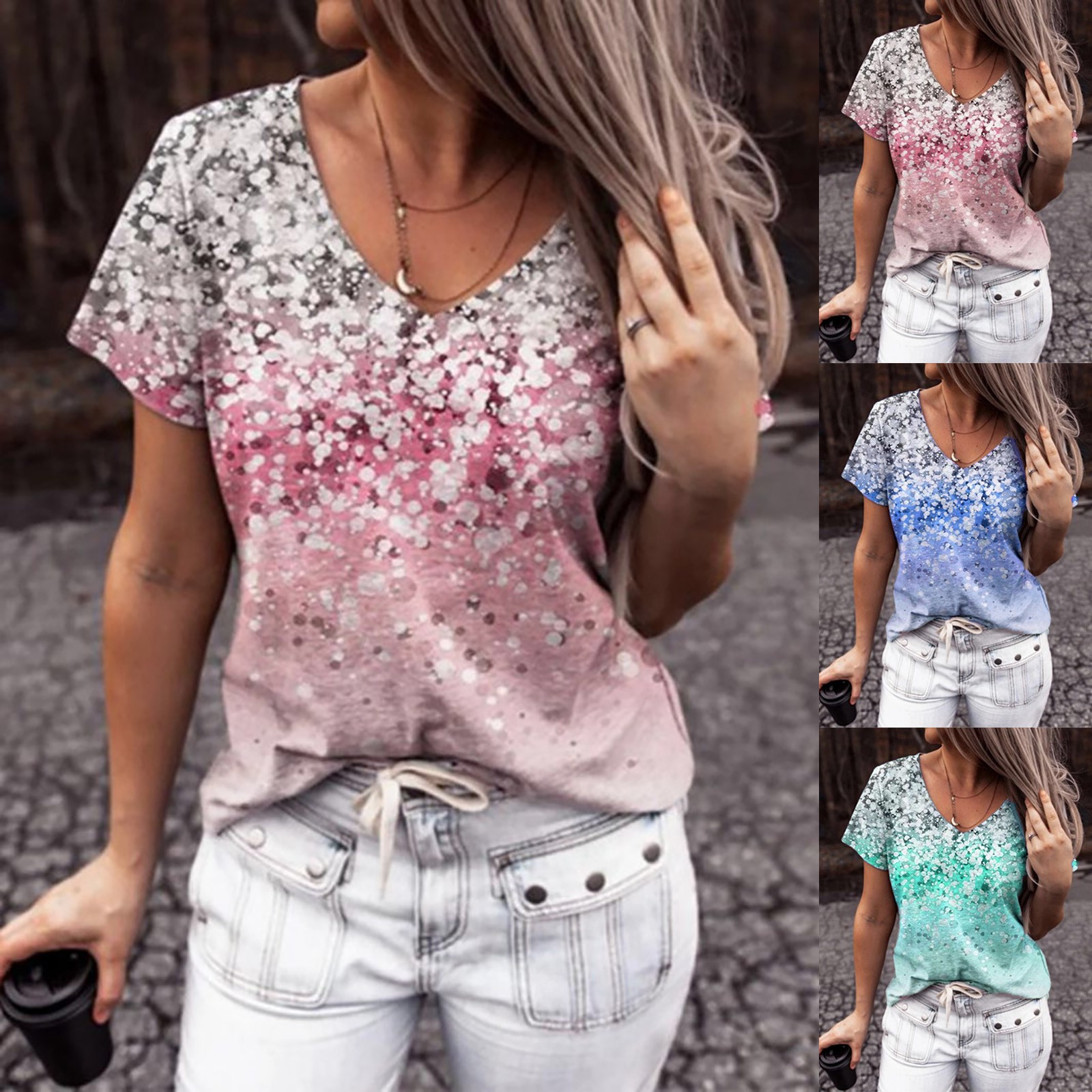 Модные женские свободные летние футболки с v-образным вырезом и короткими рукавами