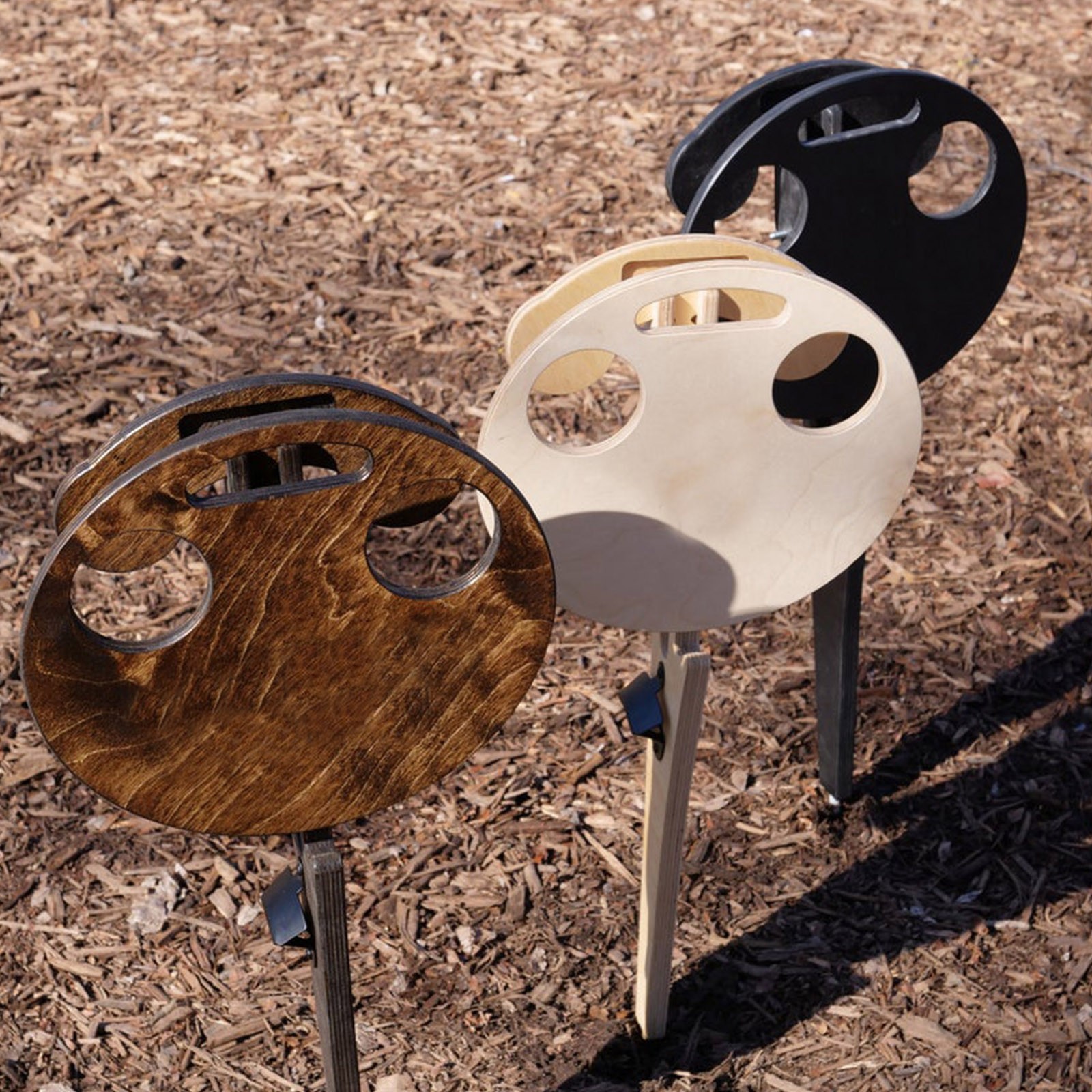 a purse hook on the leg to keep your bag upright and out of the dirt.