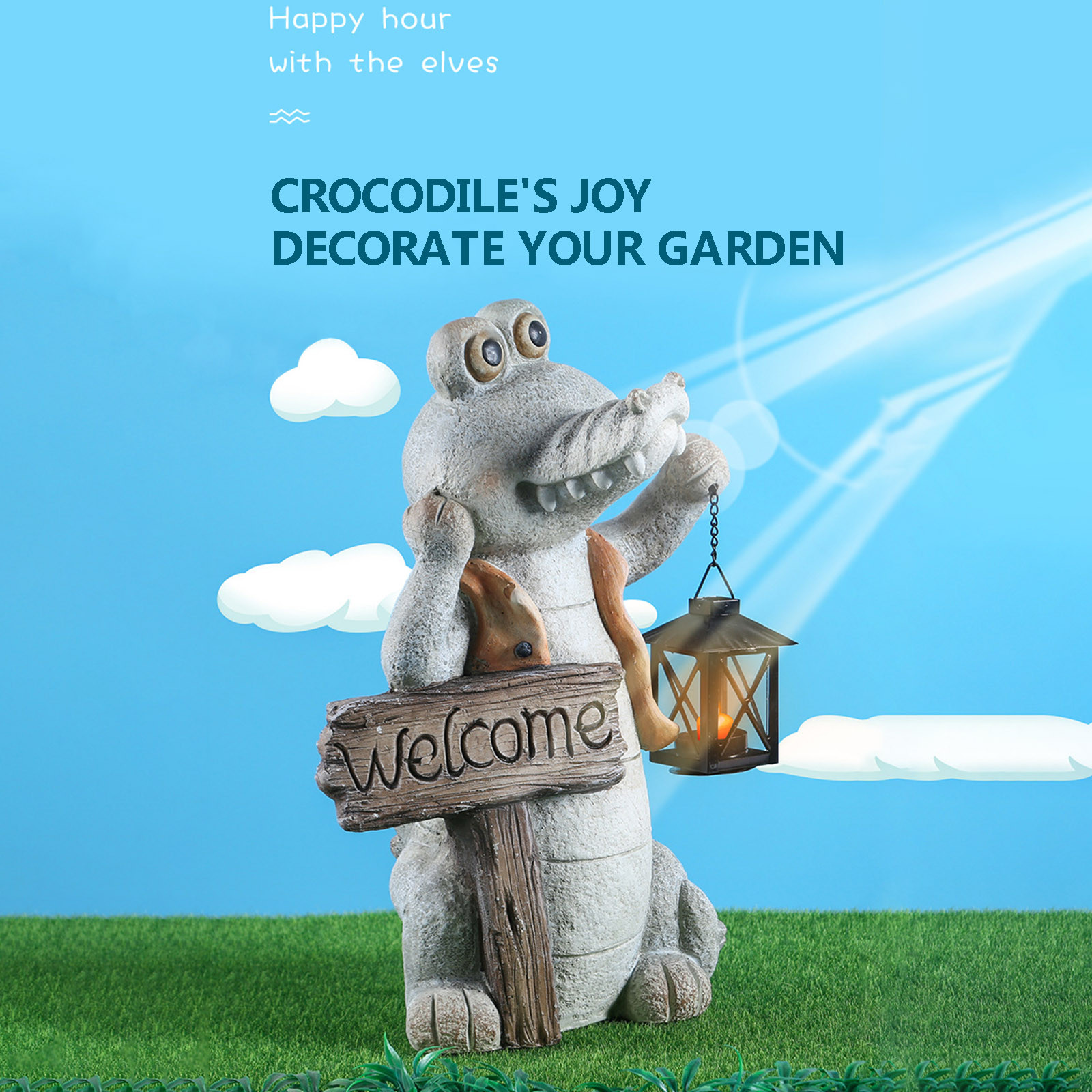 Статуя крокодила солнечный светильник Добро пожаловать садовые декоративные
