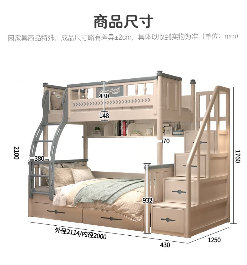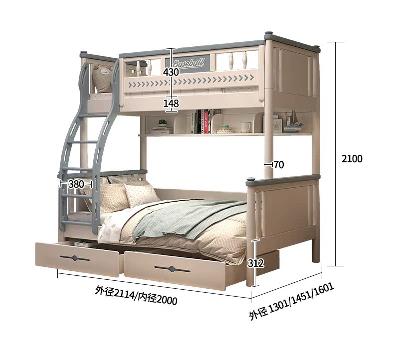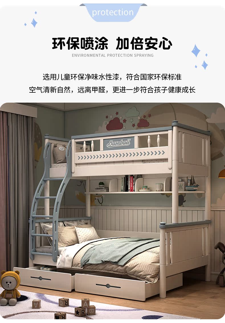 Детская зеркальная кровать из цельного дерева с цветными ограждениями детская
