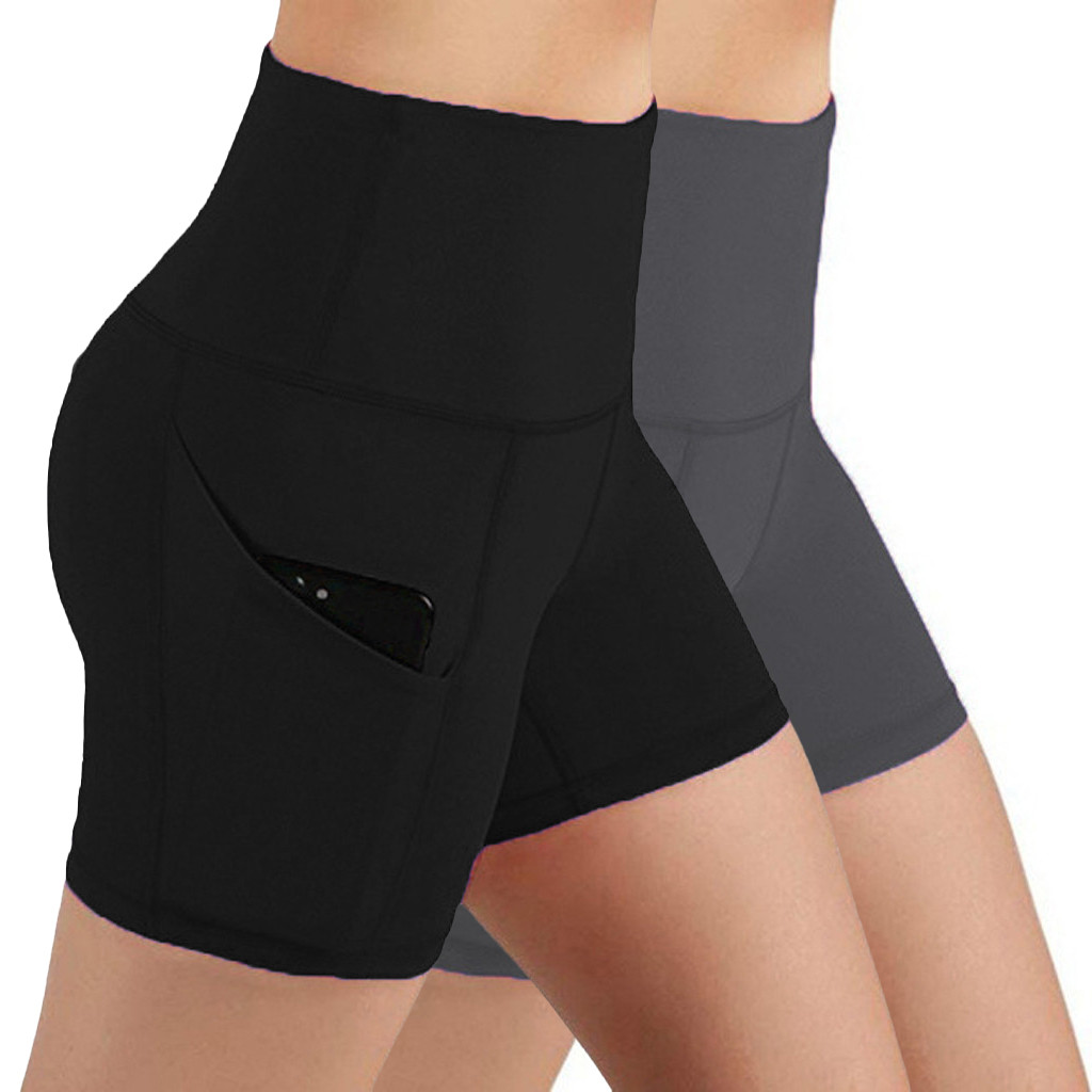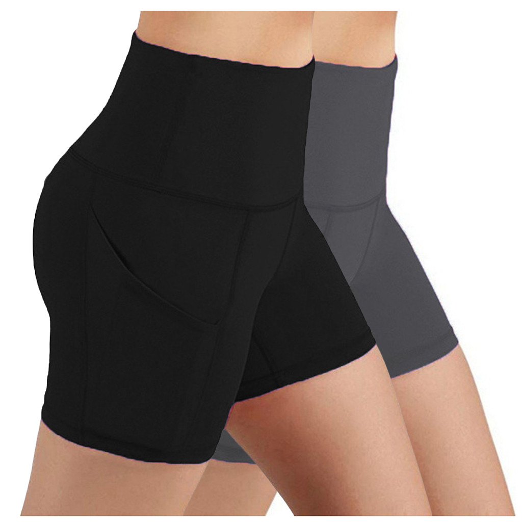 2 шт., женские Однотонные эластичные шорты с карманами и высокой талией для бега, фитнеса, йоги