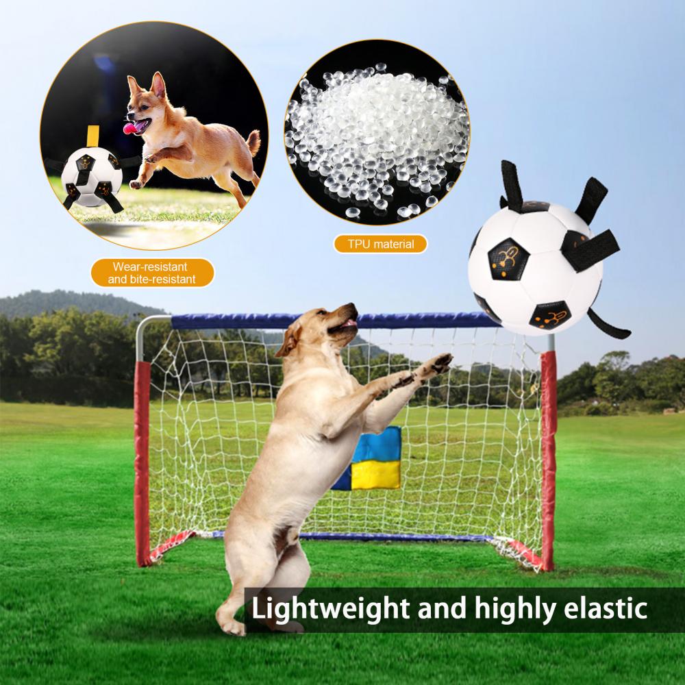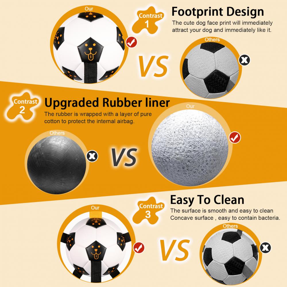 ТПУ Прочный Материал: изготовлен из ТПУ, футбольные игрушки для собак мягкие, прочные и легко чистятся, и это также материал стандартных футбольных мячей. Даже большие разрушительные собаки не оставят следов зубов или не будут легко дробить.