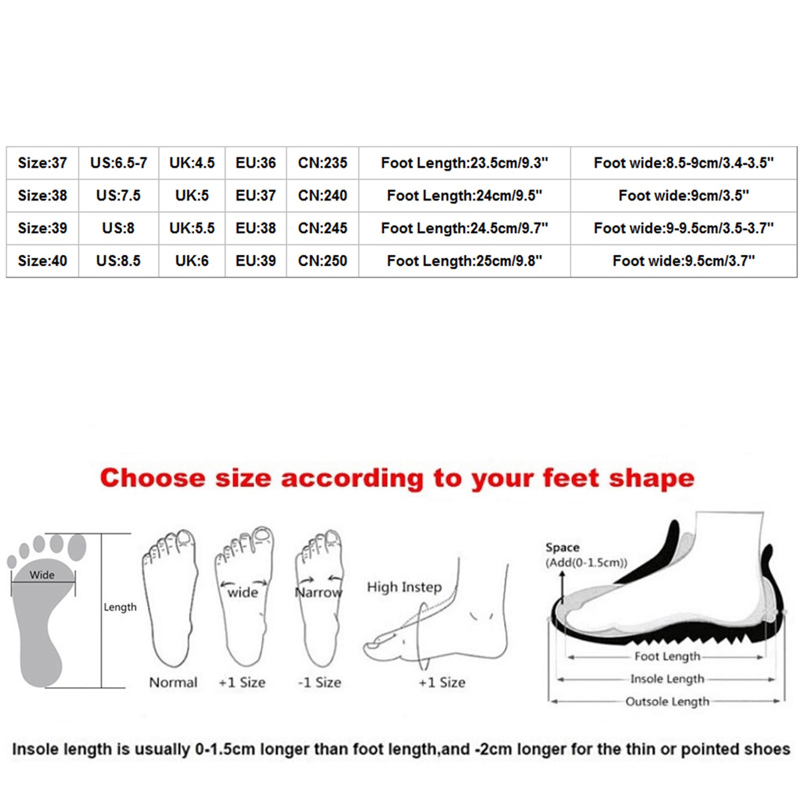Теплое напоминание:Различные стили обуви, пожалуйста, выберите размер в соответствии с типом вашей стопы.