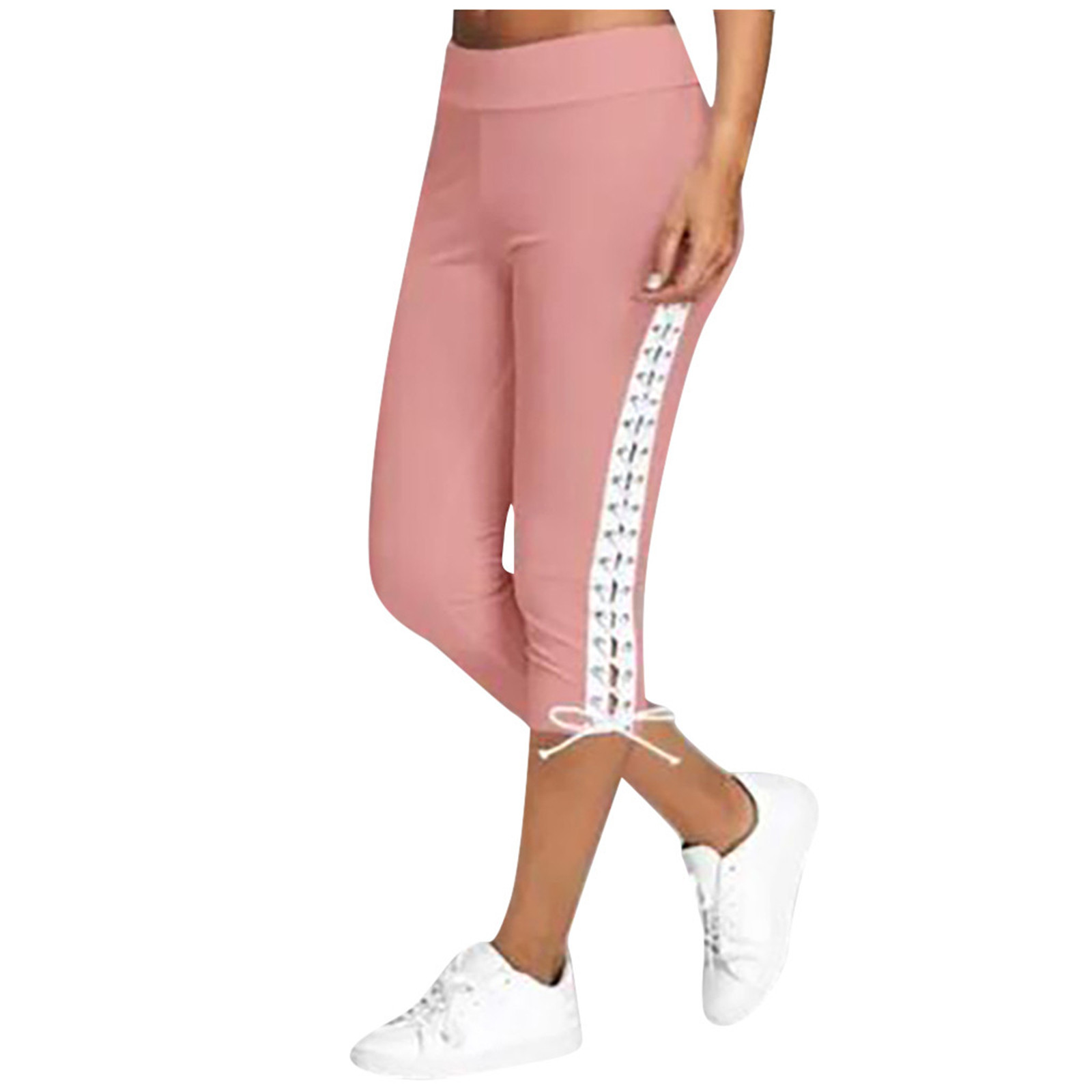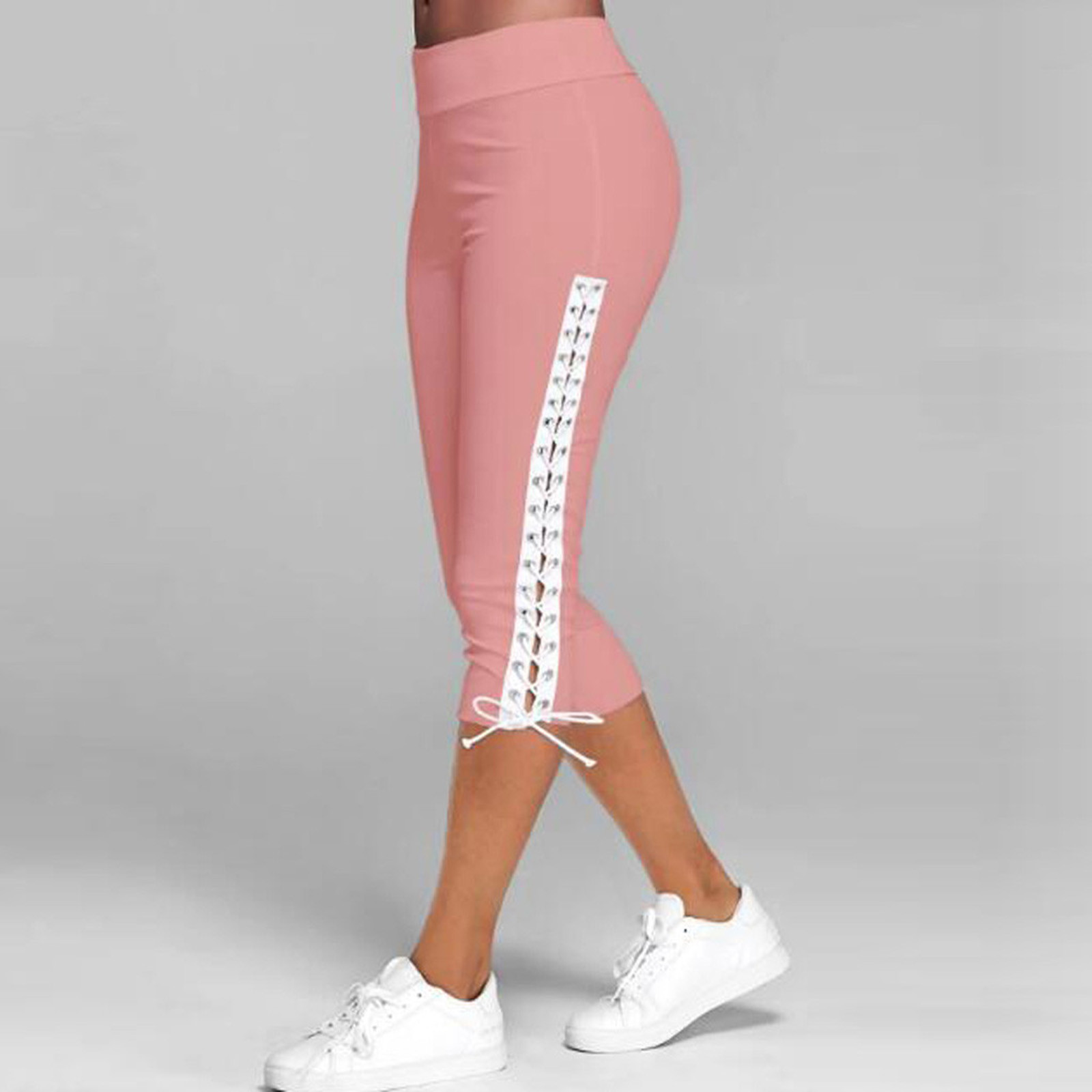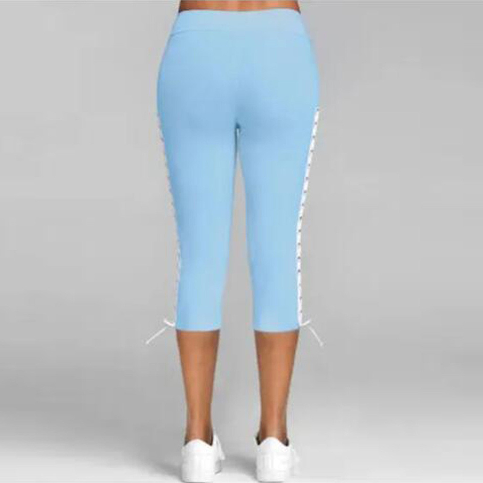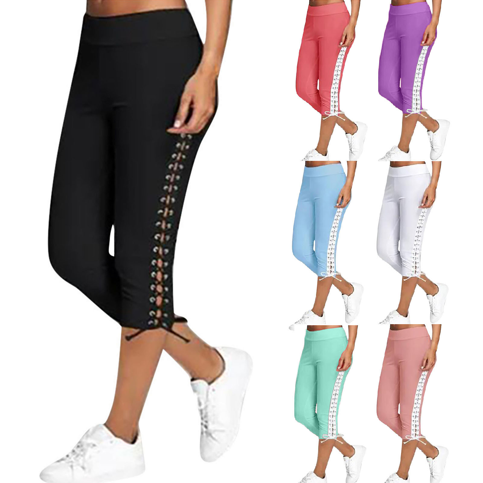 Модные Женские однотонные укороченные брюки с эластичной резинкой на талии, повседневные спортивные штаны