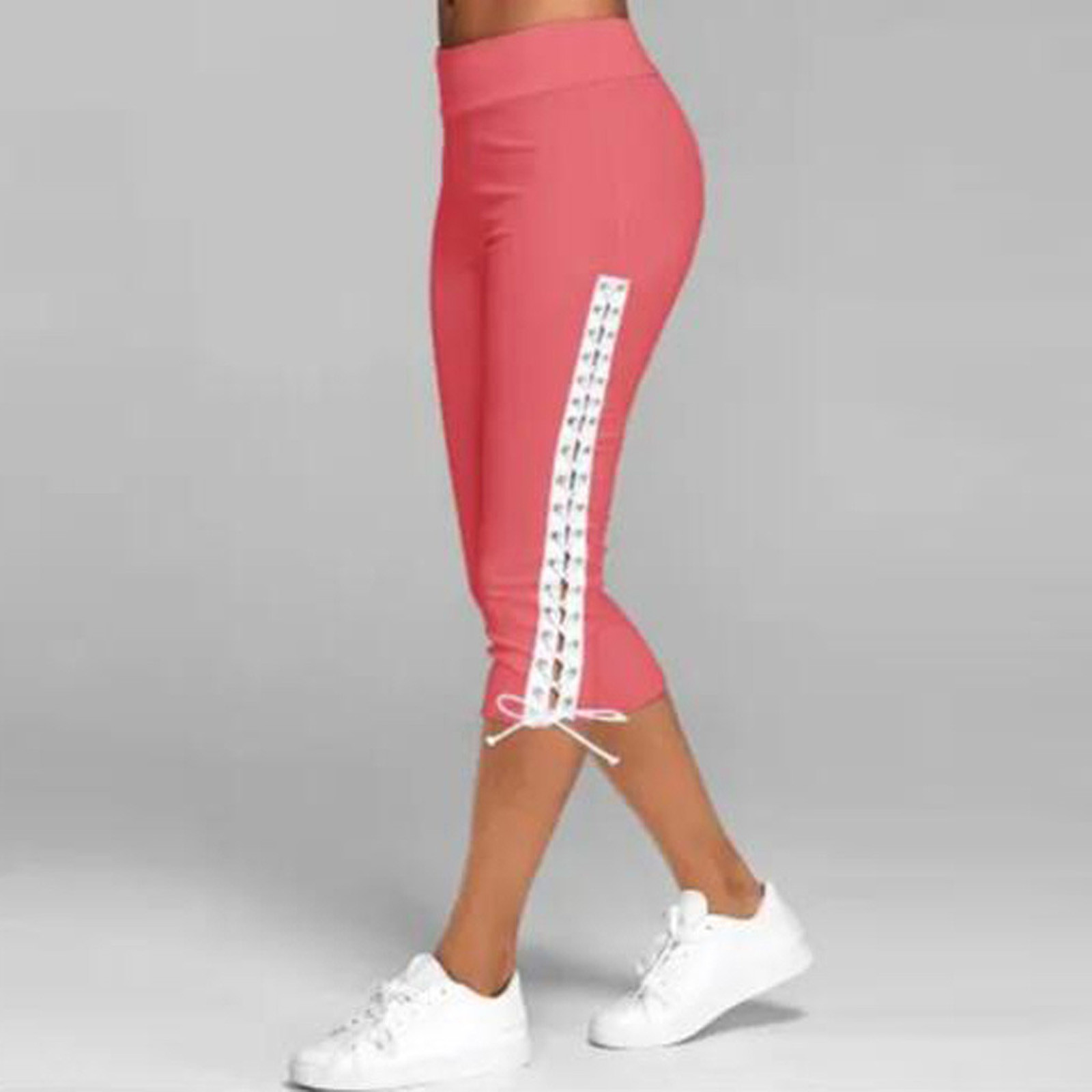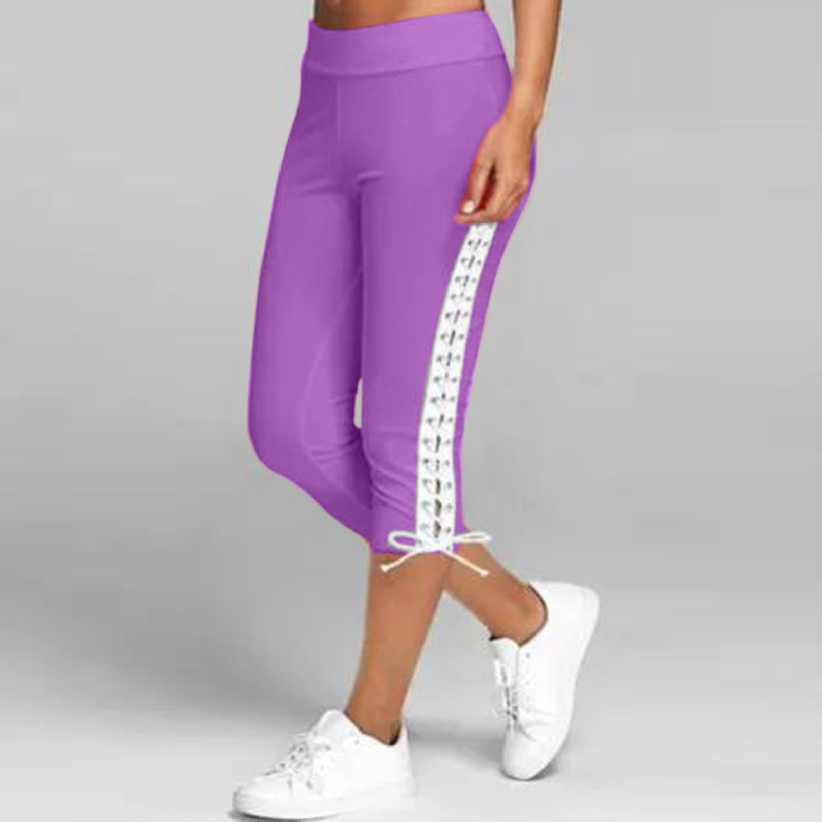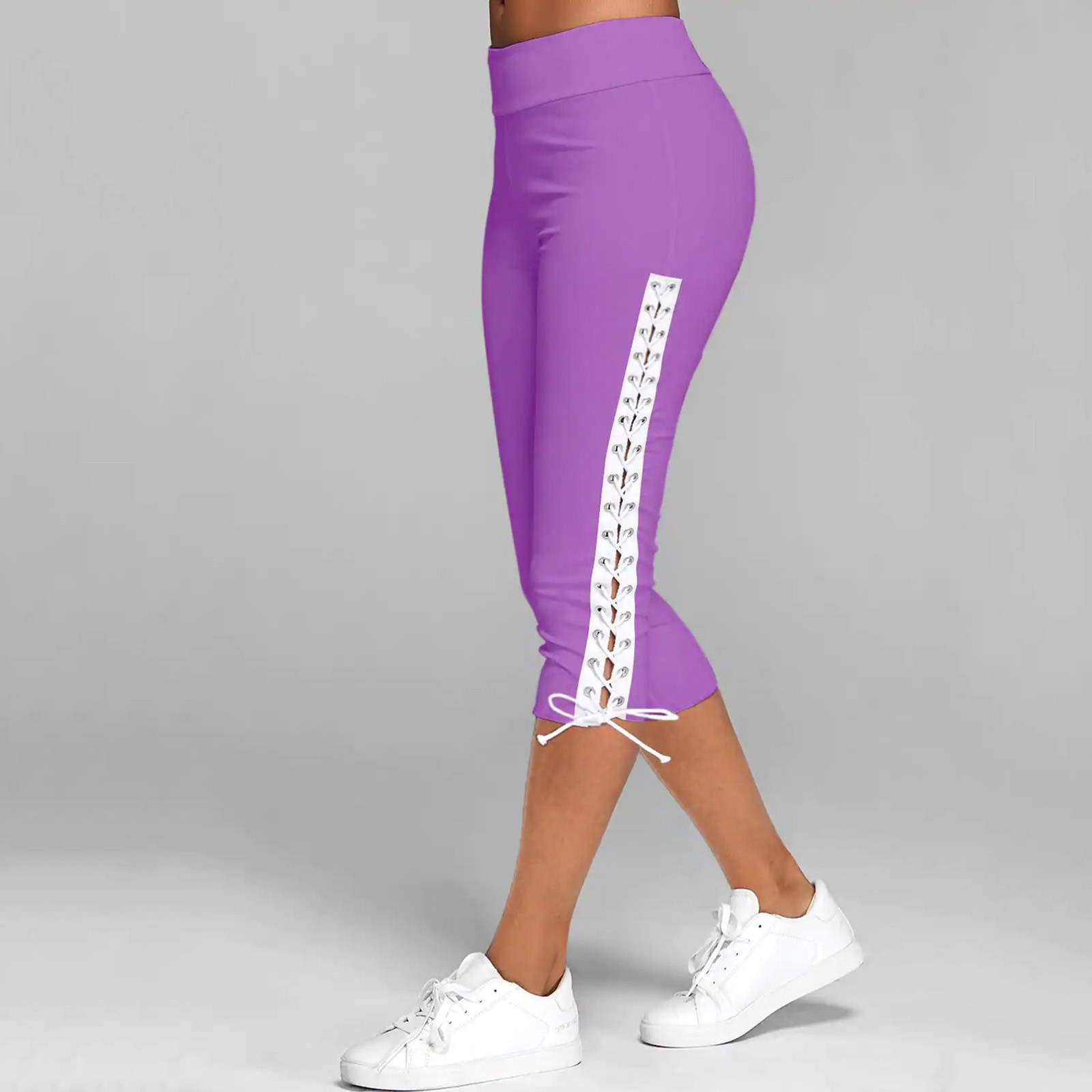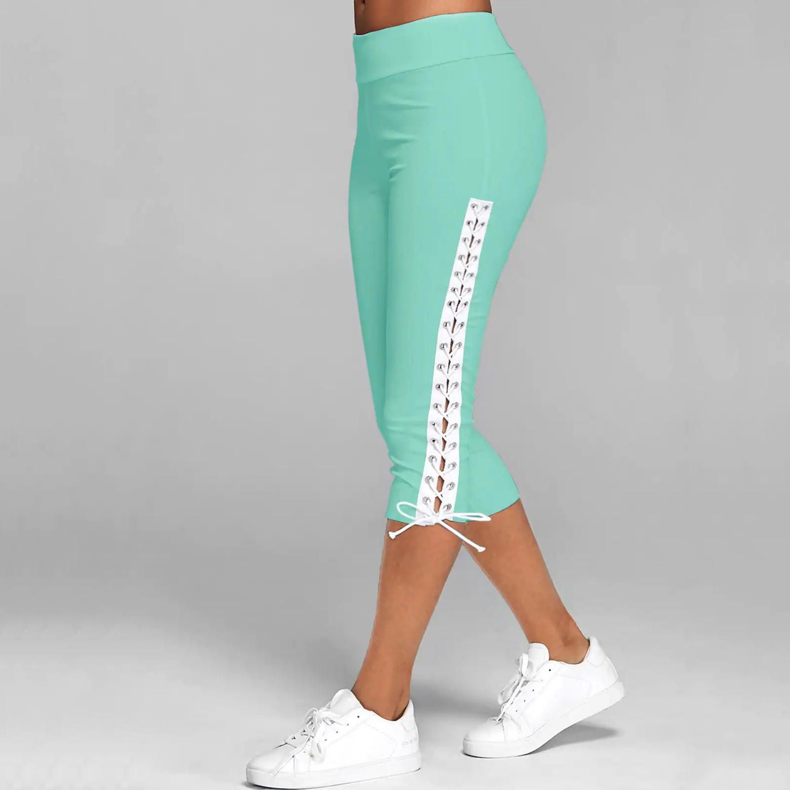 Модные Женские однотонные укороченные брюки с эластичной резинкой на талии, повседневные спортивные штаны