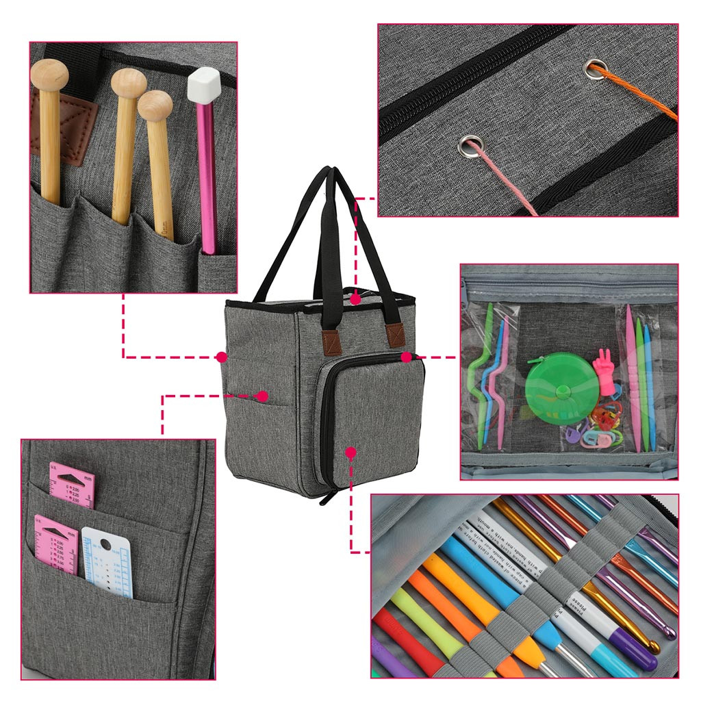 Наслаждайтесь свободой и удобством Возьмите с собой ваши проекты вязания и вязания крючком. Удобная сумка для вязания крючком Возьмите с собой, куда бы вы ни отправились, или храните для вашего швейного комплекта и вязания Принадлежности