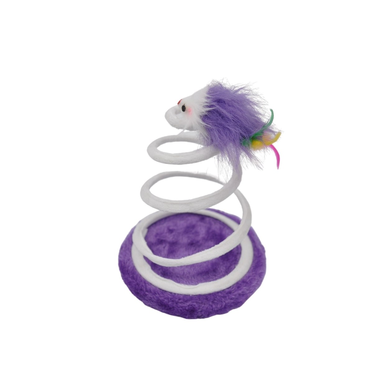 Wooden Base Spring Toy It is a moving toy with mouse bow that will allow your cat to have a happy and fun time. With this toy, your cat can play for hours and let go of his energy and queasiness.