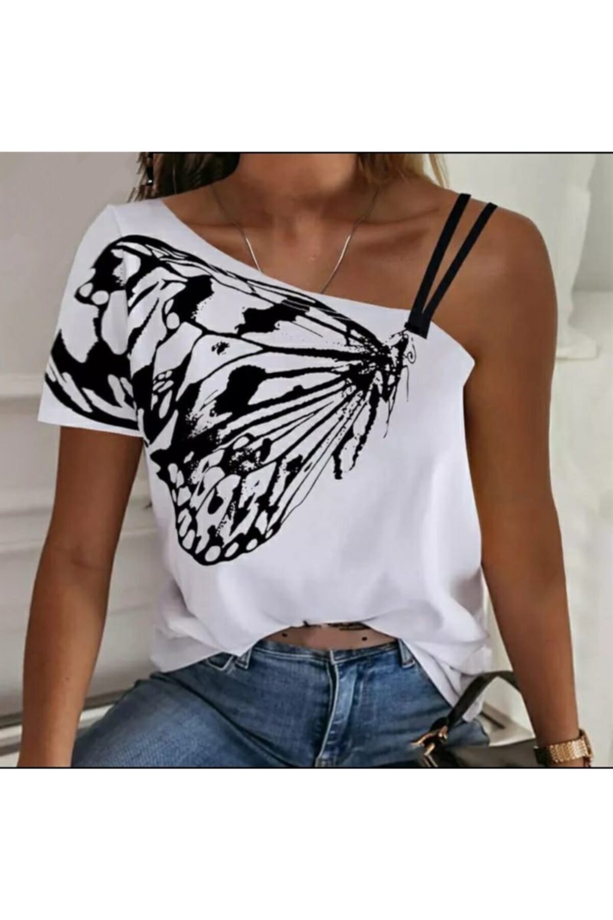 Блузка из вискозы с принтом бабочки на ремешке 60 см Товар в наличии ограничен.Пожалуйста, приобретайте товар до того, как вы выберете цвет и размер, используя информацию о наличии.