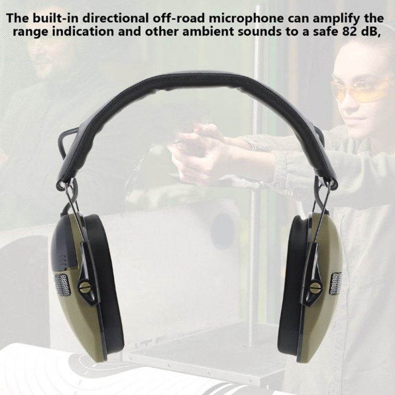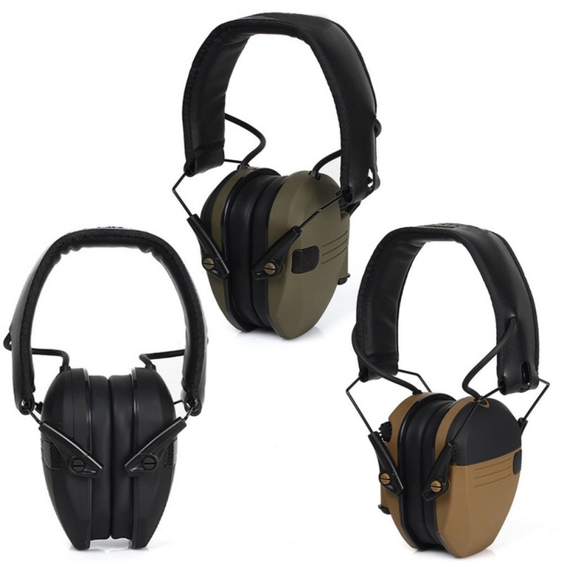 Razor Slim Shooter Style Foldable Earmuffs 22 dB Black Noise Cancelling Headphones feature: Designed for use in the field. After turning on the noise reduction pickup function, the wearer will immediately convert the high-decibel noise and popping sound collected at 360 degrees into the acceptable range for human ears. Binaural microphones will automatically (soften and attenuate) above 82. The impact sound is higher than decibels, and the noise reduction rate is 22NRR, which can collect and amplify environmental/talking sounds below 18 decibels. The earmuffs also have low-profile earmuffs that will not interfere with your aiming. The headband is padded to provide comfort and telescope functions to ensure safe and customized wear. When connected to an MP3 player or other audio source, the external audio jack allows the headset to double as a stereo headset. One switch can independently control the pickups on both sides, powered by 2 AAA batteries (not included) The wearer can provide 6 times the sound pickup effect. 3.5mm dual-channel audio interface can be connected to audio devices, such as mobile phones and computers specification: Color: army green, black, khaki Weight: 375 grams Product net weight: 300g Size: 125x110x100mm Packing size: 12.5 * 13.5 * 10cm single: 375 grams Battery type: 2 AAA batteries (not included) Style: earmuffs Material: ABS plastic Energy: battery powered Sound level: 24 dB Special function noise reduction level (NRR): 22 dB
