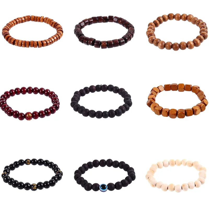 5 шт. браслет из деревянных бусин ручной работы для женщин и мужчин, эластичная цепочка, бусы, браслеты, ювелирные изделия, аксессуары, оптовая продажа Материалы: деревянные бусины Размер: диаметр бусин 8 мм Вес: около 5 г/шт. Длина: около 17 ~ 18 см эластичная цепочка