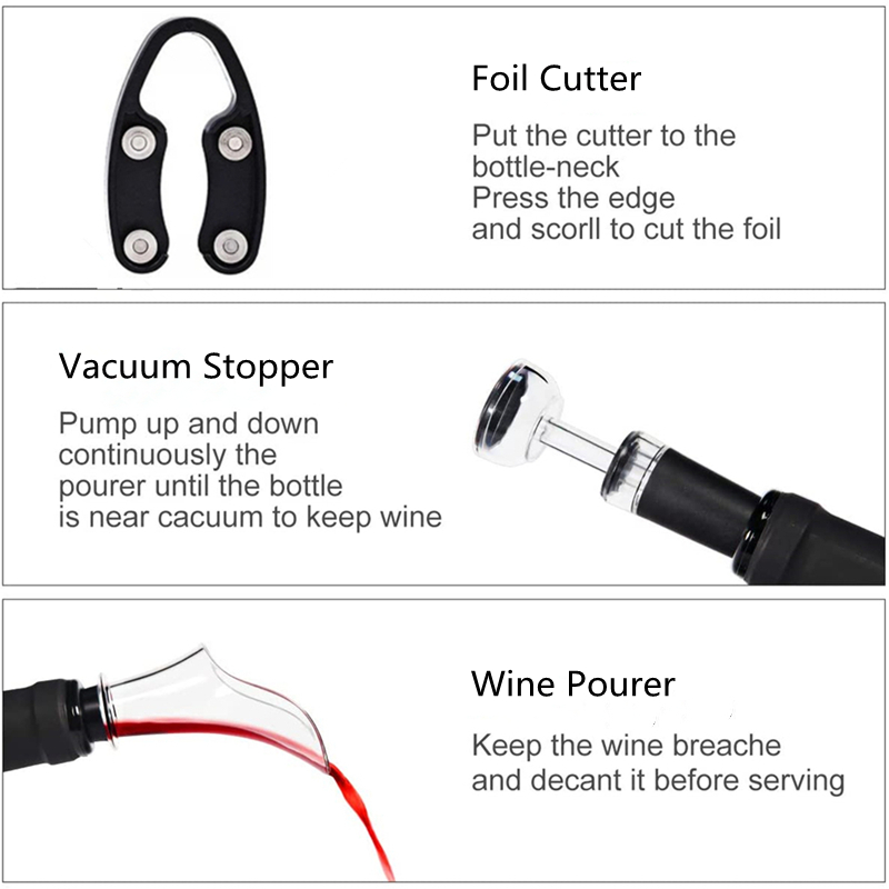1. Идеальный подарок: набор открывалок для вина включает в себя открывалку для вина, фольга резак, вино pourer, и вакуумные винные пробки.