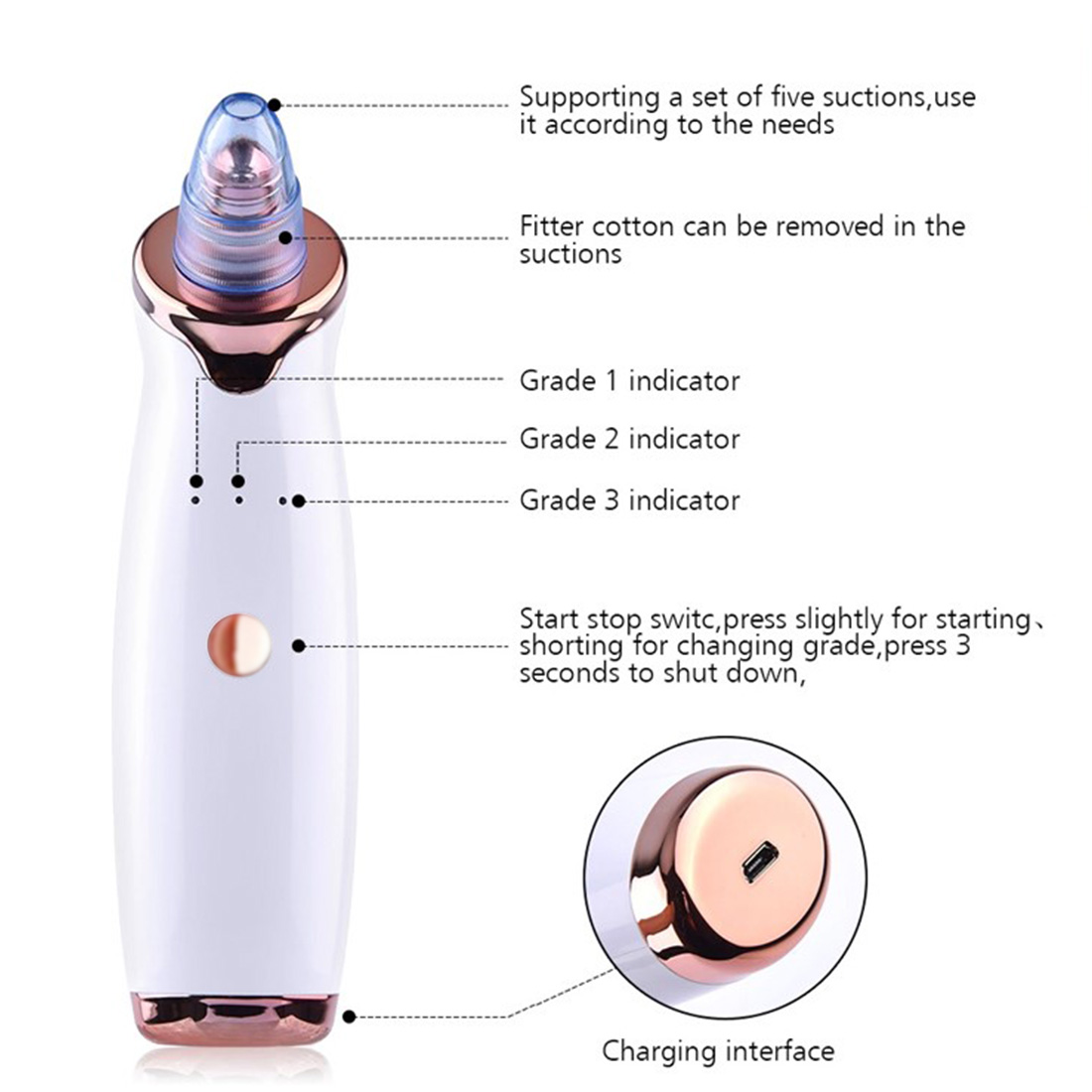 Использование высококачественных материалов и ультратонкого устройства для удаления черных точек помогает улучшить ощущение и адаптироваться к различным типам кожи. Безопасный, прочный, портативный, перезаряжаемый и удобный.
