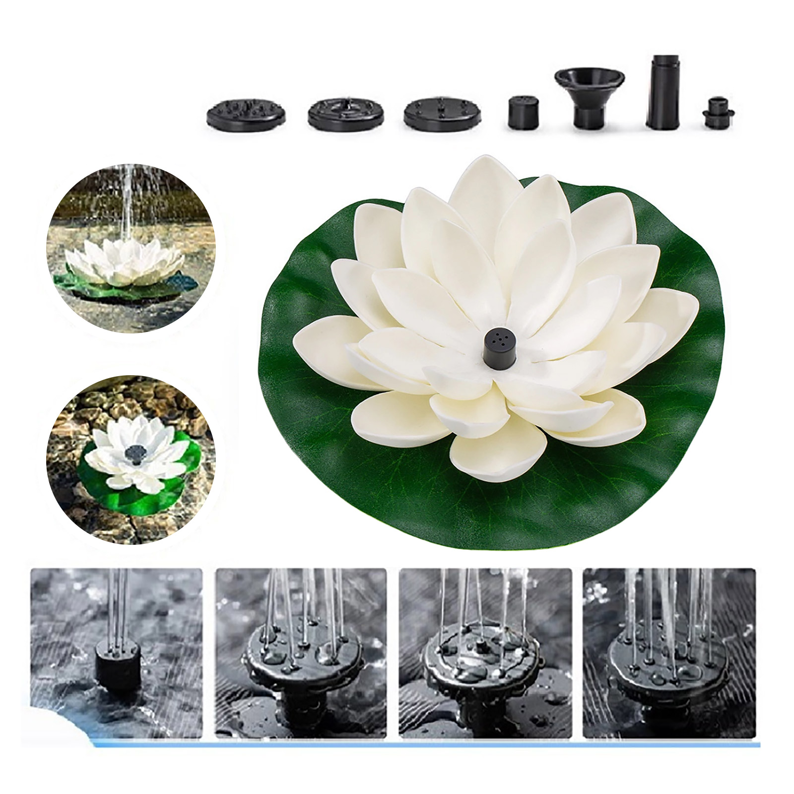 1. Подключение различных сопла, высота распыления воды будет отличаться. Когда солнечная панель получает достаточное количество солнечного света, водяной насос начнет работать в течение 3 секунд.