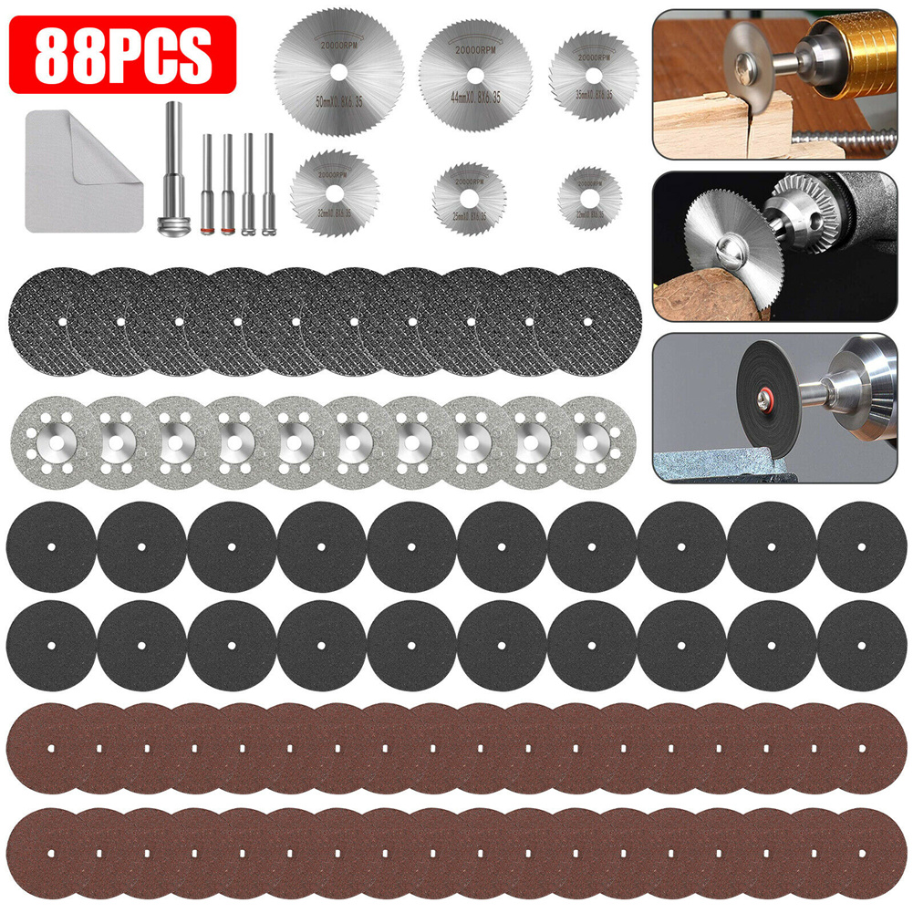 Уникальная посылка: посылка вращающегося режущего колеса имеет различные наборы режущего диска для удовлетворения различных потребностей. Оснащен 56 лезвиями для резки смолы, 10 Алмазными Режущими колесами, 10 режущими лезвиями с двойной сеткой, 6 высокоскоростных стальных дисковых пил, 5 оправок и 1 салфетка для очистки.