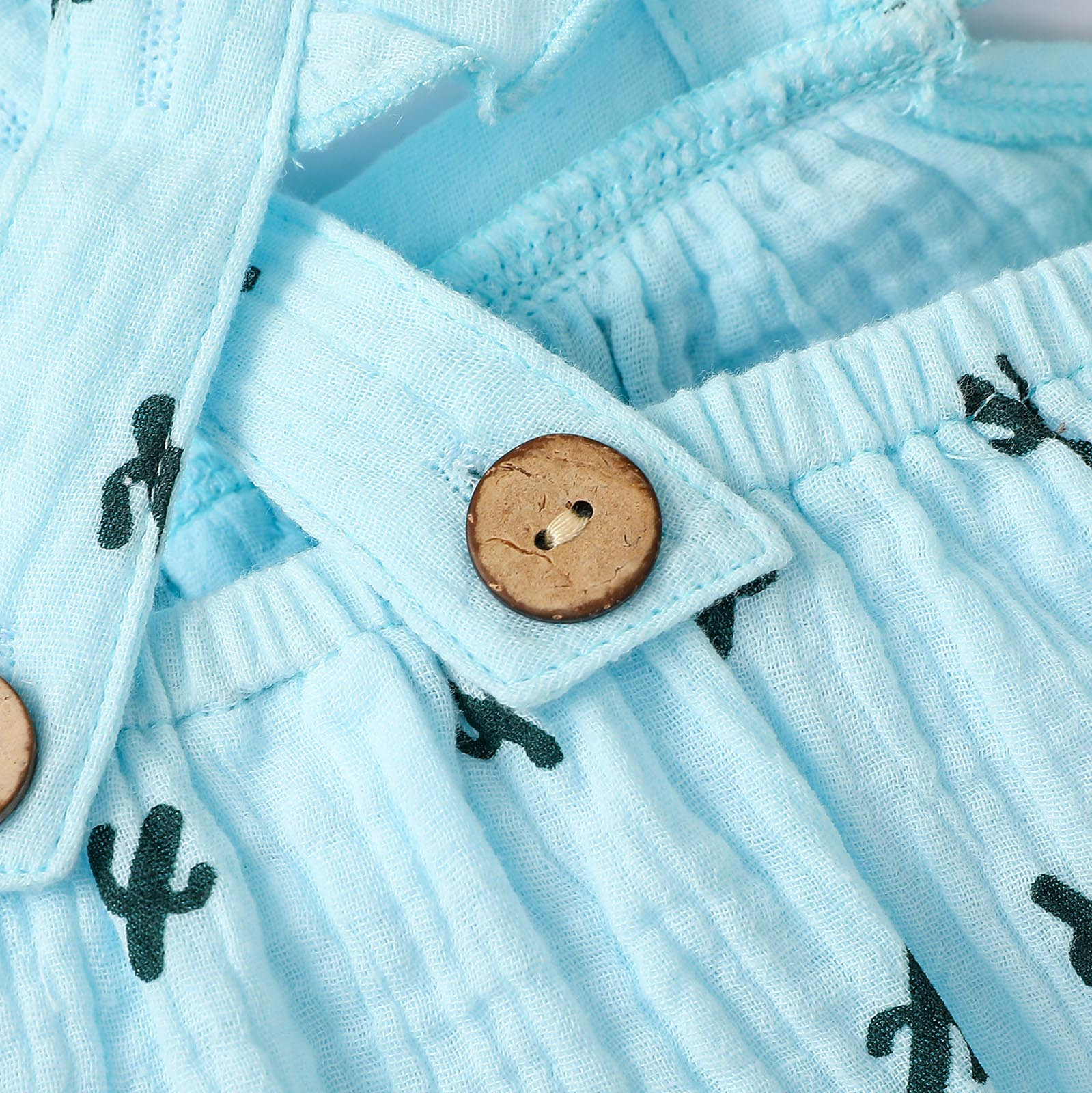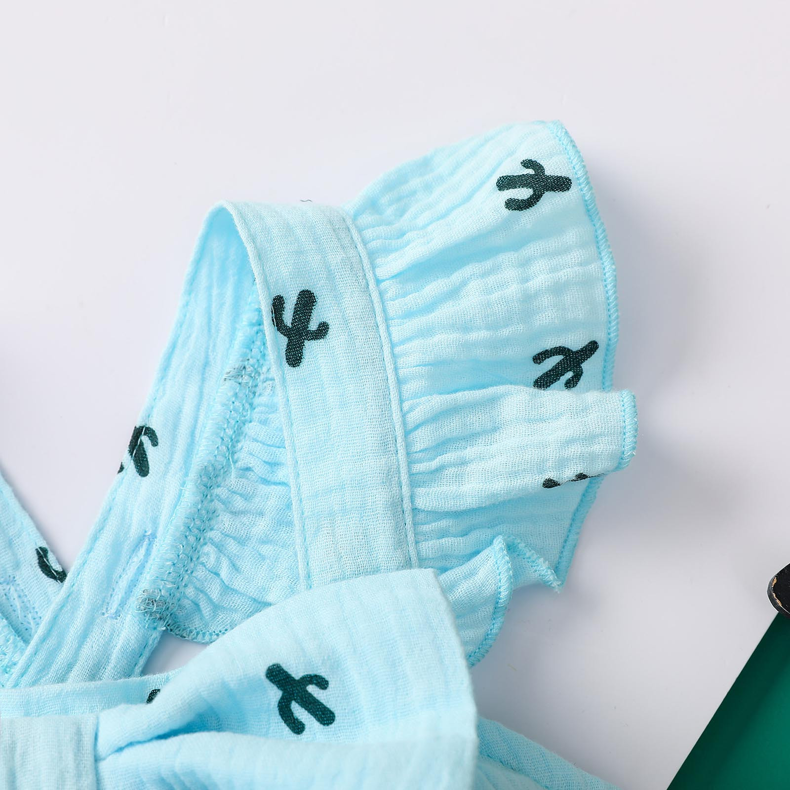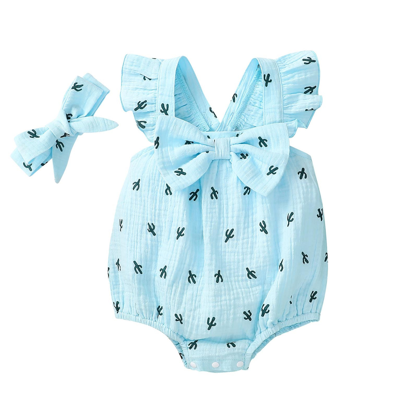 Боди для новорожденных девочек; Летний комбинезон синего цвета с принтом кактуса; Повязка на голову с бантом; Комплект из 2 предметов