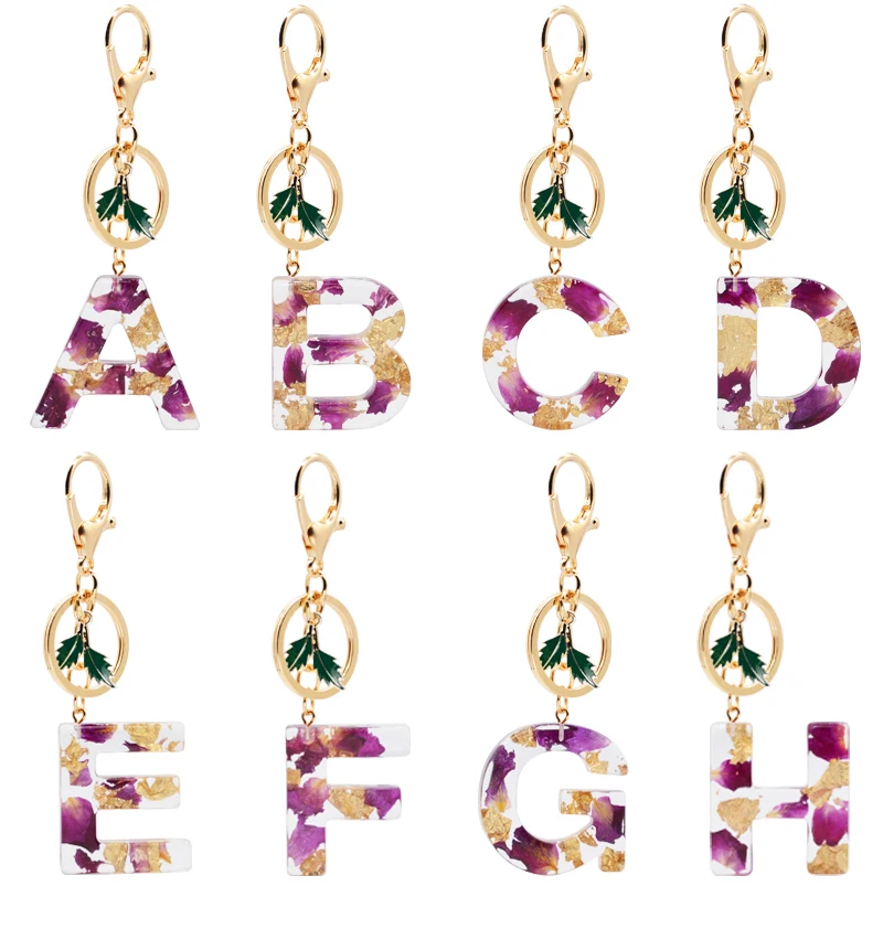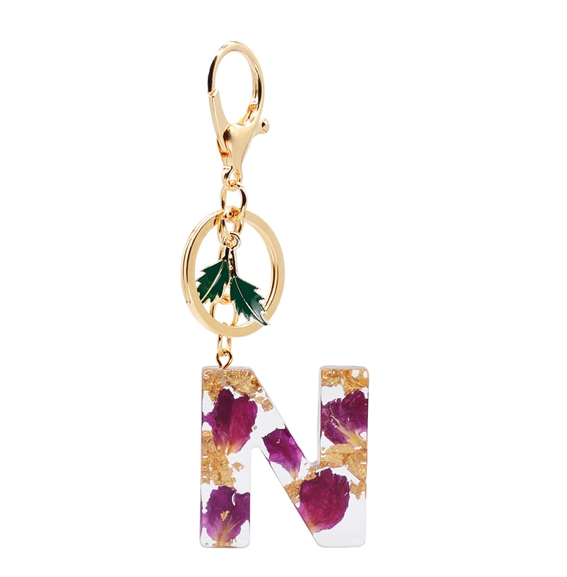 1 шт., новая мода, английская смола, брелок с буквами, цветок, фиолетовая Роза, лепесток, Золотая фольга, подвеска, брелок, сумочка, подвески для женщин