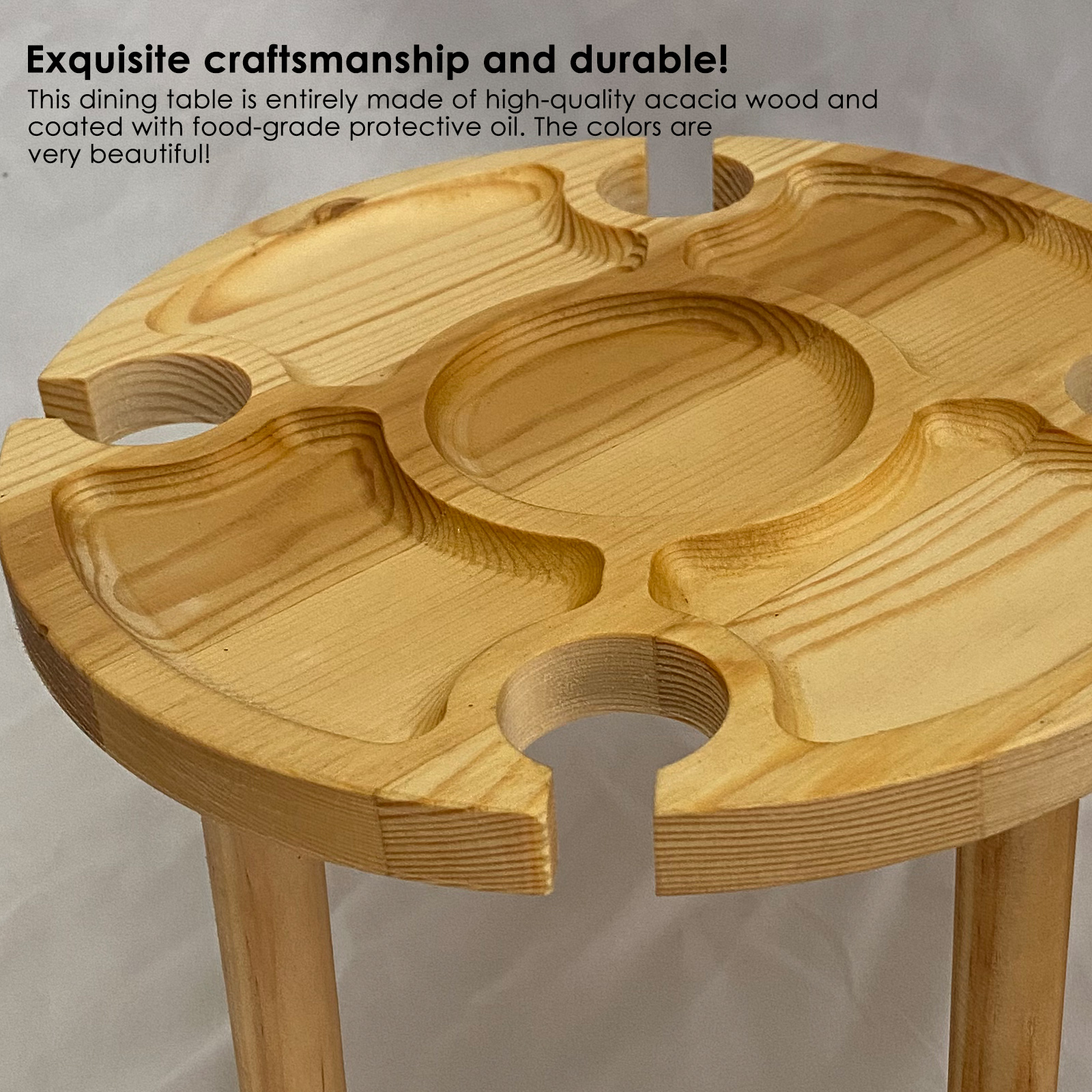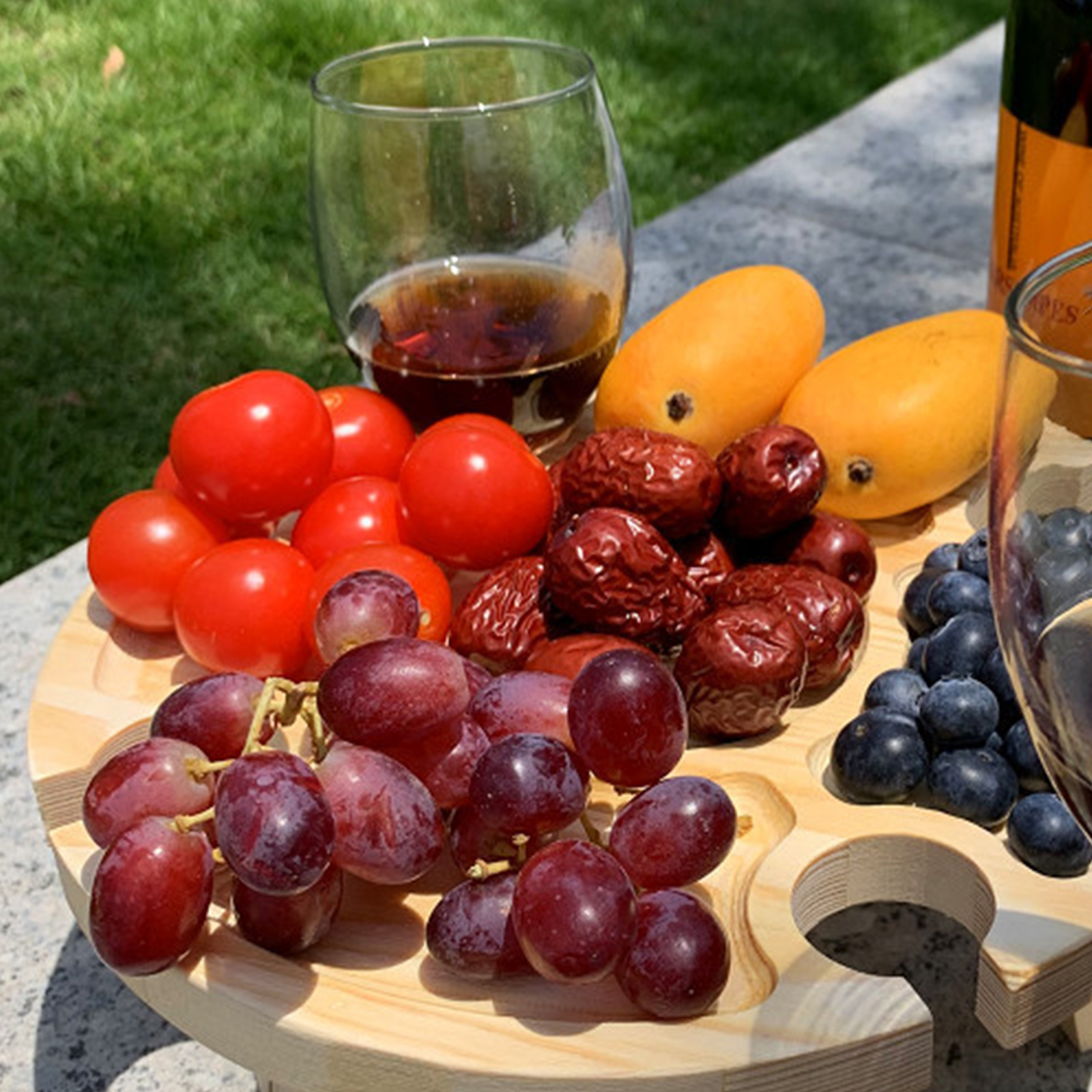 Exquisite relaxation and a glass of ice wine! Our portable picnic table is equipped with a built-in wine or champagne bottle holder and 4 fixed wine glass troughs. Hurry up and call a friend!