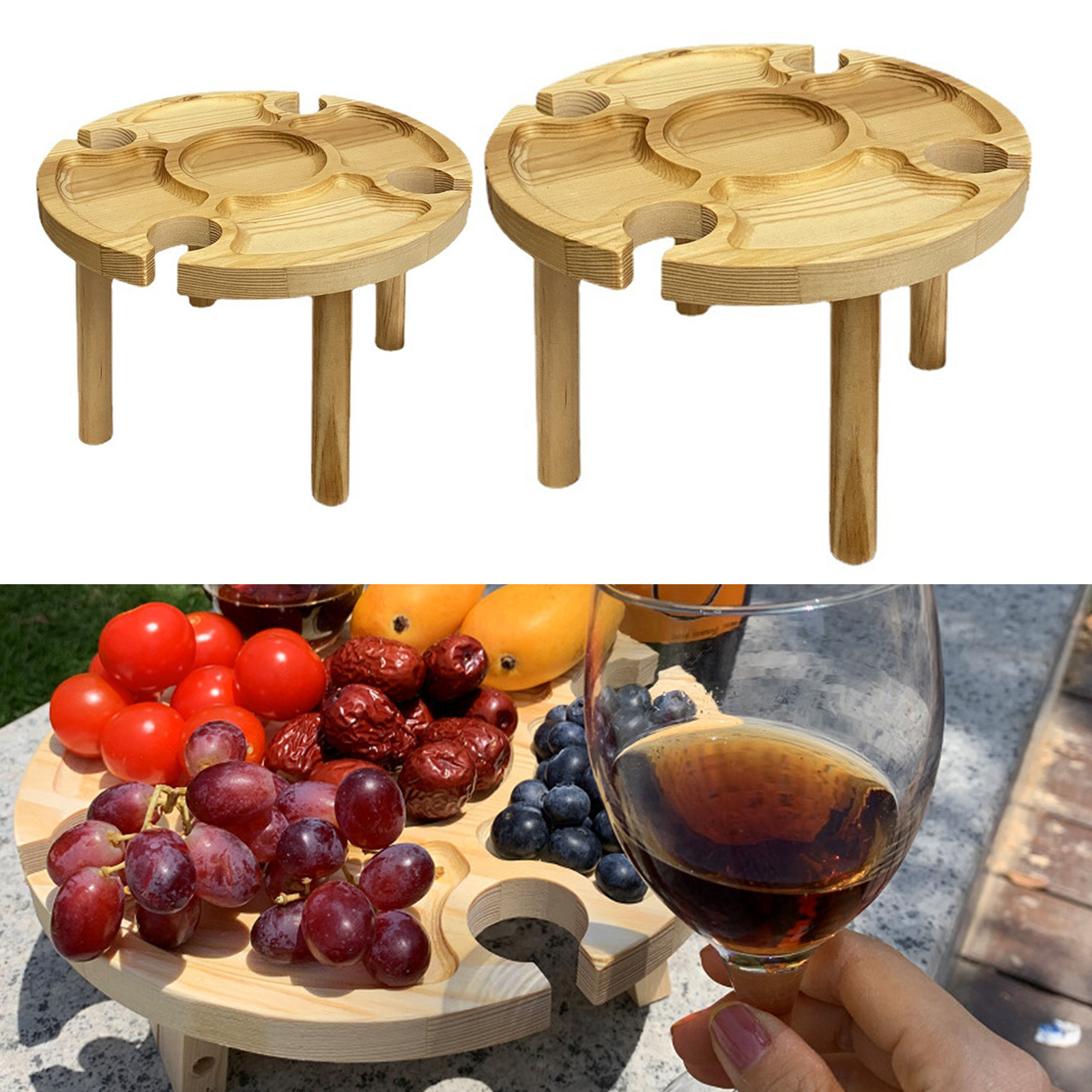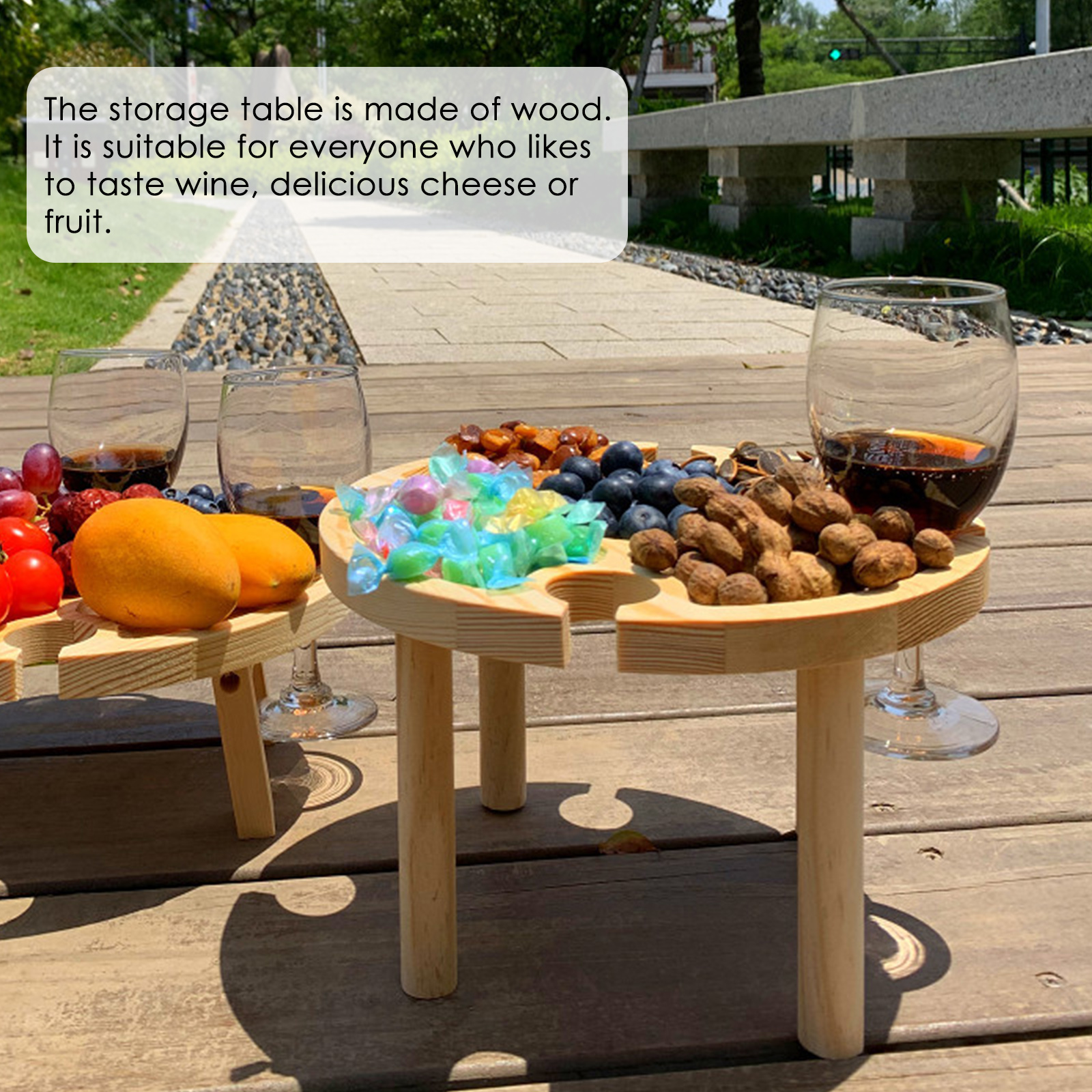 The storage table is made of wood. It is suitable for everyone who likes to taste wine, delicious cheese or fruit.