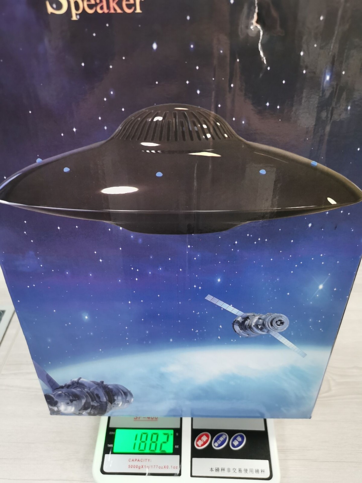 Колонка в виде НЛО Размер: около 46*136 мм(При ручном измерении возможна погрешность в 3-5 см, пожалуйста, простите меня)