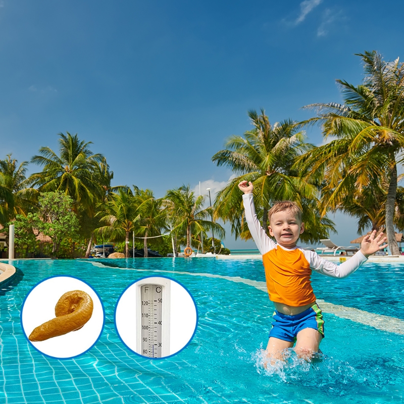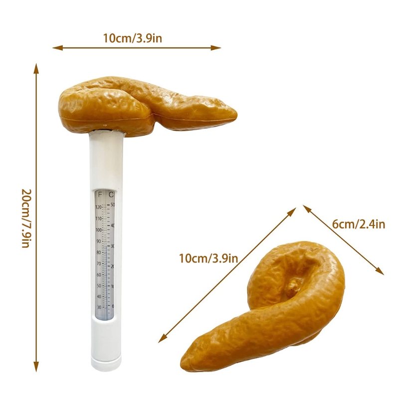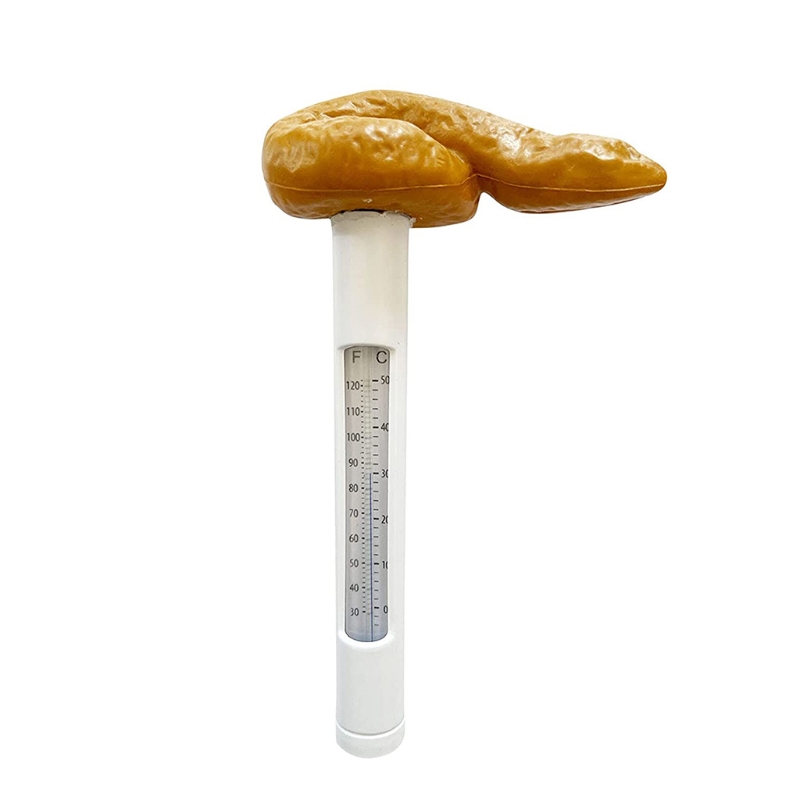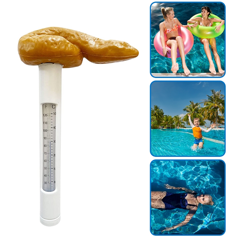 Забавный термометр для бассейна: читает как по Фаренгейту, так и по Цельсию. На первый взгляд выглядит как плавающий попой, это очень забавно.