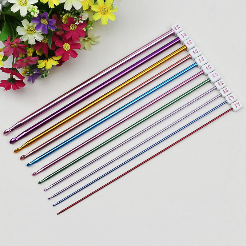 11 шт./компл. крючки для вязания крючком набор игл разных цветов Tunisian Afghan алюминиевые вязальные инструменты для игл комплект Прямая поставкаОсобенности: