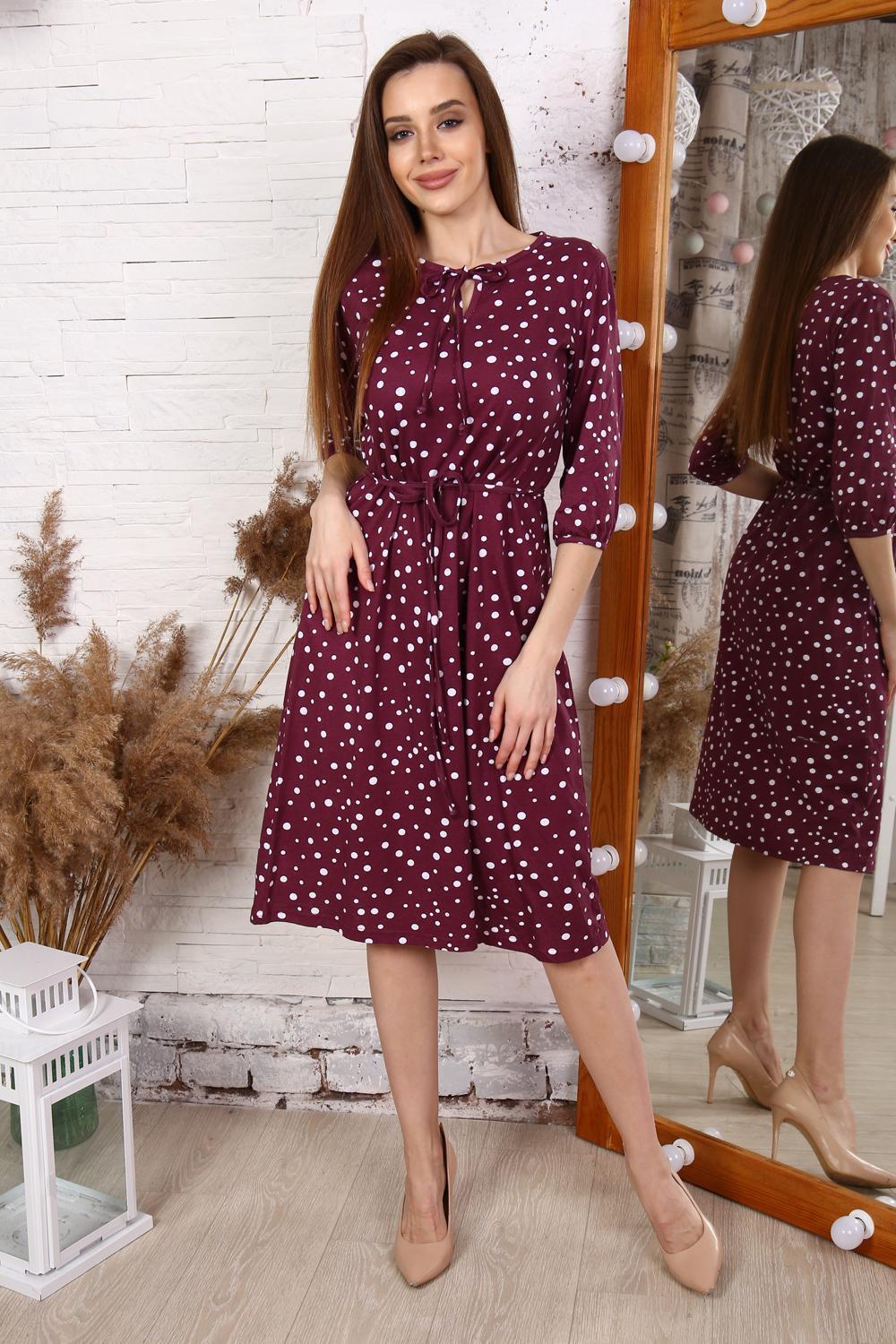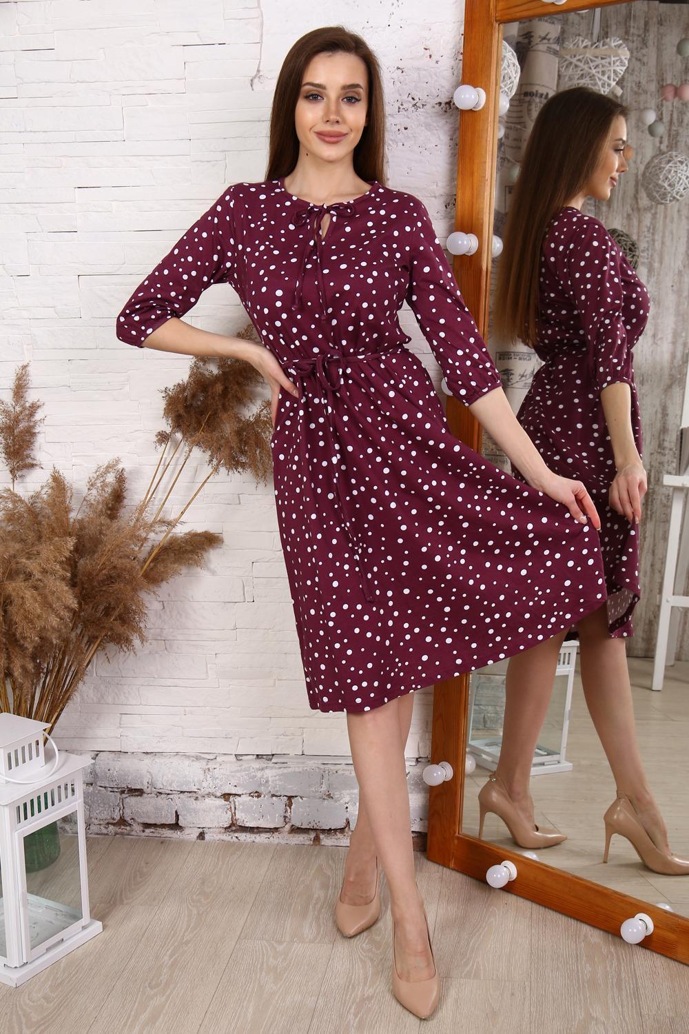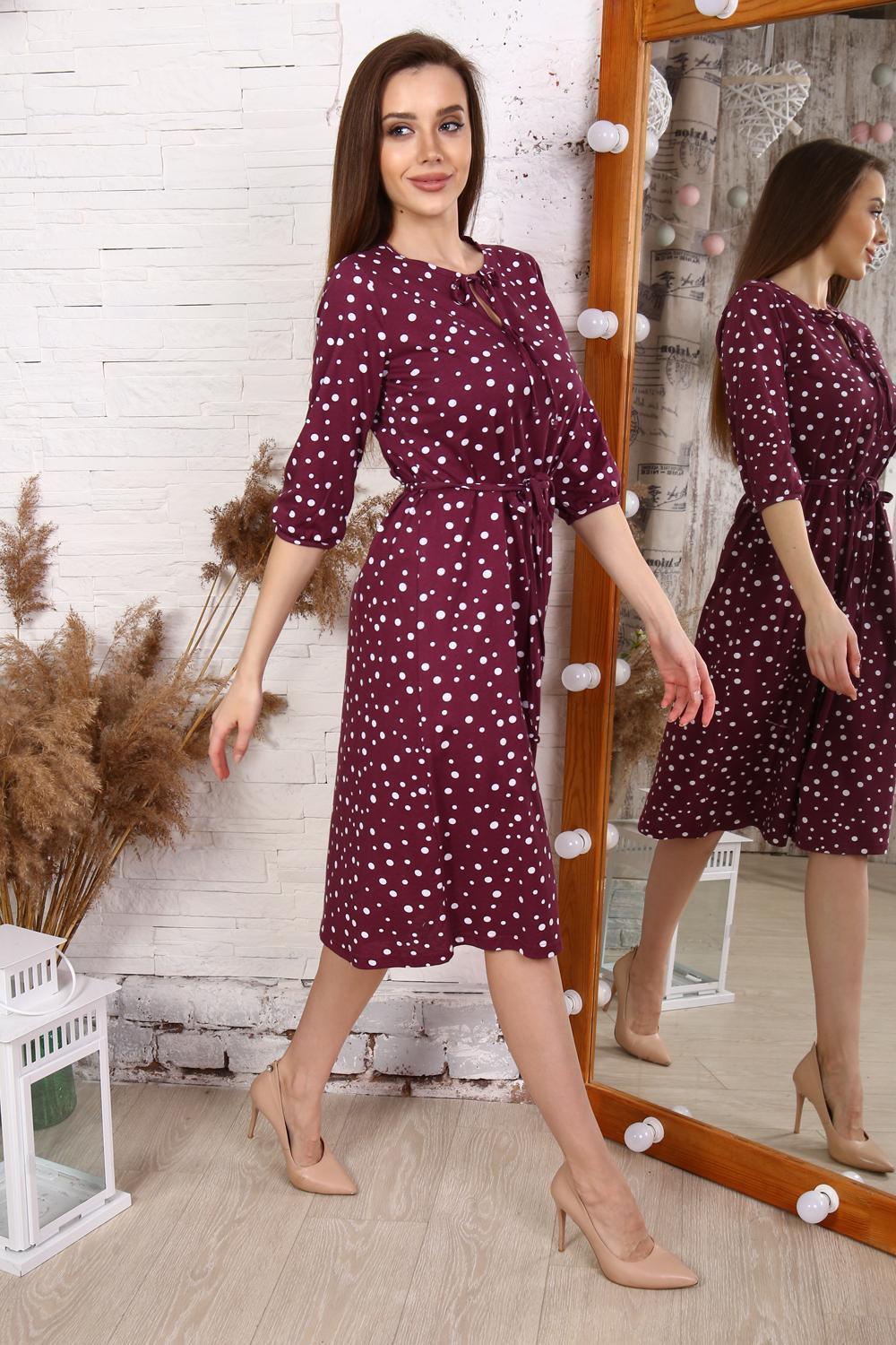 Платье свободного силуэта, с поясом и завязкой по горловине. Рукав 3/4, длина ниже колена.Характеристики