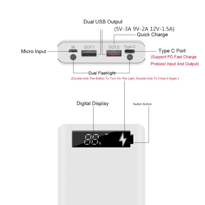 Порт типа C поддерживает быструю зарядку порта PD и поддерживает вход и выход порта.