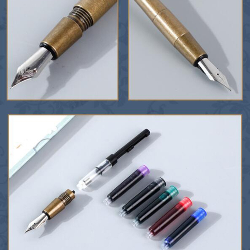 3. Ценовая посылка. С 5 различными цветами Сменные чернила sacs для удовлетворения ваших различных потребностей письма. Идеально подходит для написания слов в готическом стиле, пригласительных открыток, букв и т. д. Стержень ручки и держатель ручки изготовлены из качественного металла и вырезаны с изысканными украшенными рельефными узорами, прочные и многоразовые.