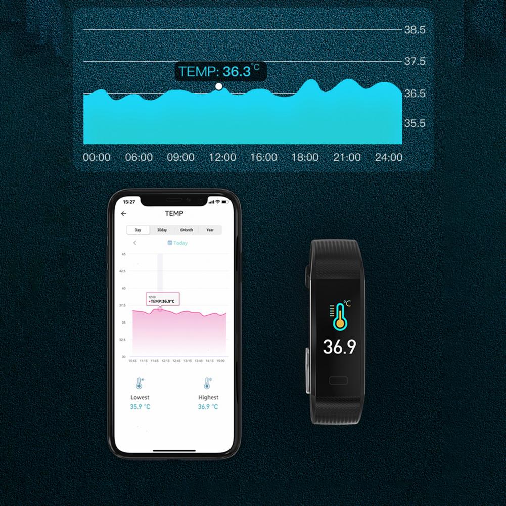 Мониторинг здоровья: мониторинга сна от 21: 00 до 11:00 на следующий день, 24-часовое испытание сердечный ритм, мониторинг, температура, измерять кровяное давление, оксиметр обнаружения.