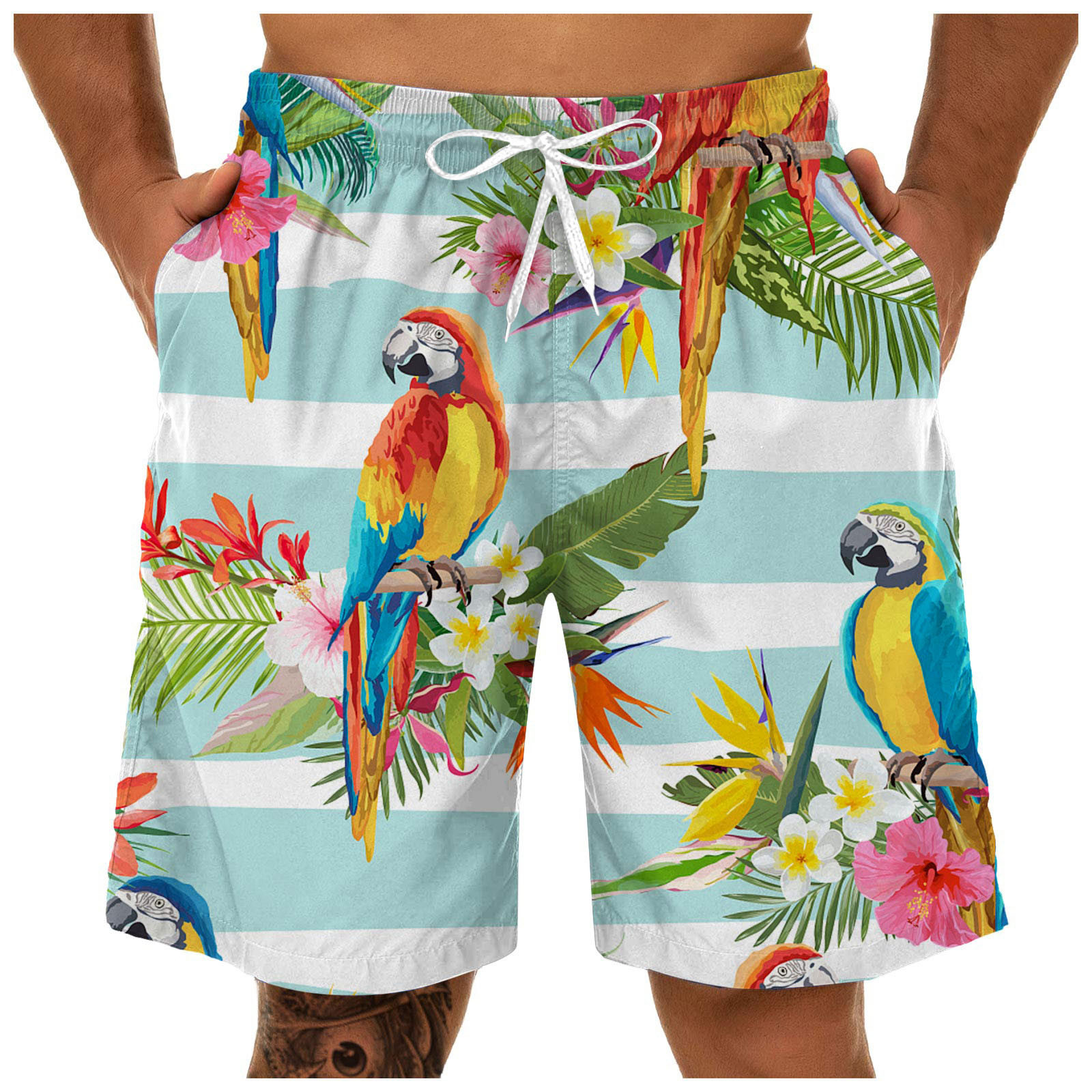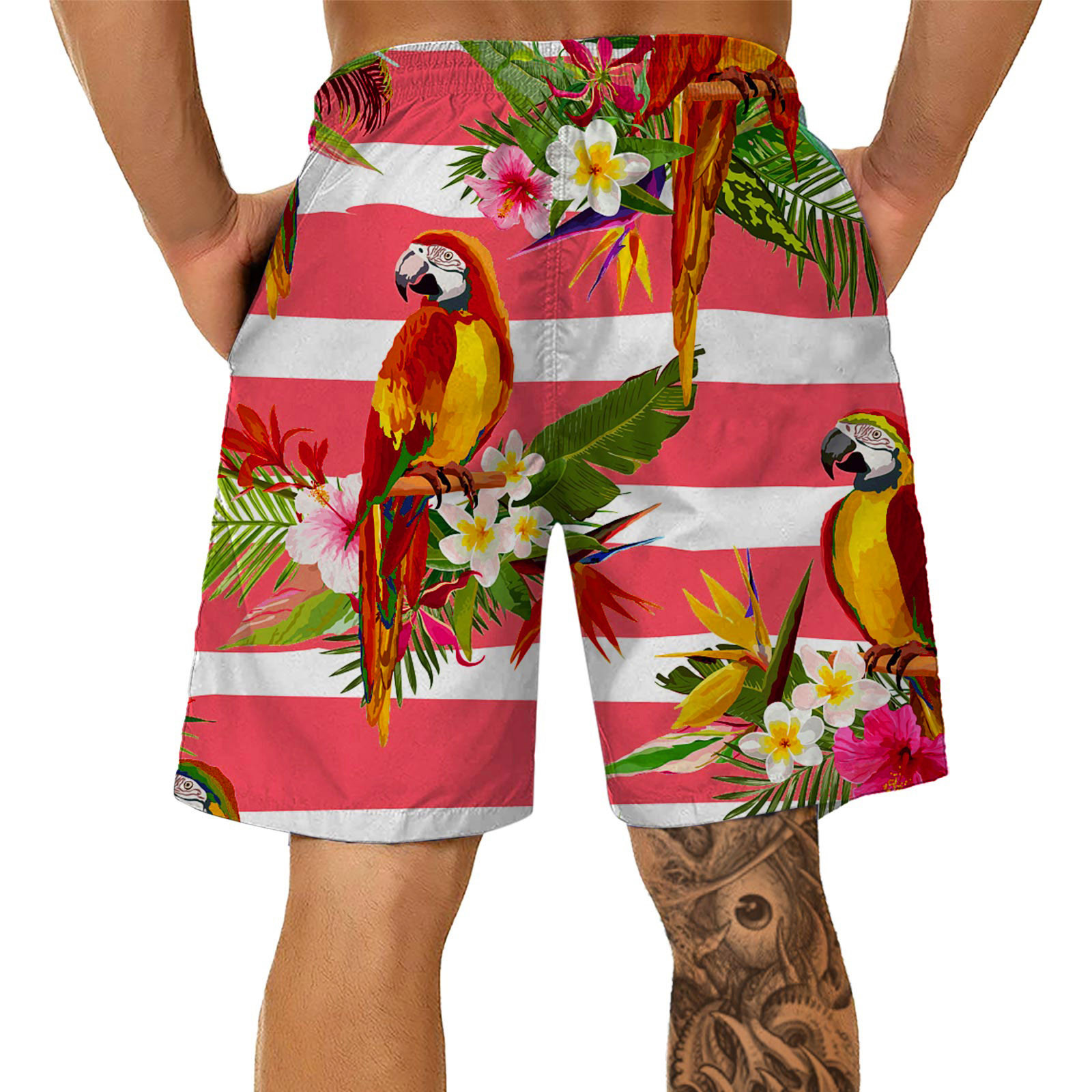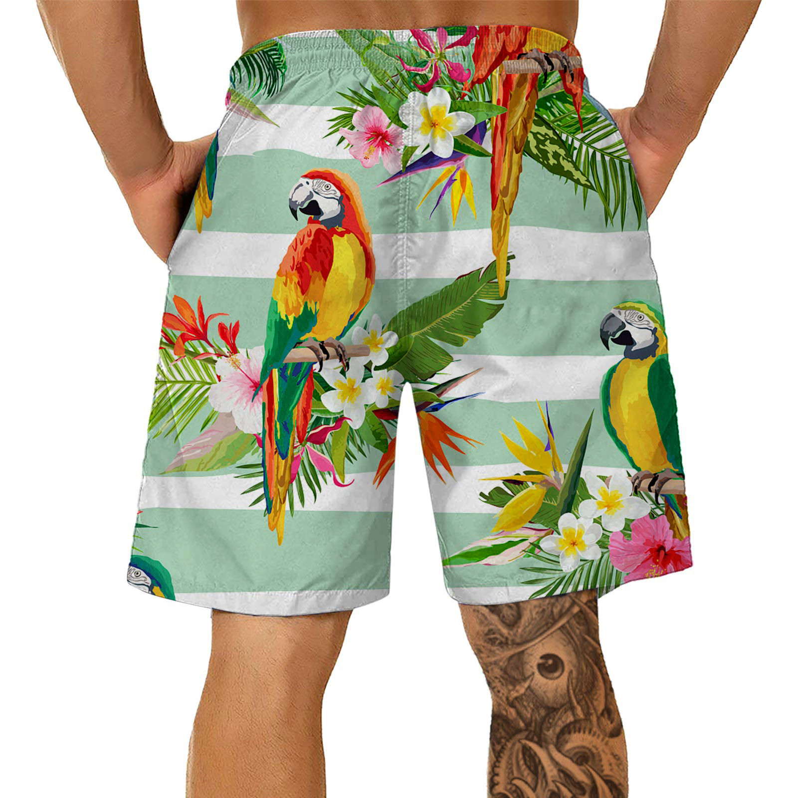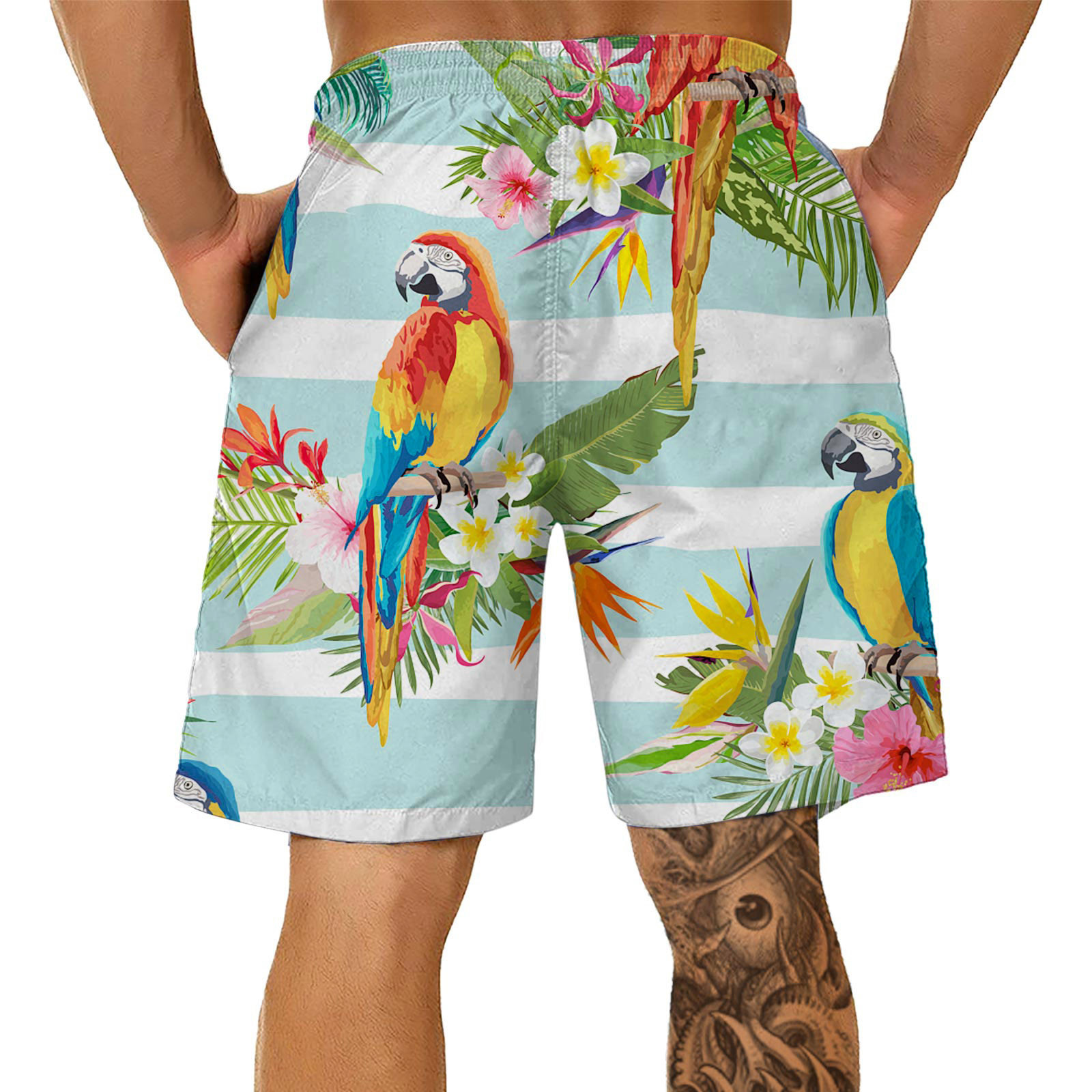 Мужские летние спортивные шорты с объемным принтом в виде попугаев и цветов