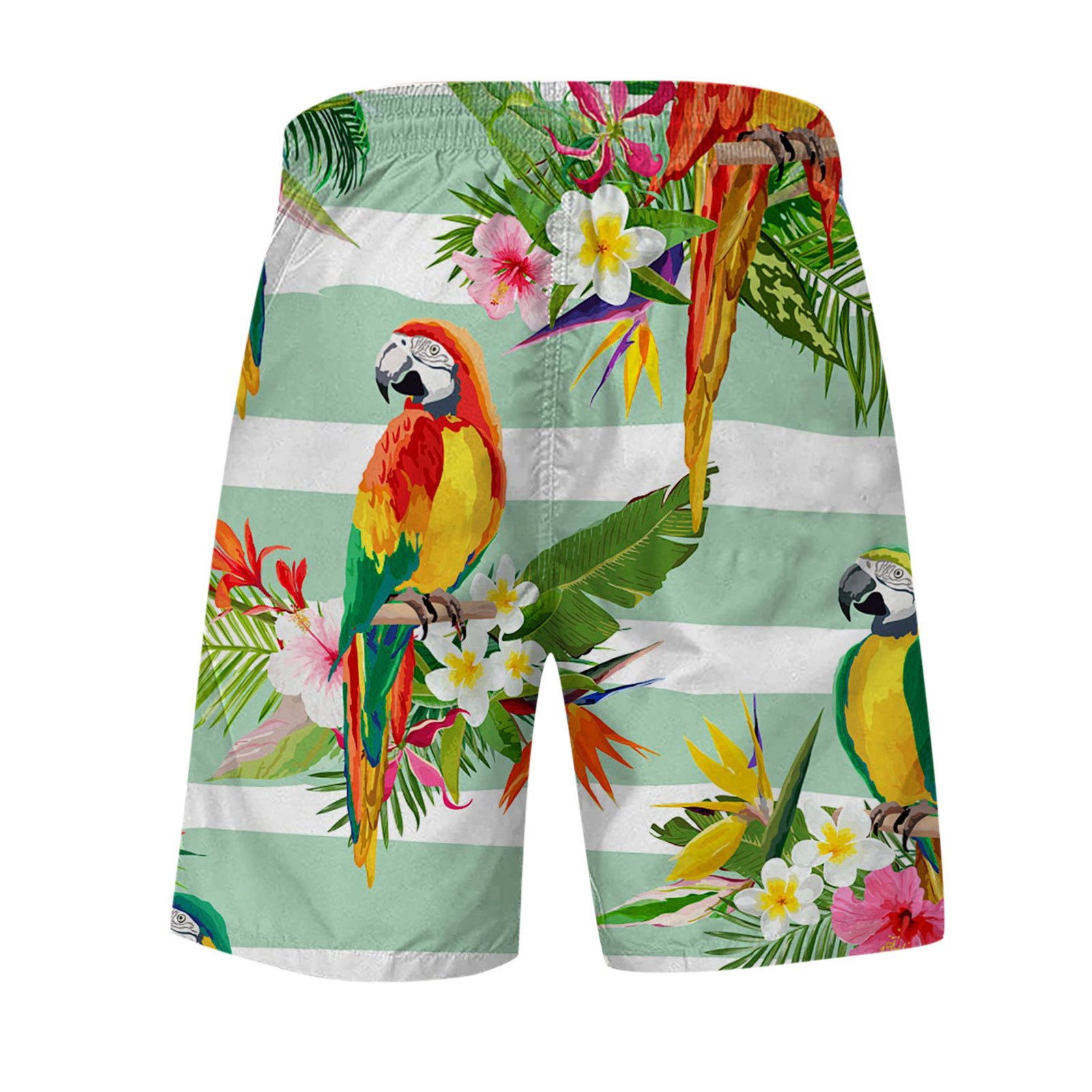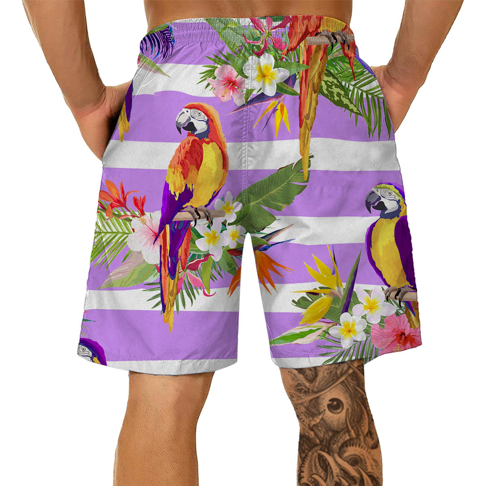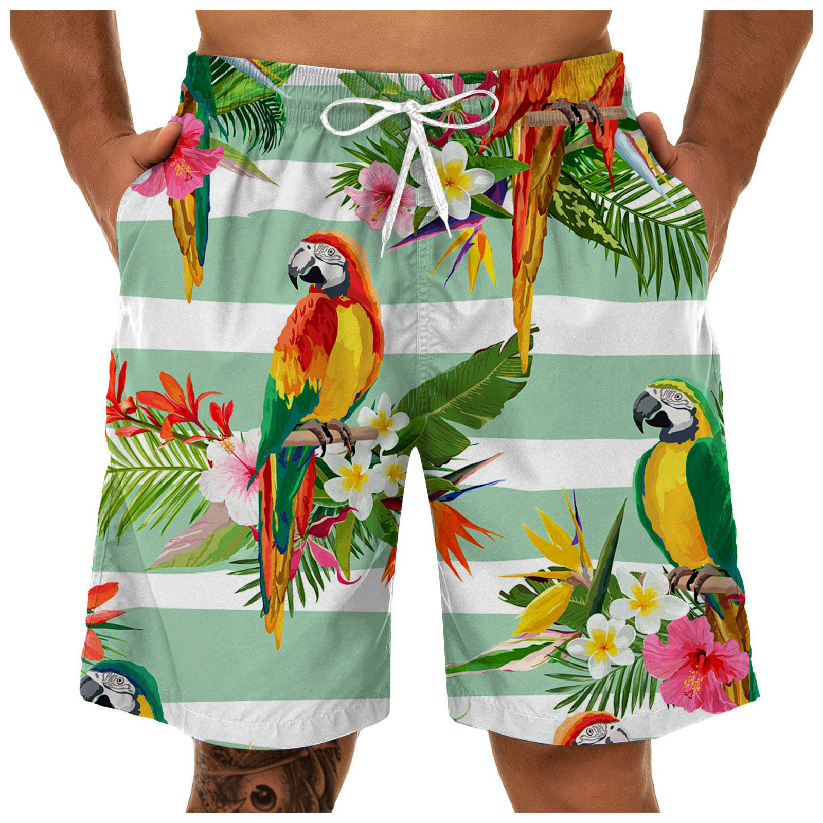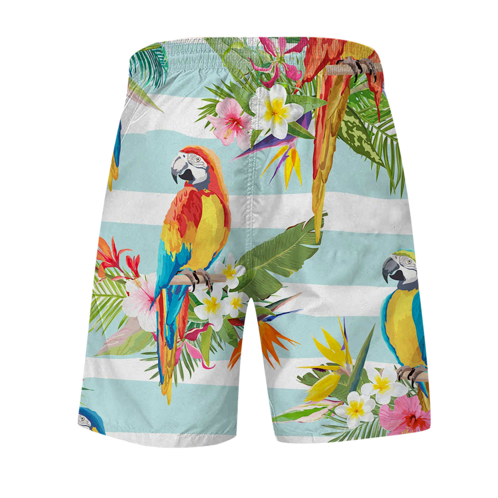 Мужские летние спортивные шорты с объемным принтом в виде попугаев и цветов