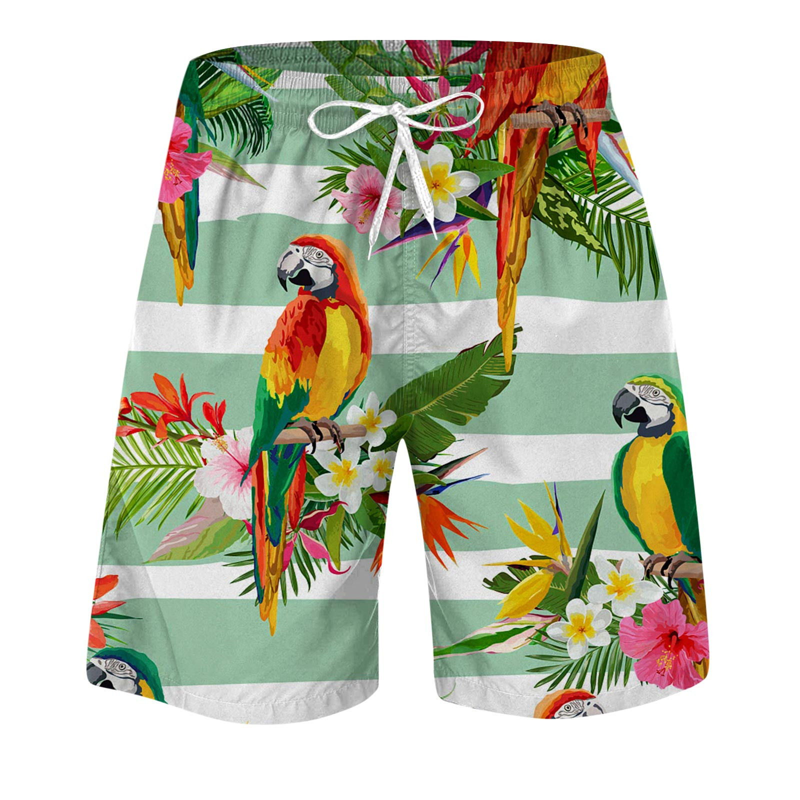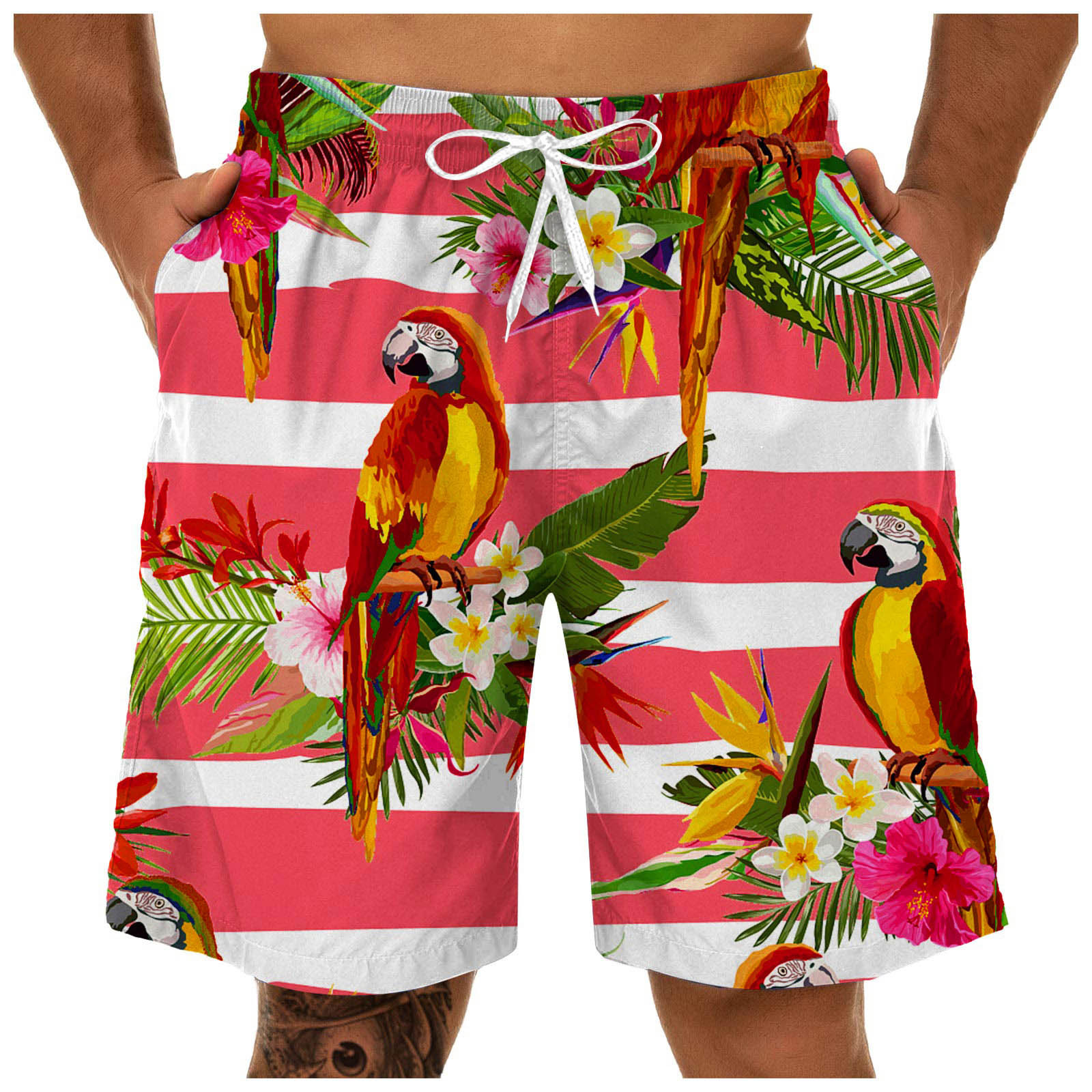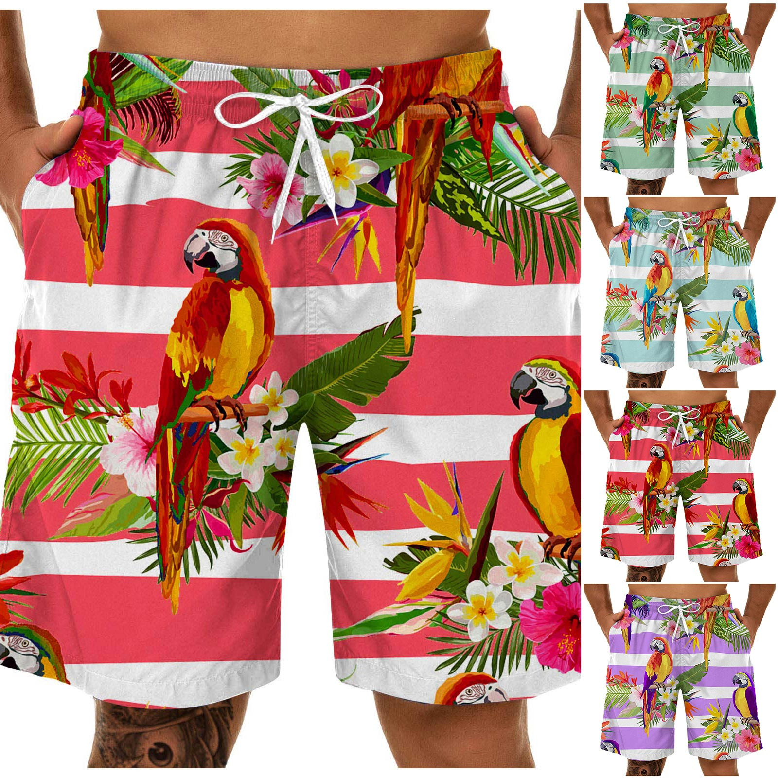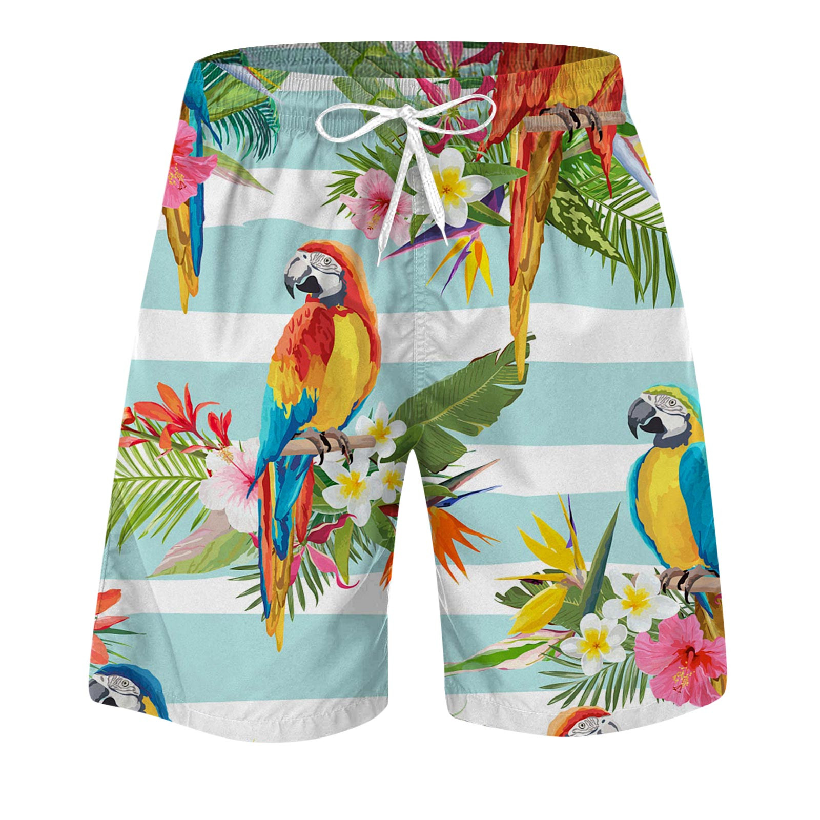 Мужские летние спортивные шорты с объемным принтом в виде попугаев и цветов