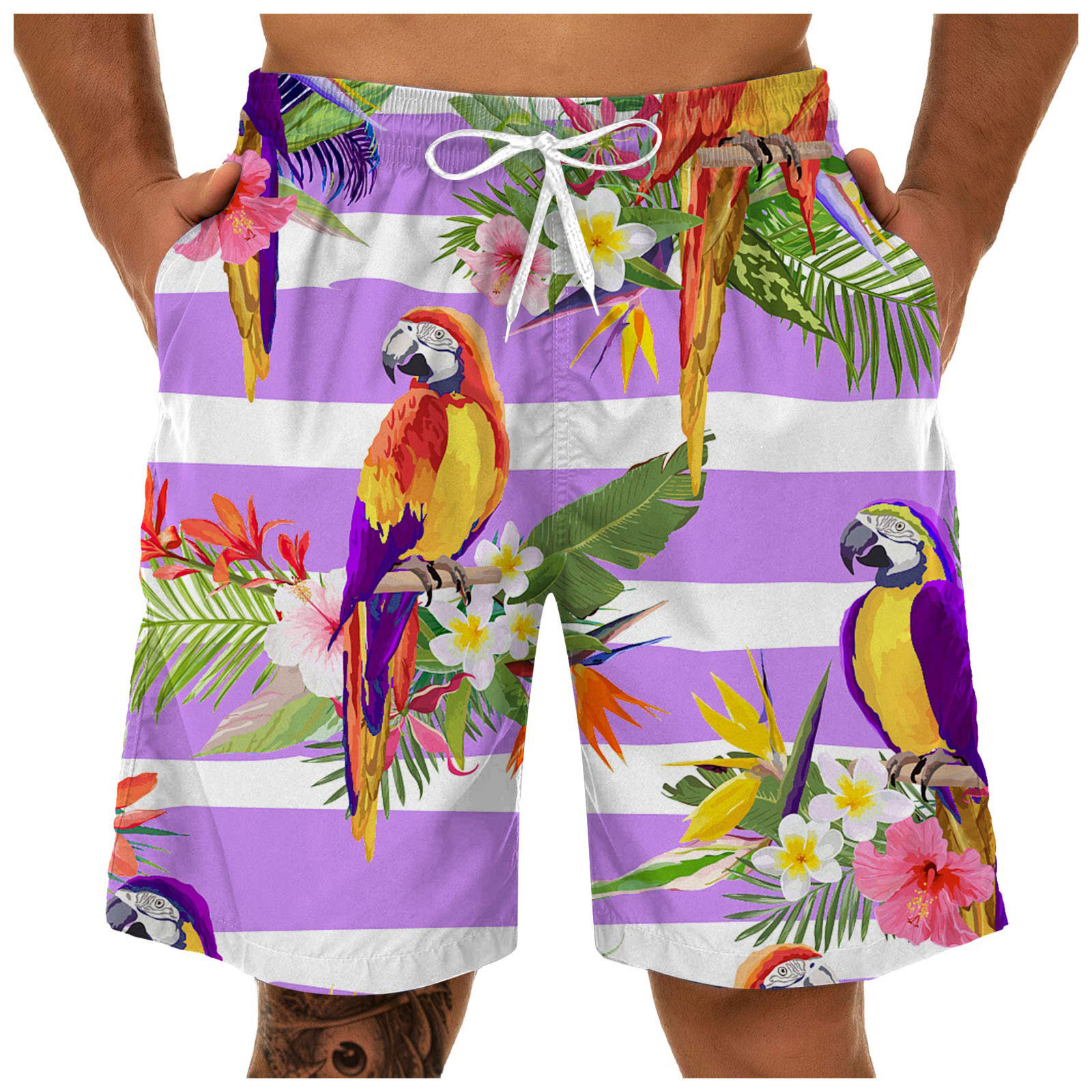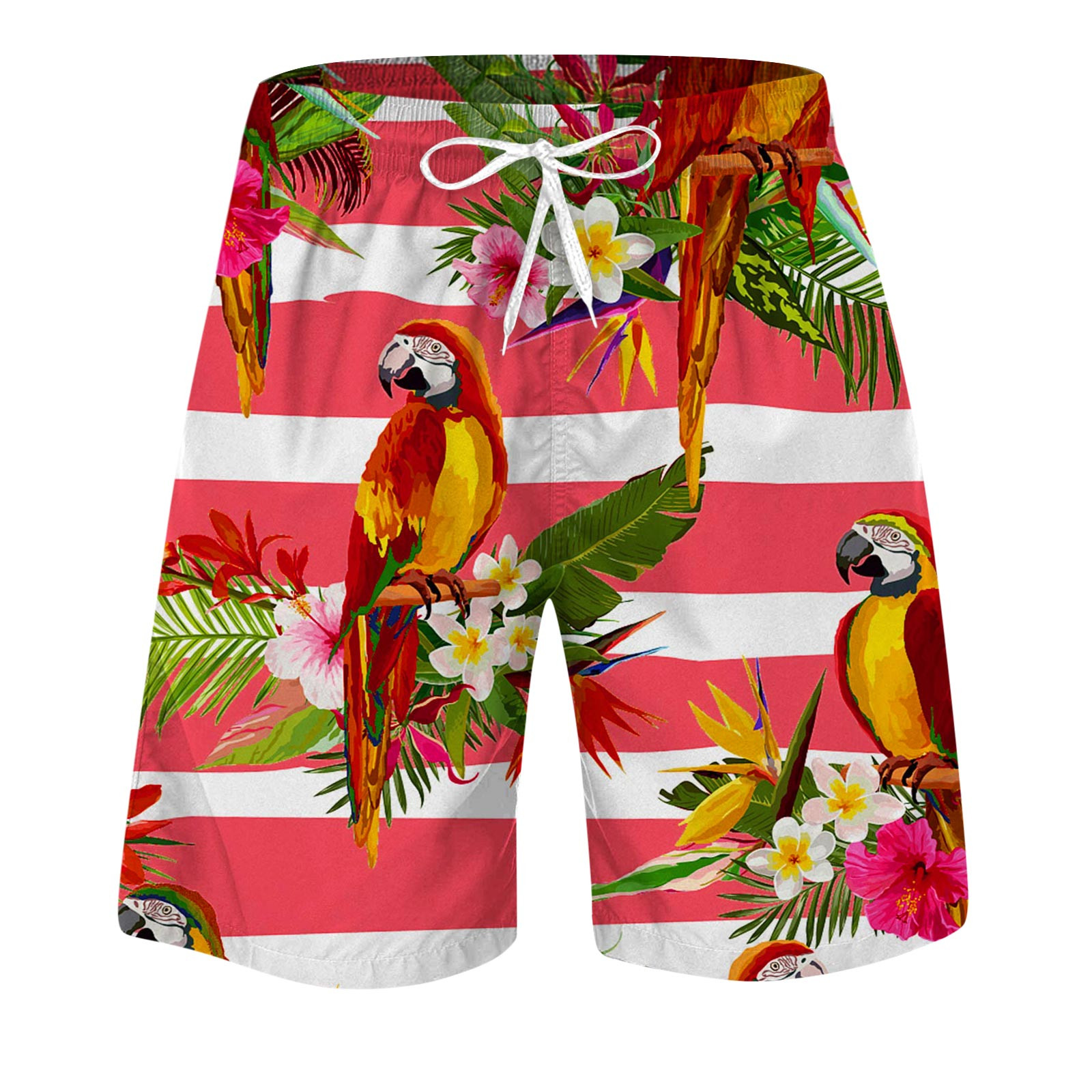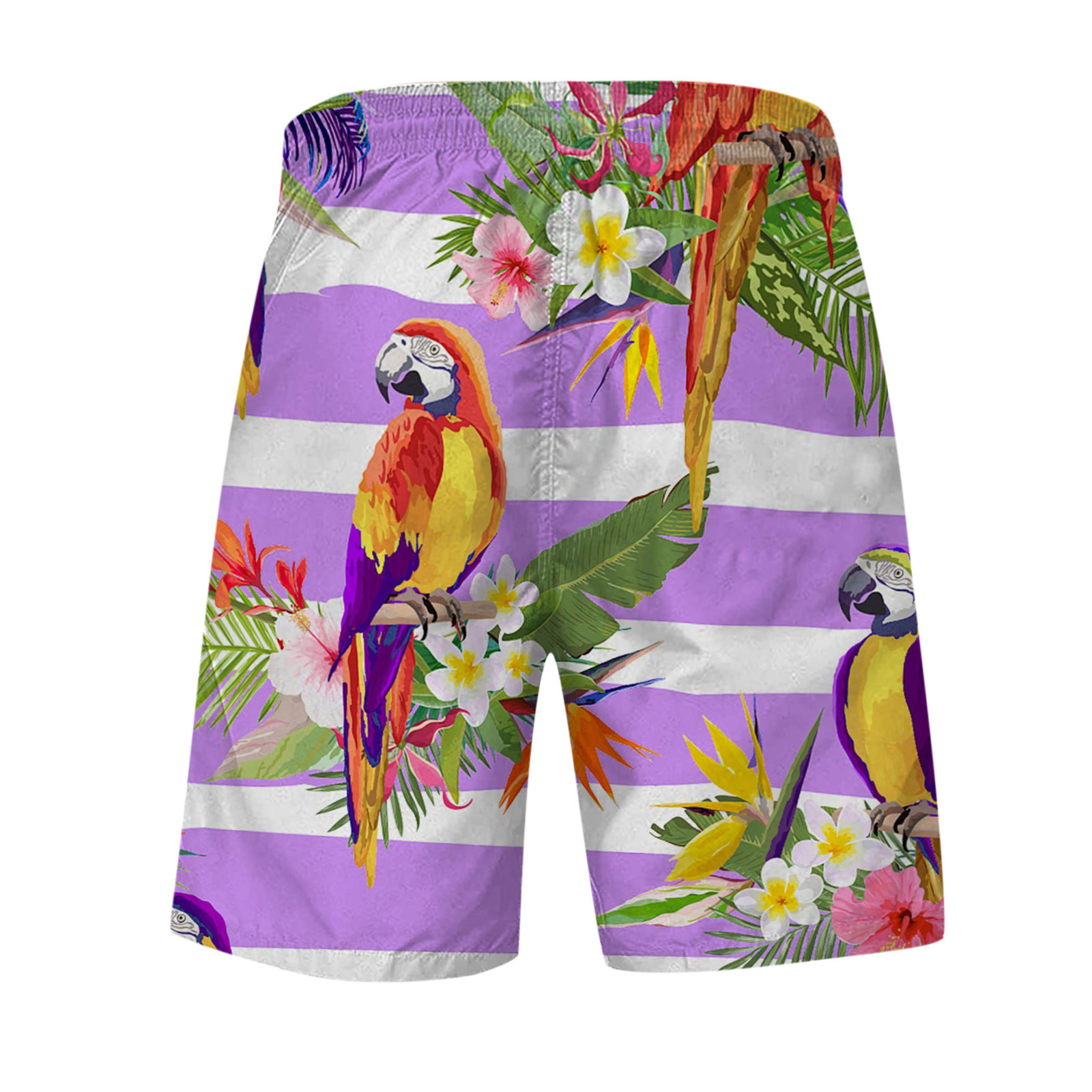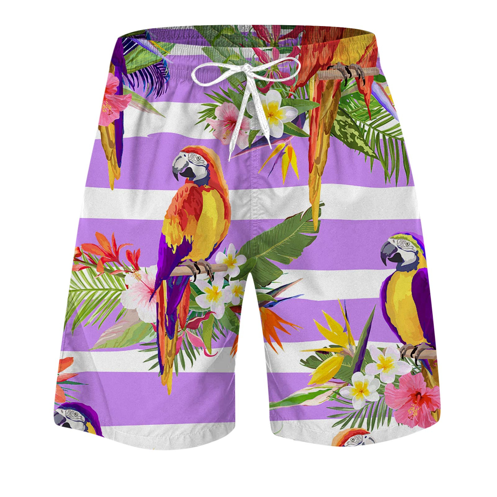 Мужские летние спортивные шорты с объемным принтом в виде попугаев и цветов