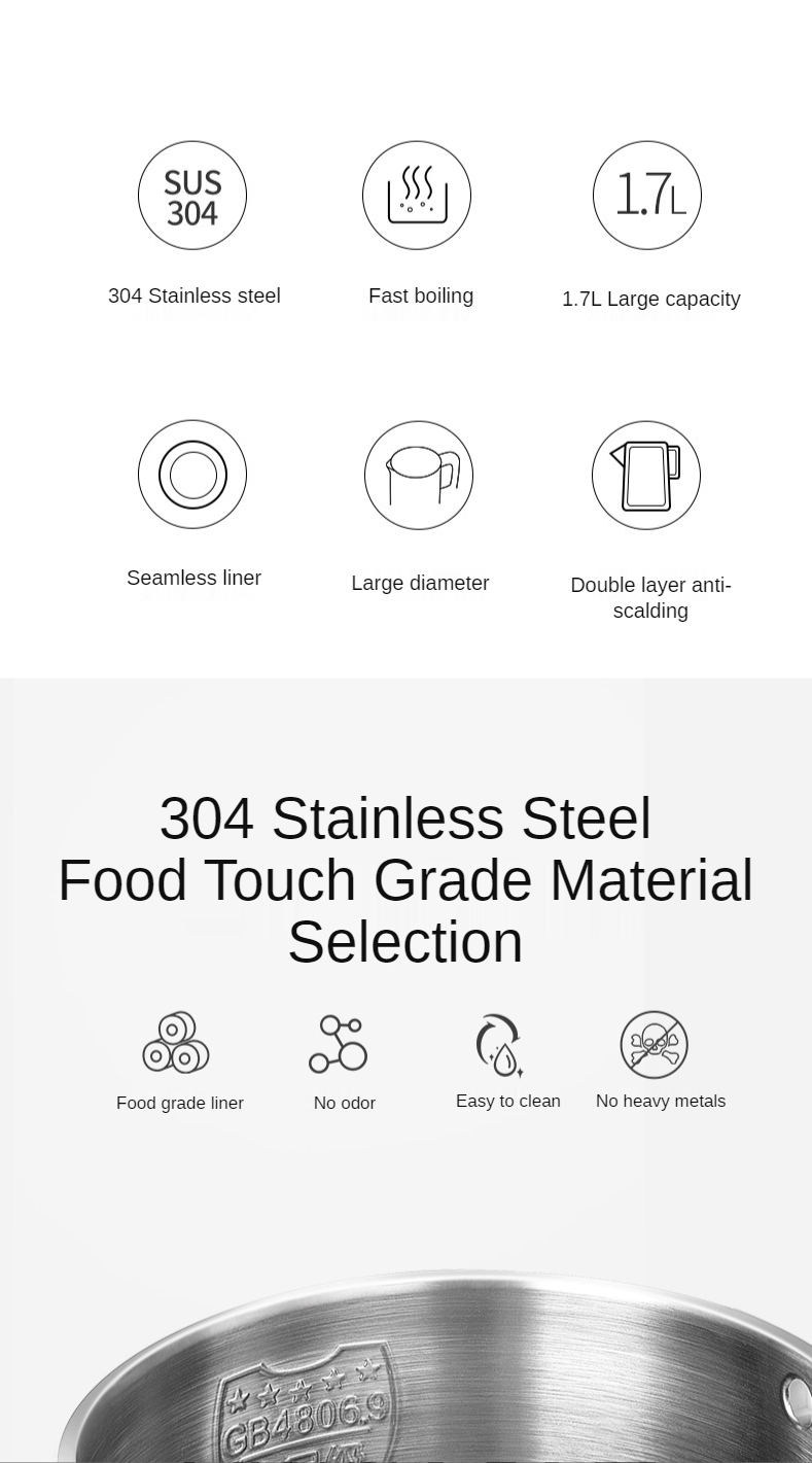 Визуальная нагревательная лампа: Красный Светильник обеспечивает нагрев, может четко видеть состояние кипящей воды