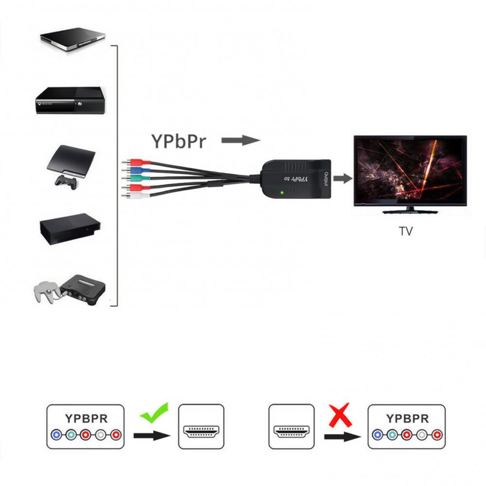 1080P 5 RCA компонент к HDMI HDTV Аудио Видео выход конвертер адаптер для видеомагнитофона