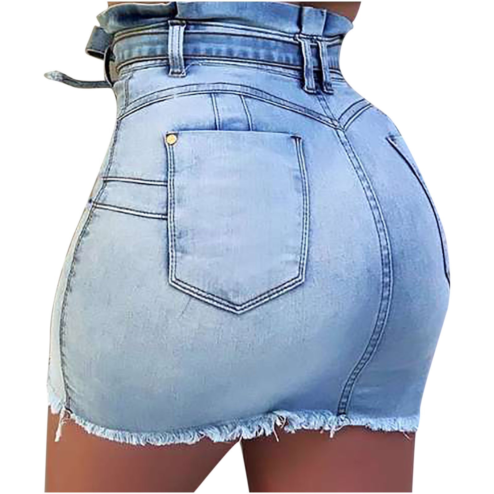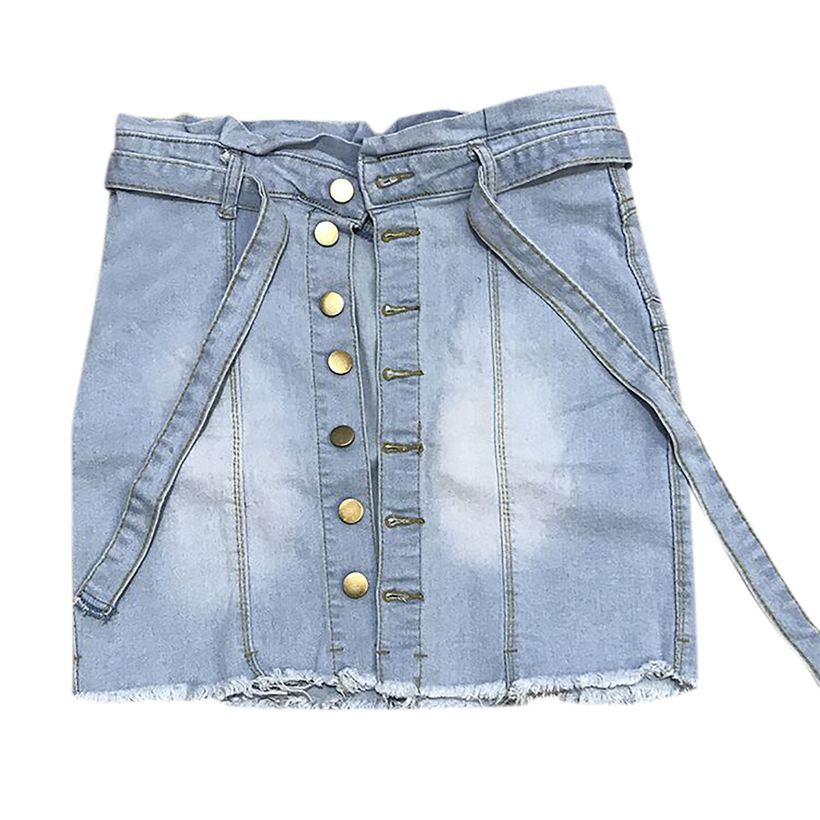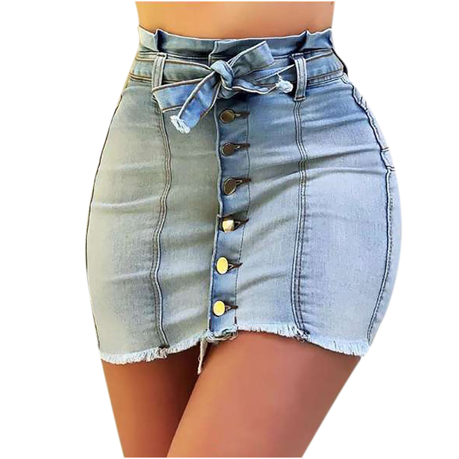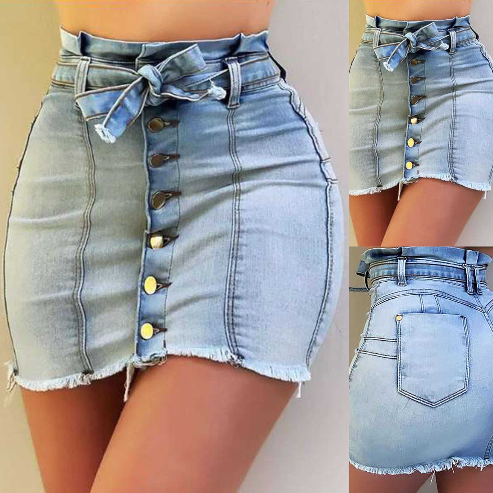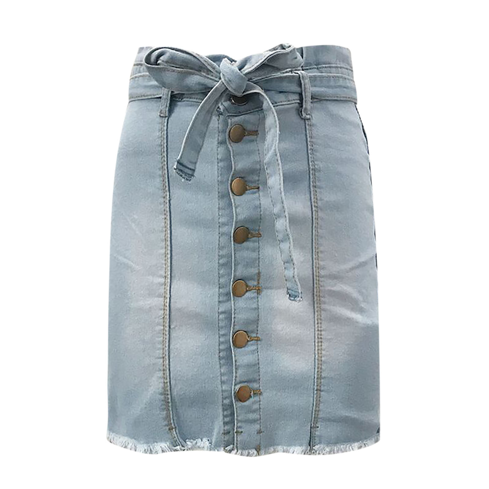 Женская эластичная однобортная джинсовая юбка на шнуровке с высокой талией