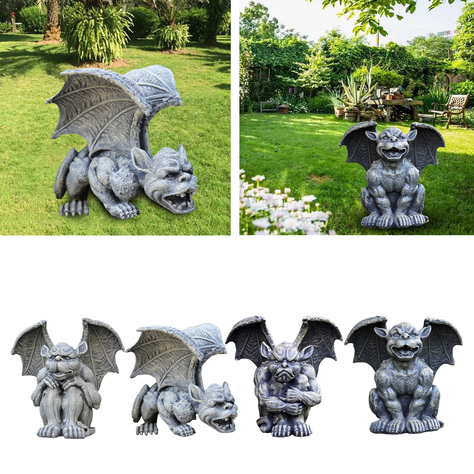 -Украшение гаргойла для сада не только выделяет ваш сад, но и добавляет удовольствия вашей террасе, саду или двору. Вам не придется беспокоиться о его повреждении, он может выдерживать солнечные дни, дождливые ночи и маленькие снежные дни круглый год.