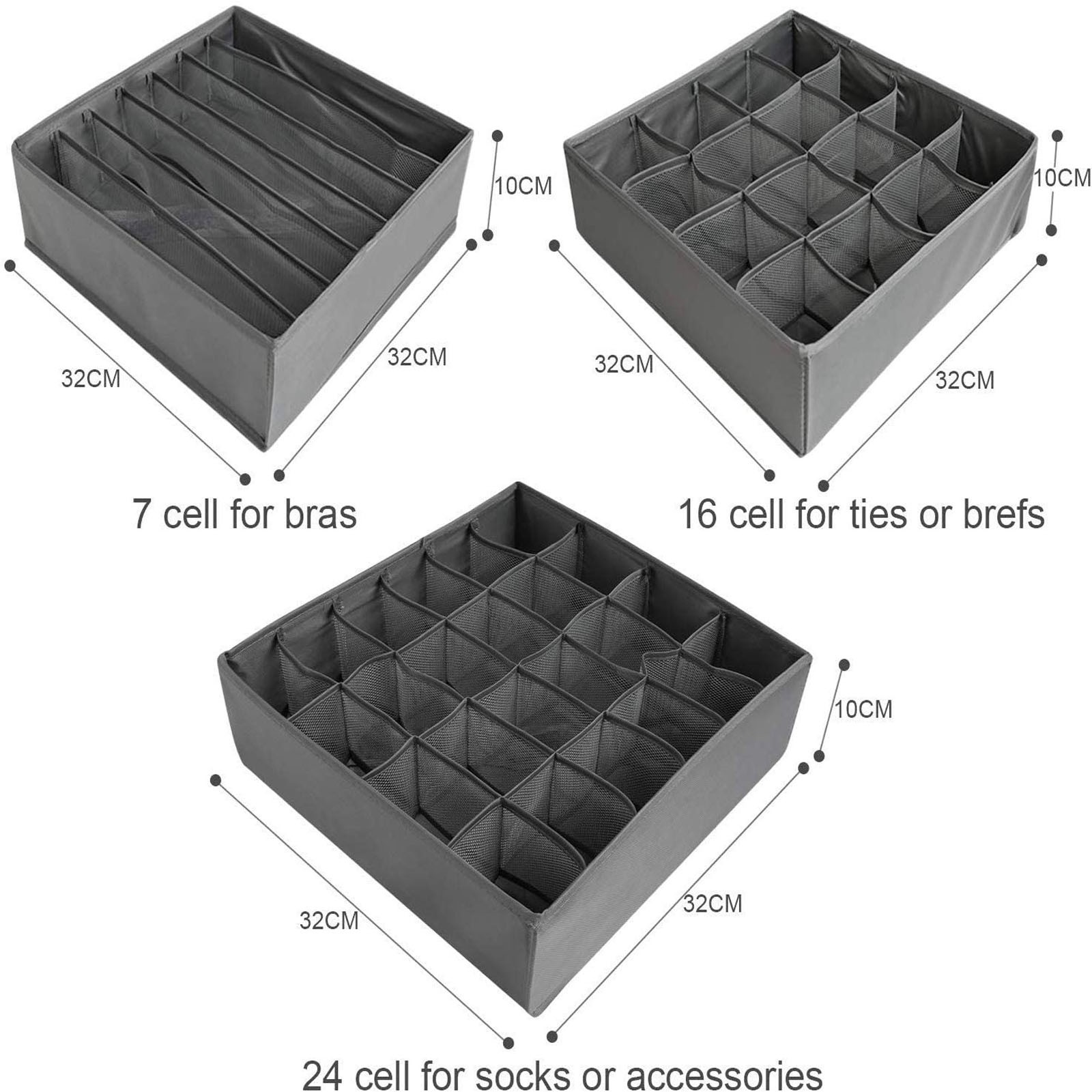 - Различные размеры и гибкость: 3 единицы пространства для хранения отвечает вашим различным потребностям Организации, мы предлагаем 7 ячеек для бюстгальтеров, 16 ячеек для галстуков или брюк, 24 ячейки для носков или других аксессуаров. В реальности вы можете использовать эти коробки для хранения всего, что вам нравится!
