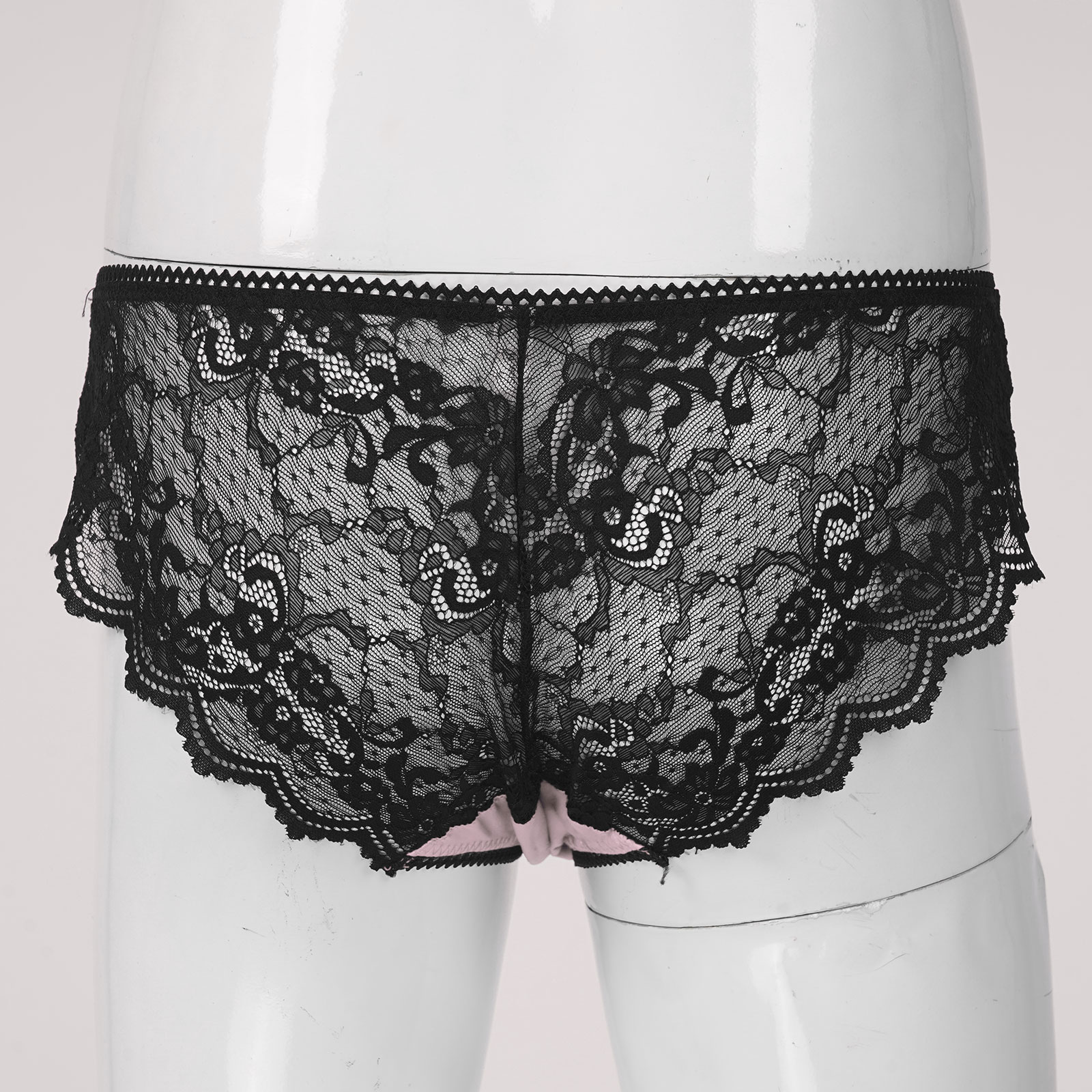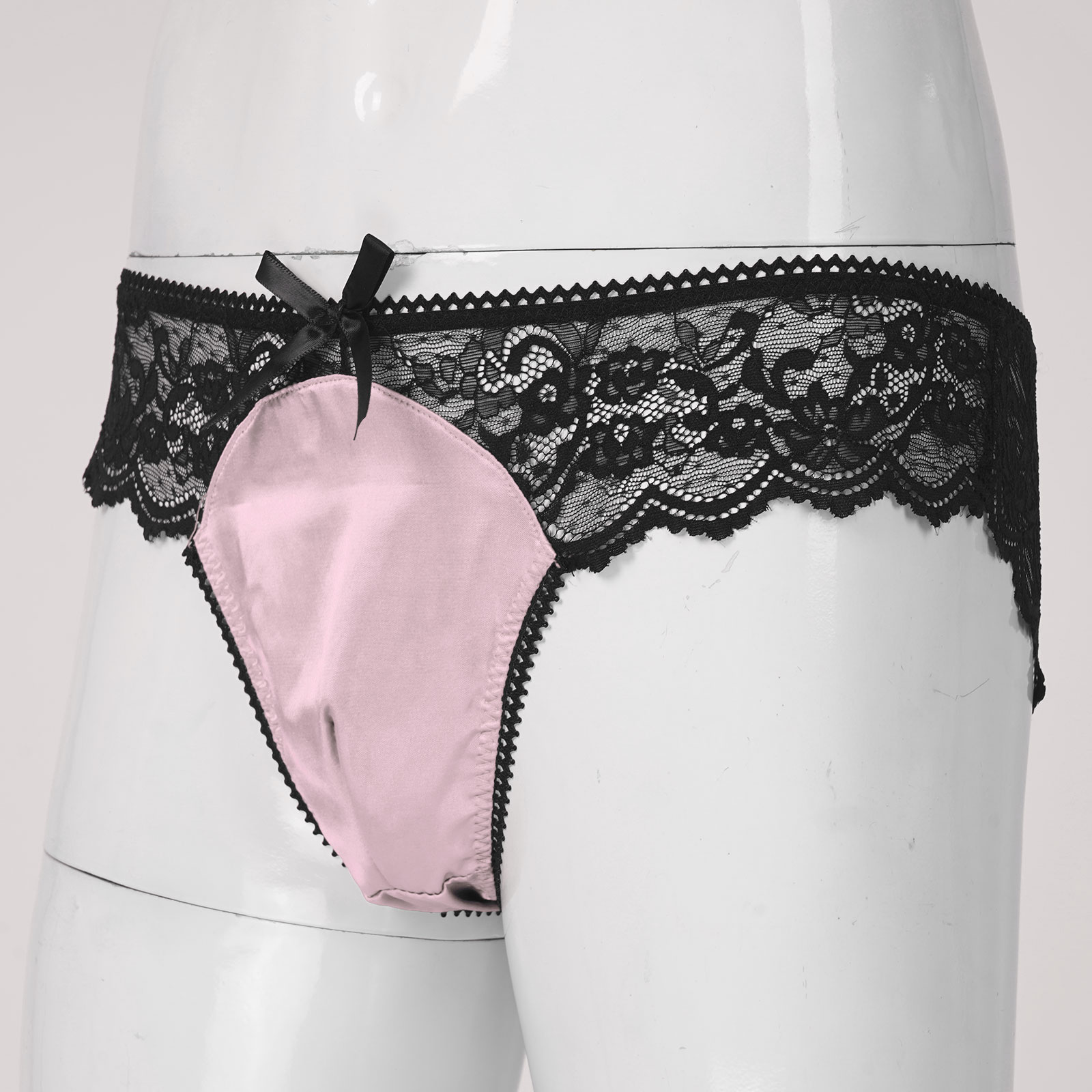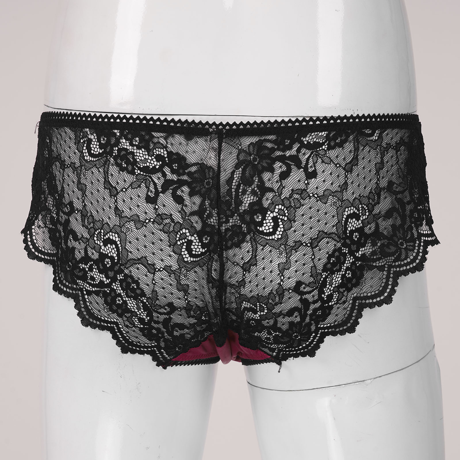Мужские трусики для геев, атласное лоскутное нижнее белье, шелковое ночное белье, прозрачные цветочные кружевные подштанники, трусы с низкой талией
