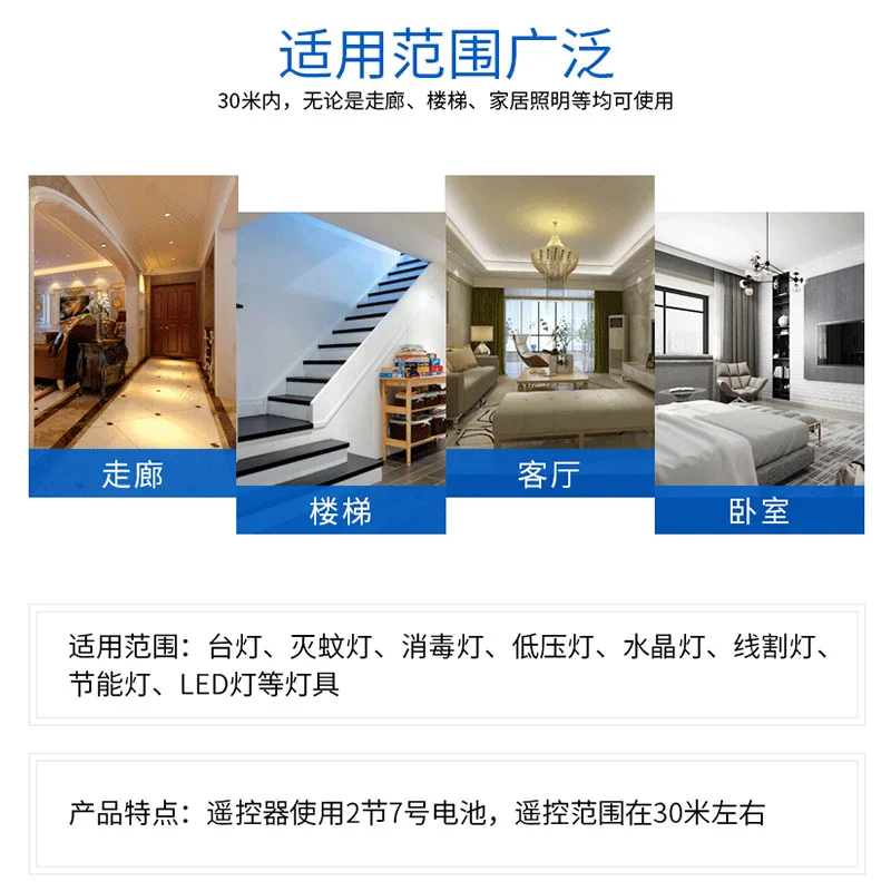 Особенности:Нет необходимости в отладке и сопряжении, вы можете использовать его непосредственно после установки приемника с батареей.Пульт дистанционного управления в руке, может переключать свет без ходьбы.Светильник ночного переключателя управляется одной кнопкой, так что вы больше не включаете светильник в середине ночи.Бесплатный контроль в пределах 30 метров от приемника, один ручной домашний переключатель, бесплатный контроль.Параметры продуктаМодель: JL-C06Пульт дистанционного управления: 2 секции AAA батареиРабочая температура: 0-85 ℃Продукт Размеры: 7,6 см × 4,5 см × 2,5 см (приемник) 11,2 см × 4,4 см × 1,2 см (функция удалённого управления Управление)Расстояние дистанционного управления: около 30 метров (открытый и доступный)Вес одного комплекта: 0,075 кг без внешнего Упаковочного КонтейнераОбласть применения: коридор, лестница, домашнее освещение и т. Д.Нагрузка на цепь: светодиодный светильник ≤ 250 Вт энергосберегающие лампы ≤ 200 Вт лампы накаливания ≤ 800 ВтВход/выход: AC 180V-240V 50HZ-60HZ