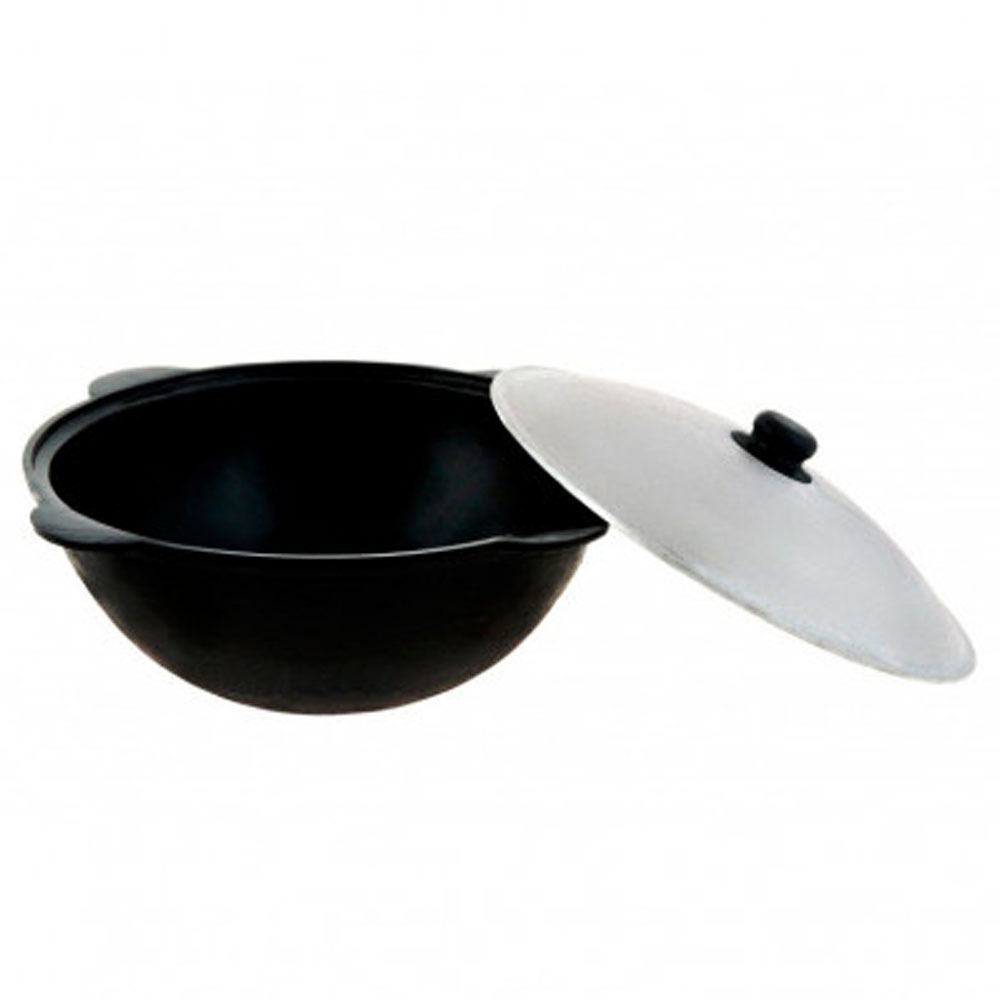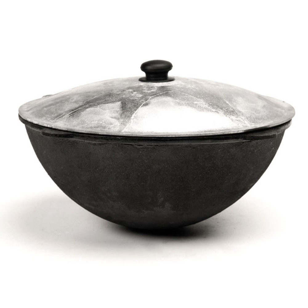 Узбекский чугунный казан 16 литров с круглым дном алюминиевой крышкой в комплекте.