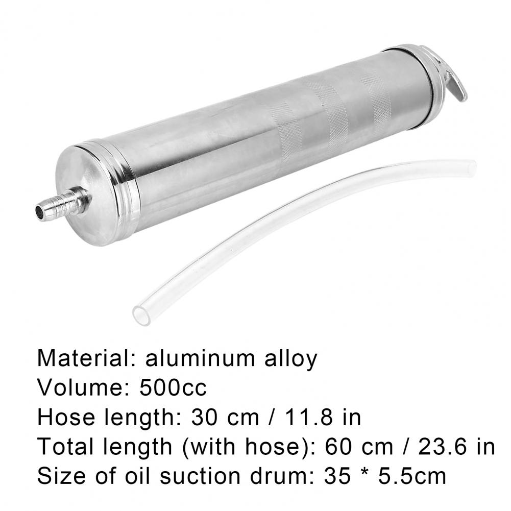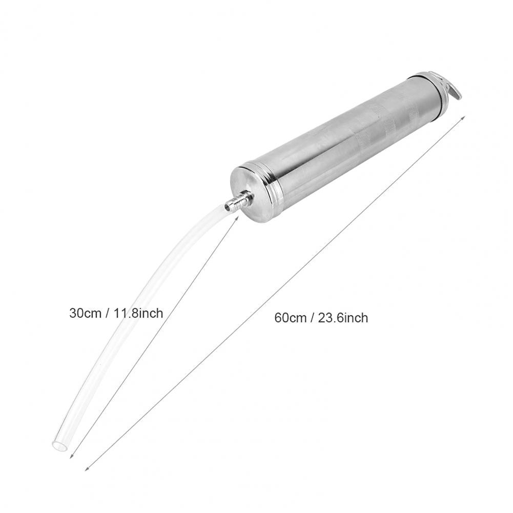 Общая длина составляет около 60 см, длина шланга составляет около 30 см, а длина всасывания масла цилиндр составляет около 35 см, Ширина-около 5,5 см.
