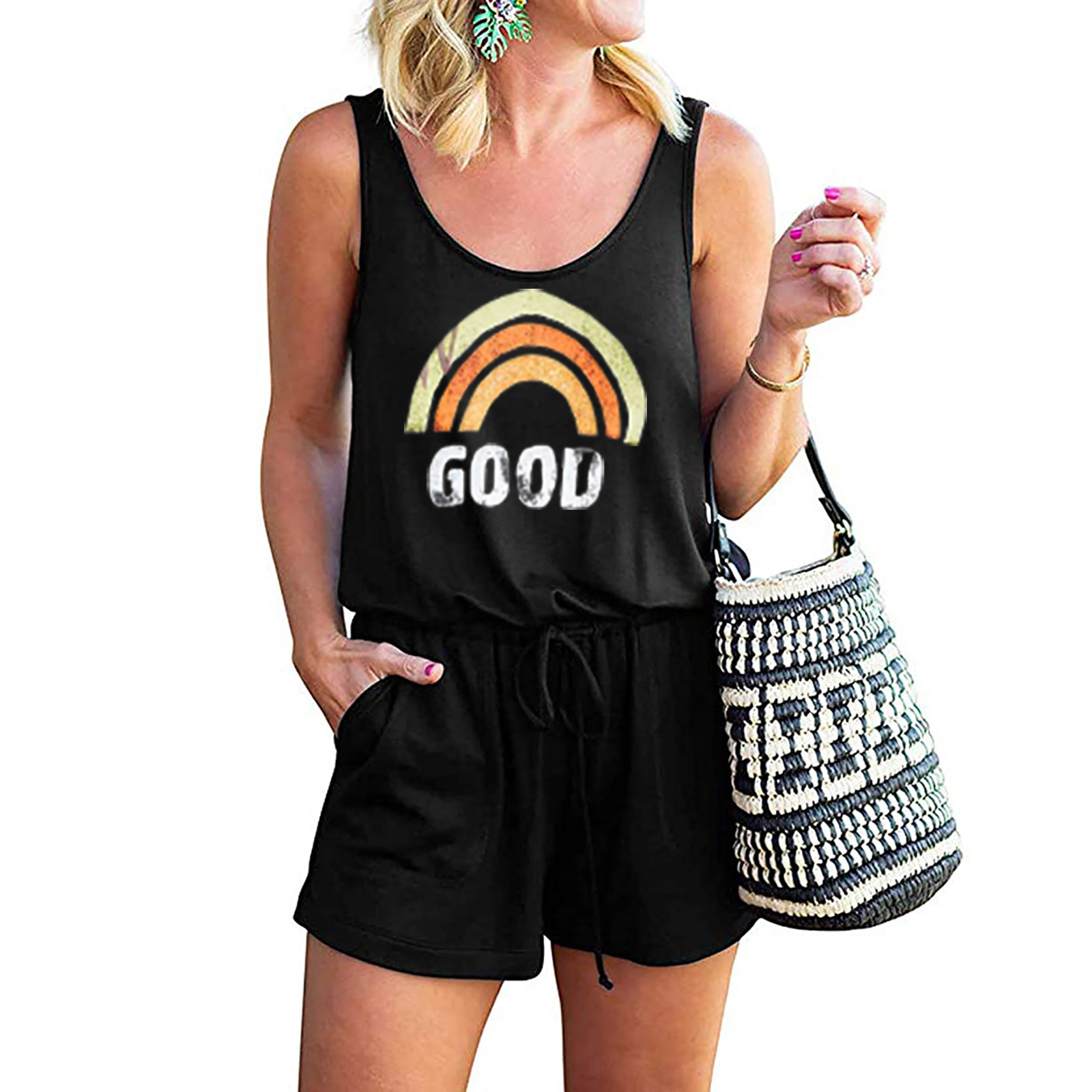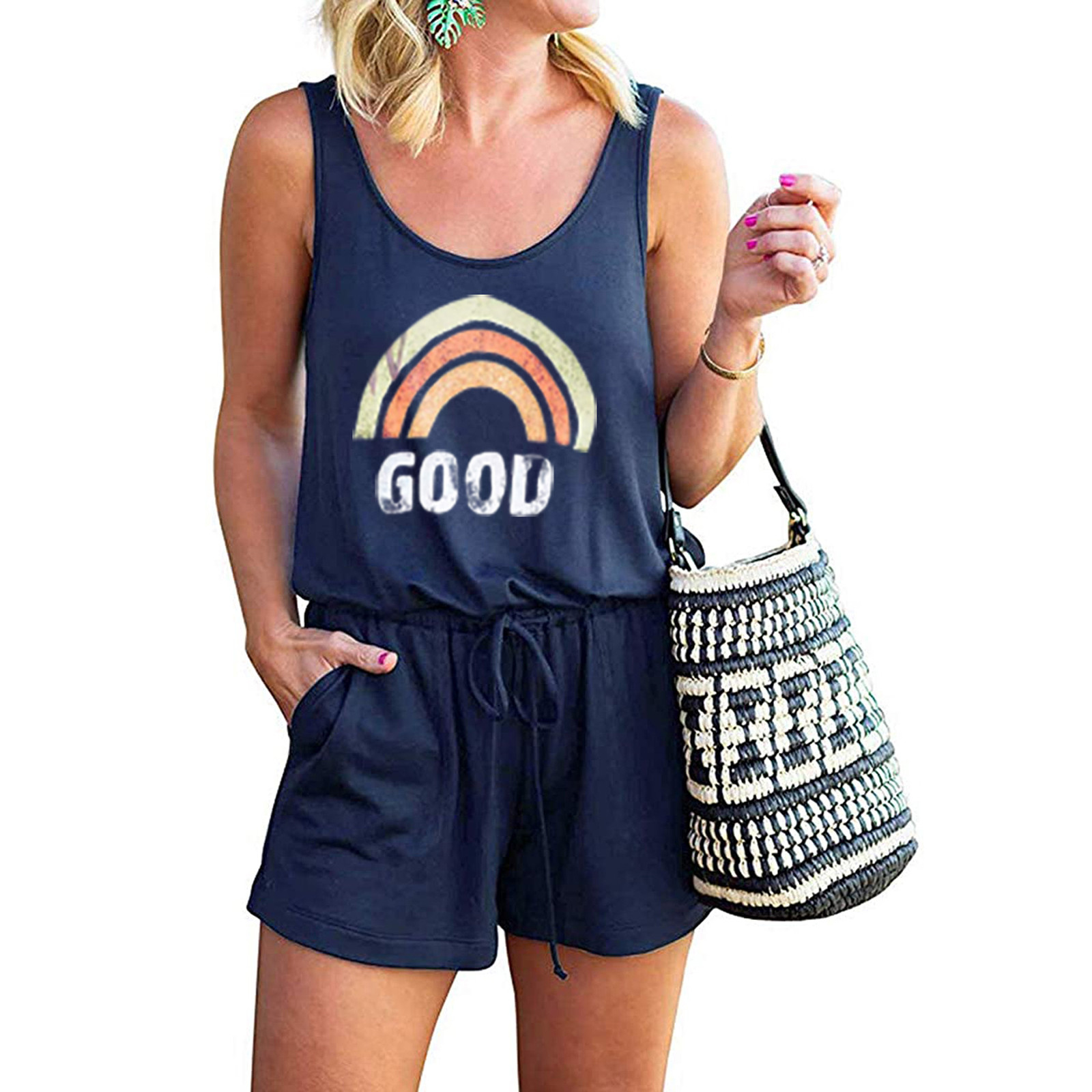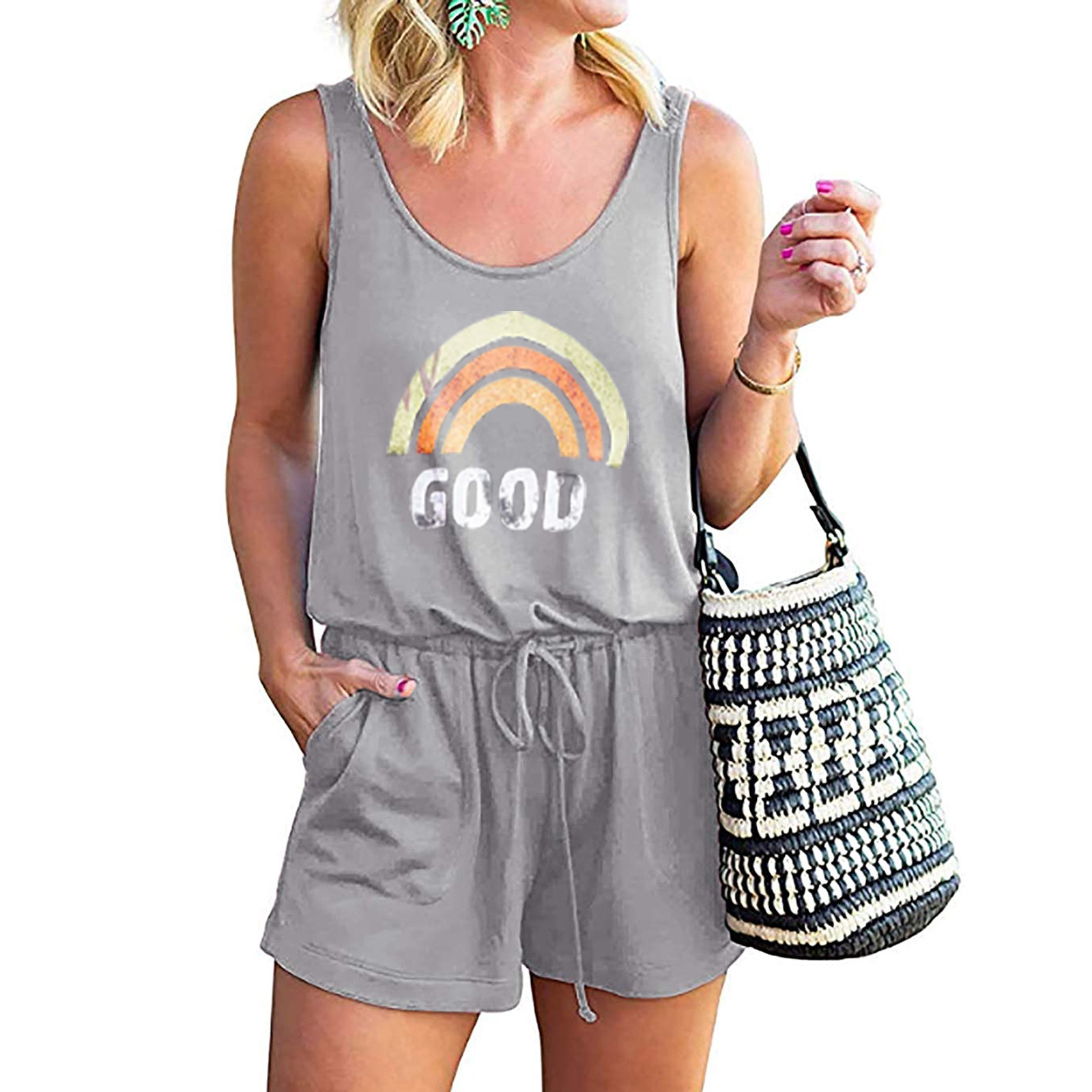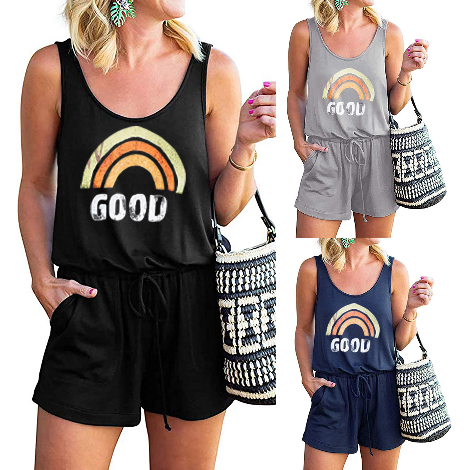 Женский Повседневный Модный комбинезон с круглым вырезом и принтом без рукавов