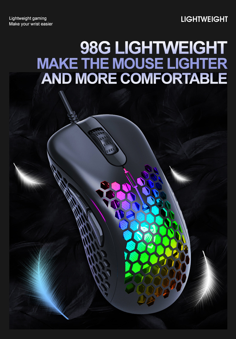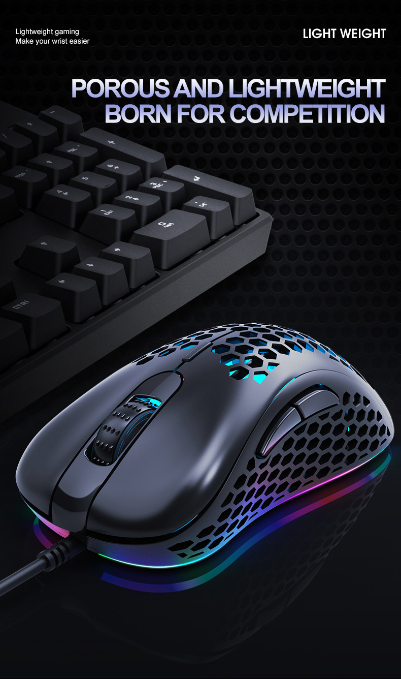 EAOR полая мышь USB Проводная легкая игровая мышь RGB Настольная компьютерная Макросъемка Opto-Электронная мышь