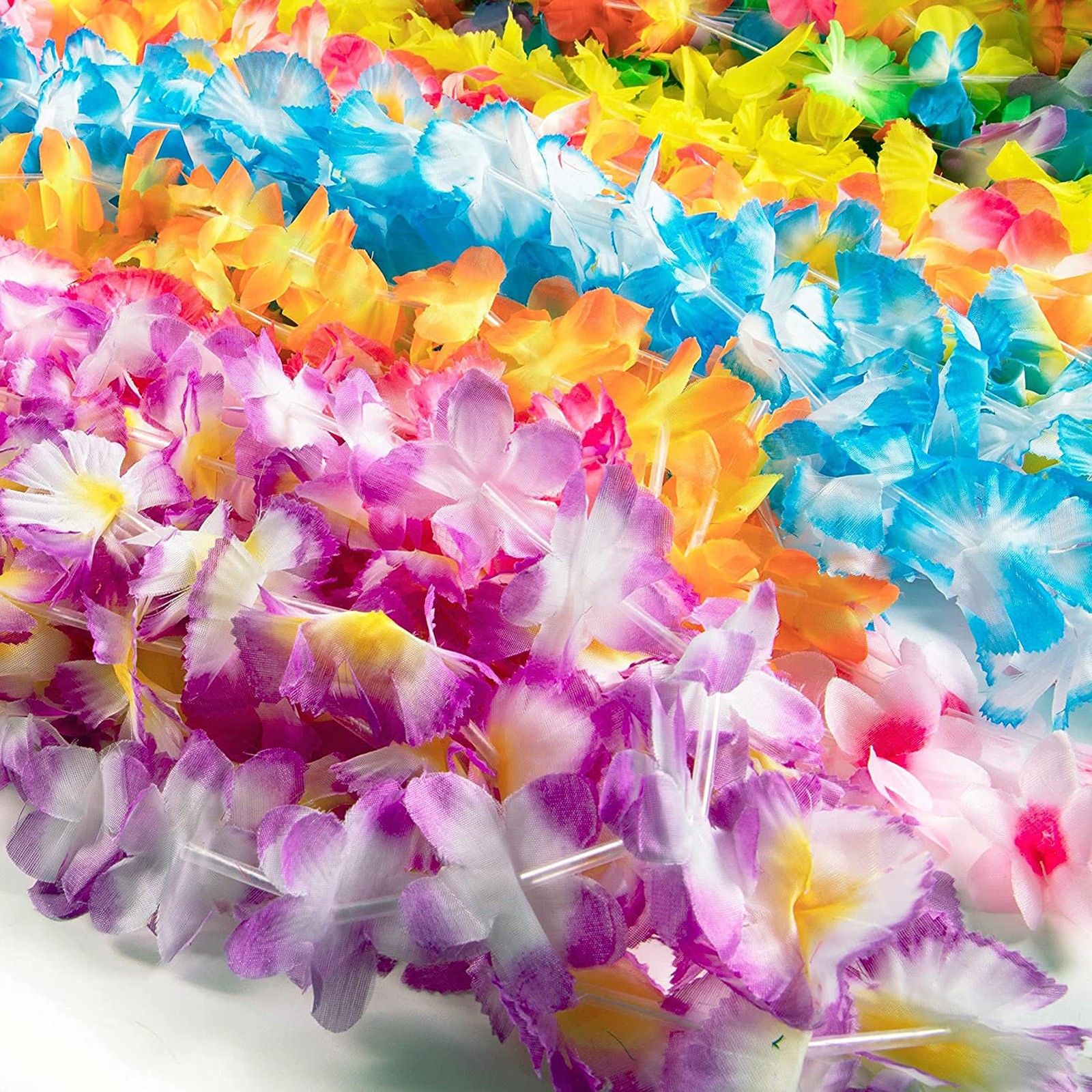 Красивые шелковые Луау тематические цветы Leis-Разные цвета партии Leis; Отлично подходит для Луау вечеринок
