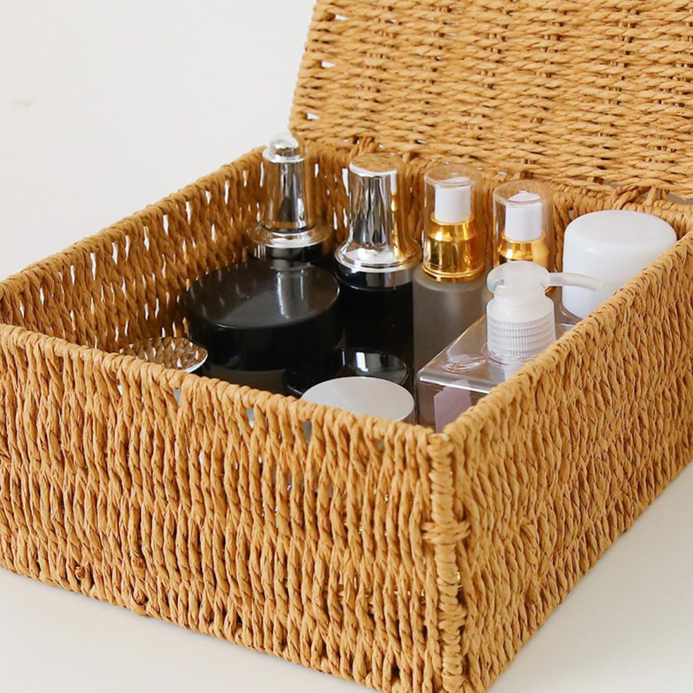 Эта корзина для хранения из ротанга с крышкой, которая защищает от пыли и эффективно защищает ваши предметы.